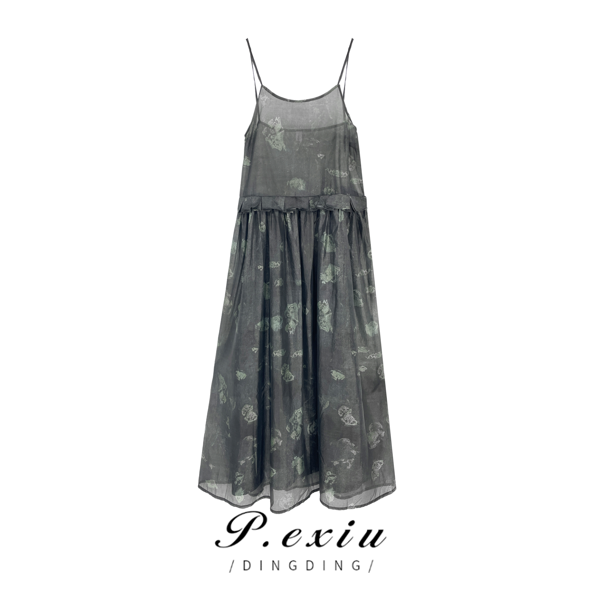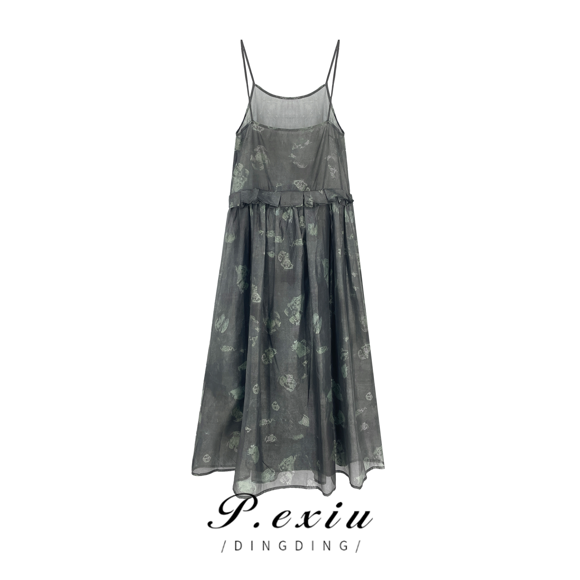 【初夏晚风】人丝气质显瘦百褶吊带连衣裙W-61427