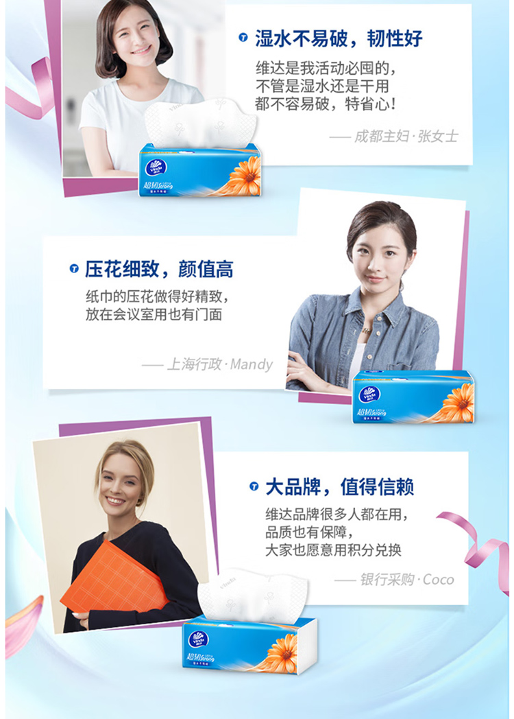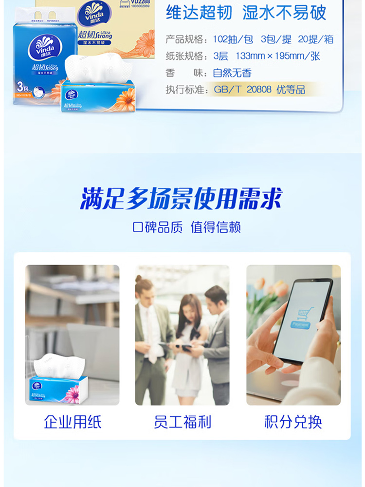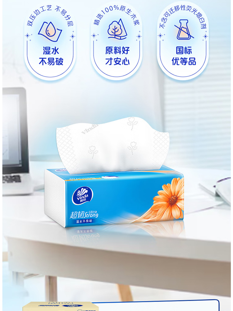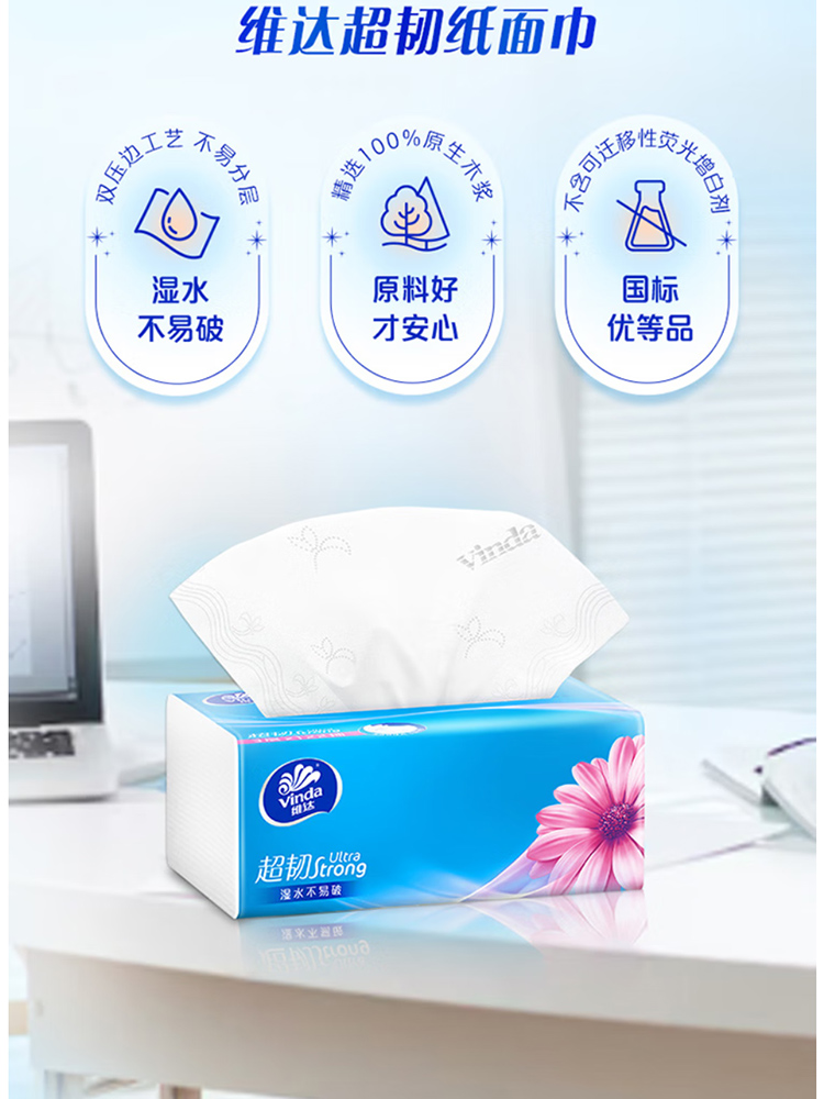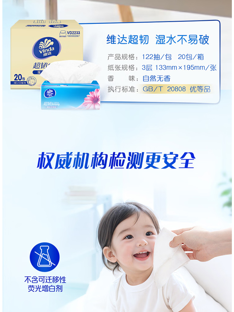VD2233维达122抽3层超韧抽取式纸面巾 20包/箱
