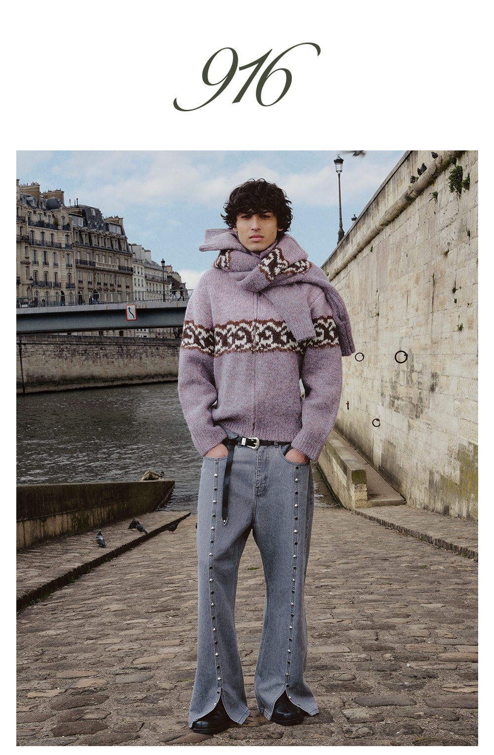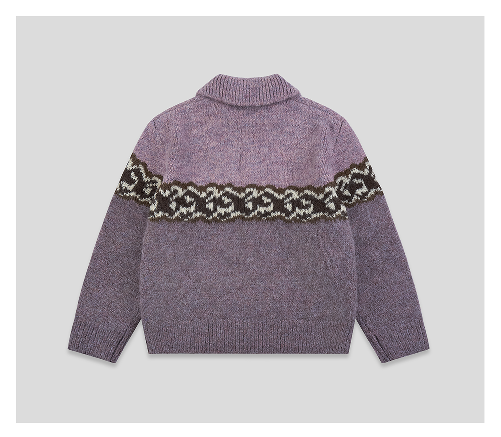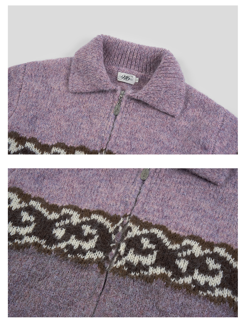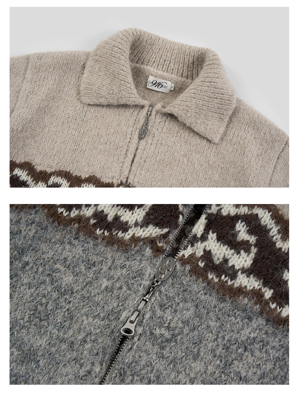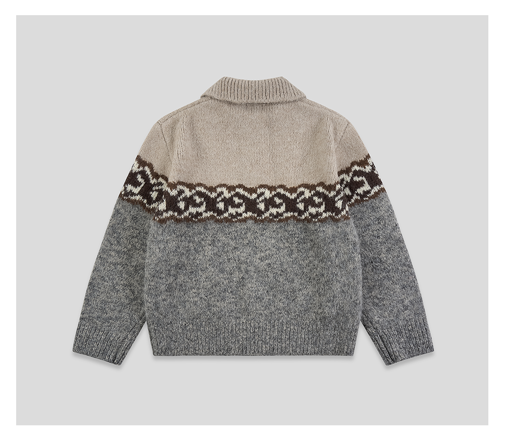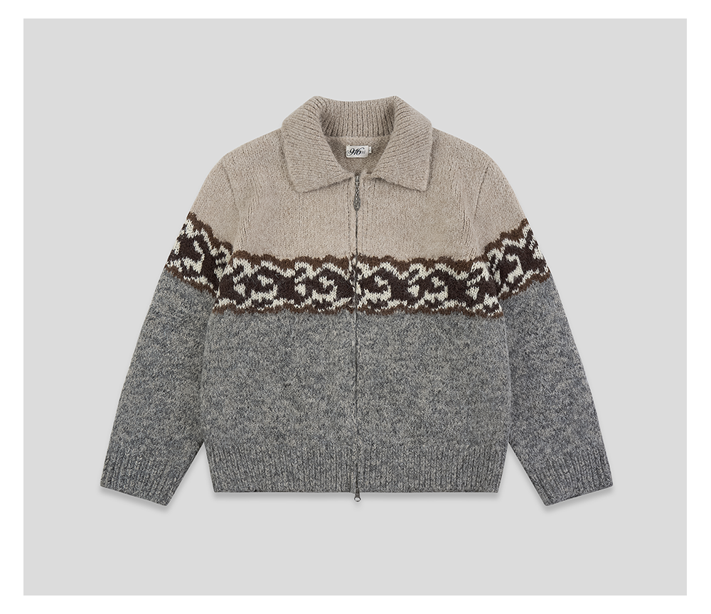 GOODBAI 916 logo提花撞色花纹翻领拉链毛织外套