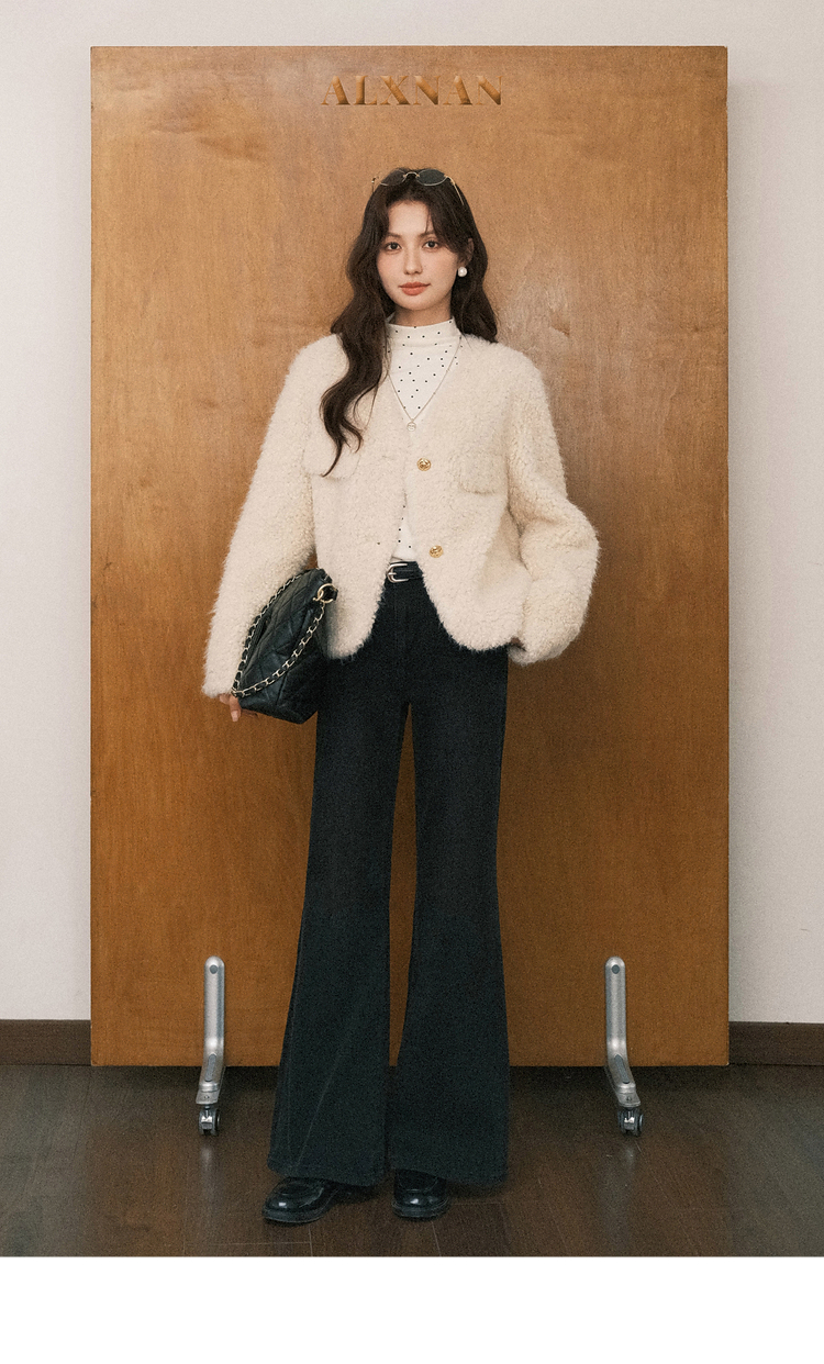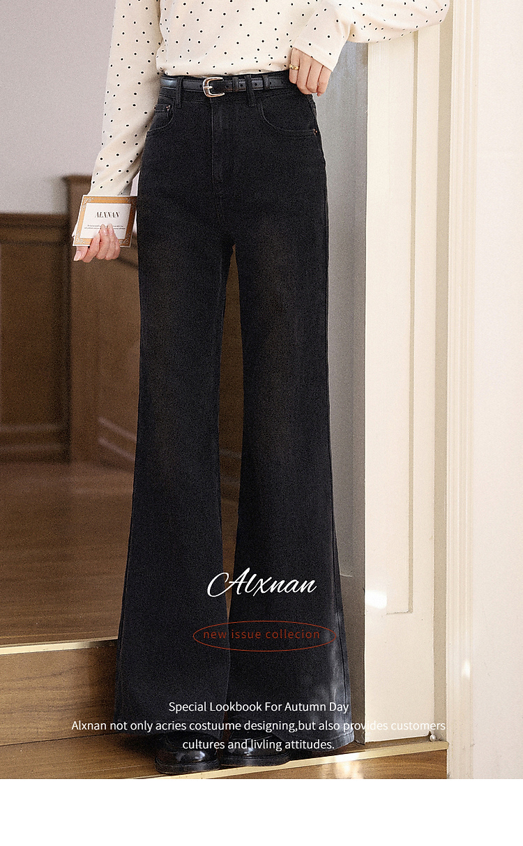 鹿向南「轻奢风尚」复古风喇叭牛仔裤秋冬新款高腰显瘦紧身女长裤