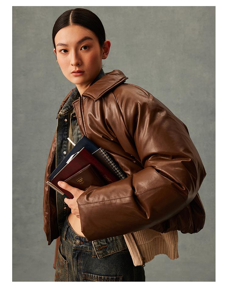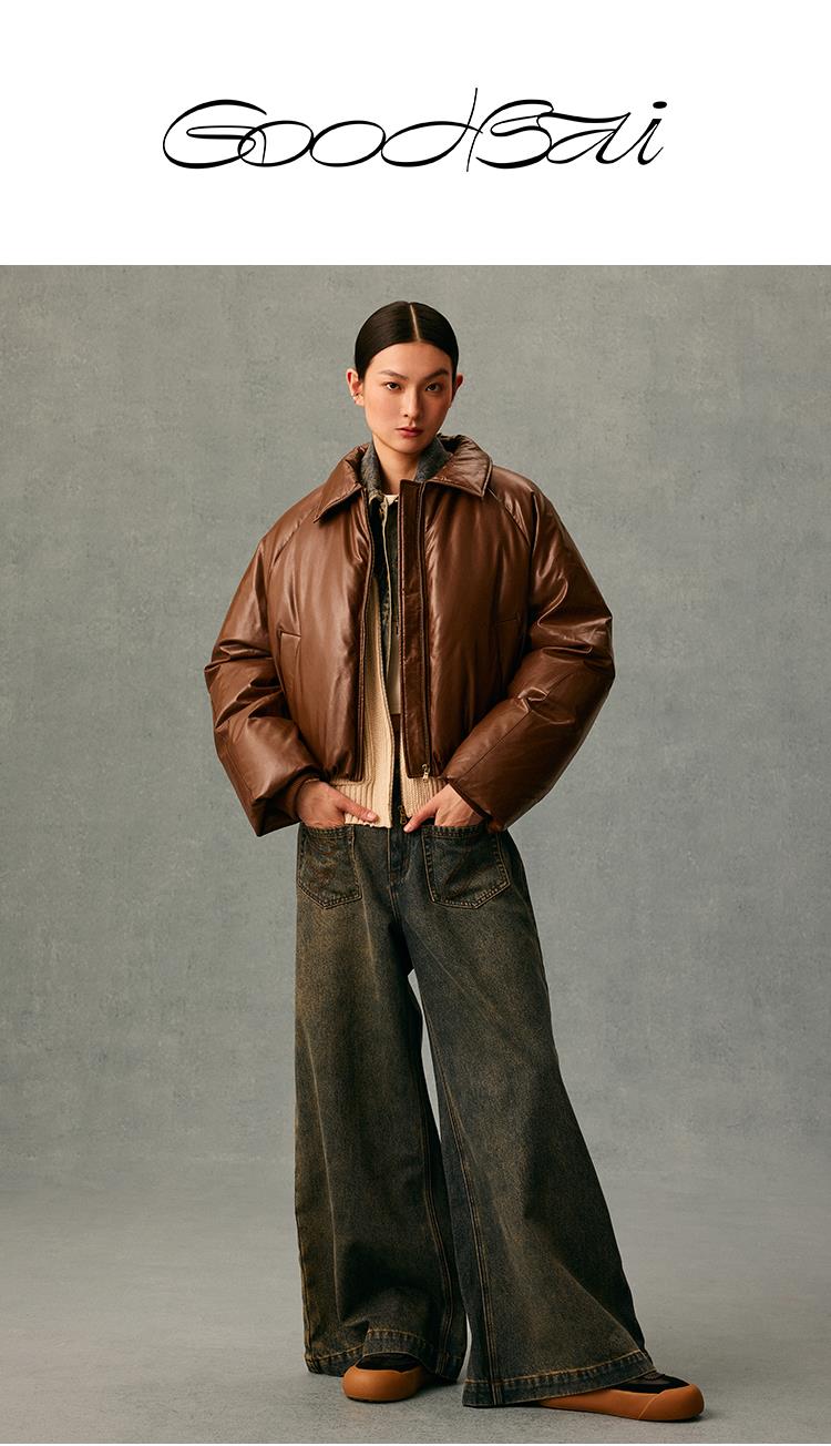 GOODBAI logo贴布绣阔型拉链羽绒服