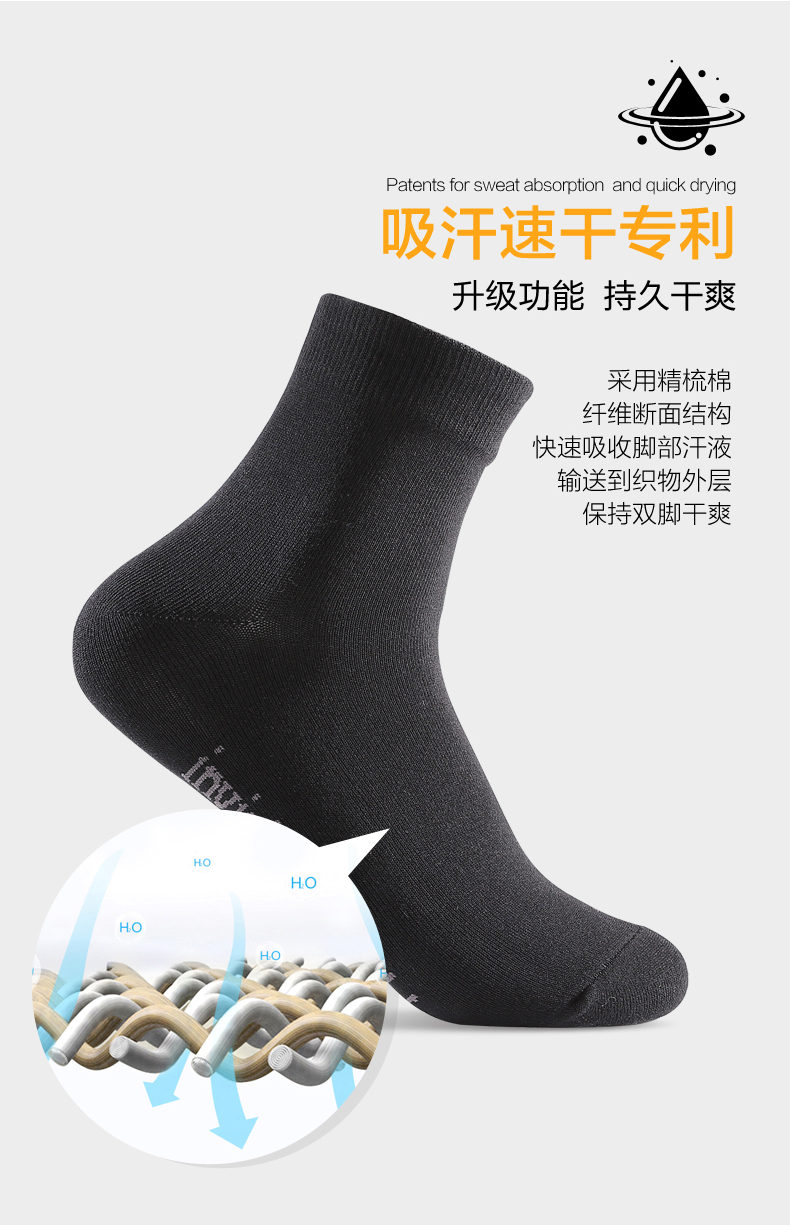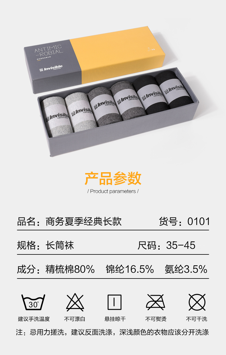 隐形盾 吸汗透气抗菌防臭四季商务正装中筒袜子6双装