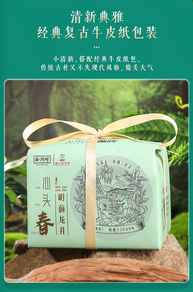 【西湖牌钱塘产区龙井】2026新茶 西湖牌《心头春》特级早春龙井200g纸包 龙井茶 钱塘产区