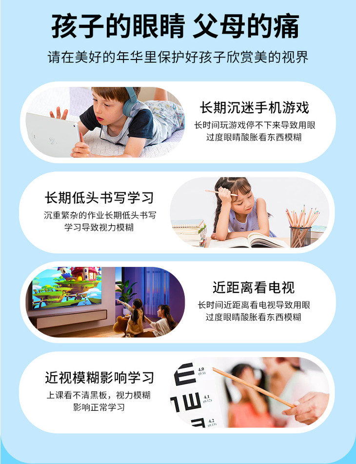 孩子12岁以前是预防近视的黄⾦期!家长忽略对近视的防控,等到孩子真的近视了,不仅给孩⼦带来伤害,我们也将付出更高昂的代价。