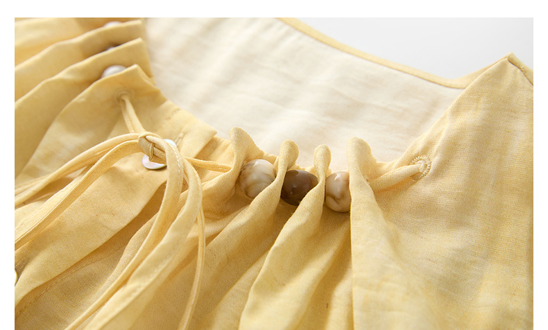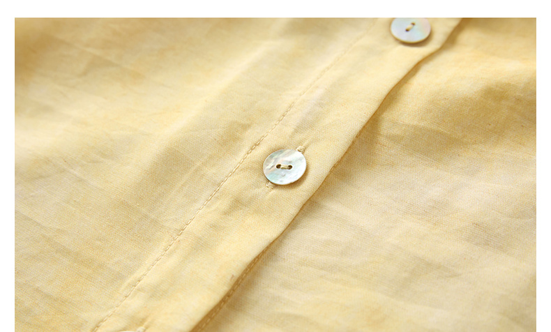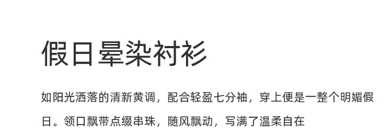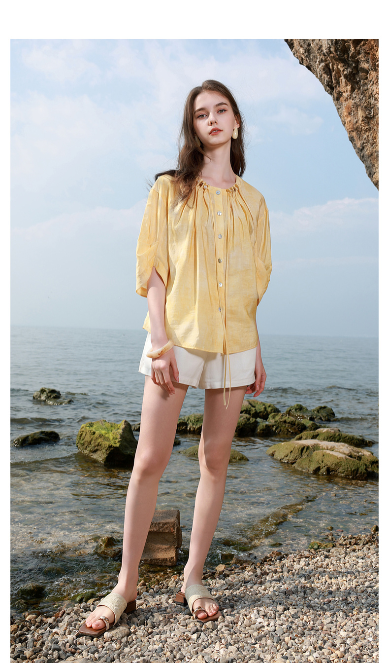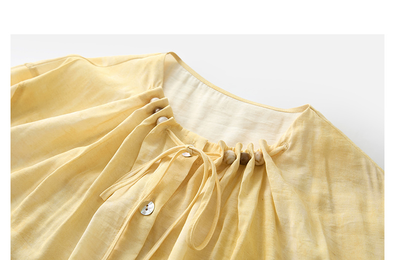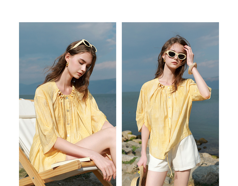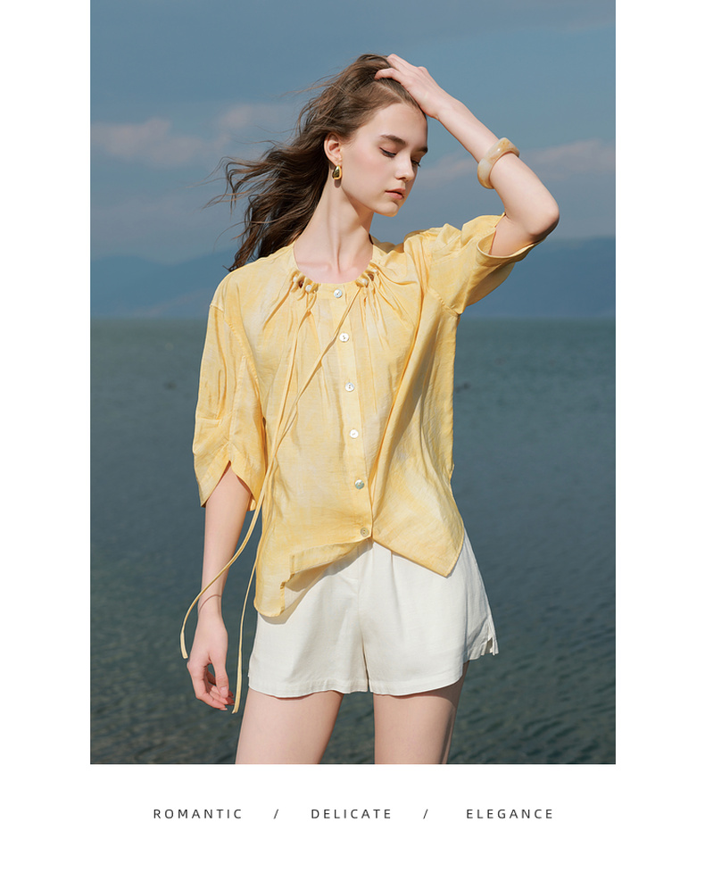 三彩2025秋季新款晕染衬衫圆领串珠飘带小衫七分袖宽松氛围感M