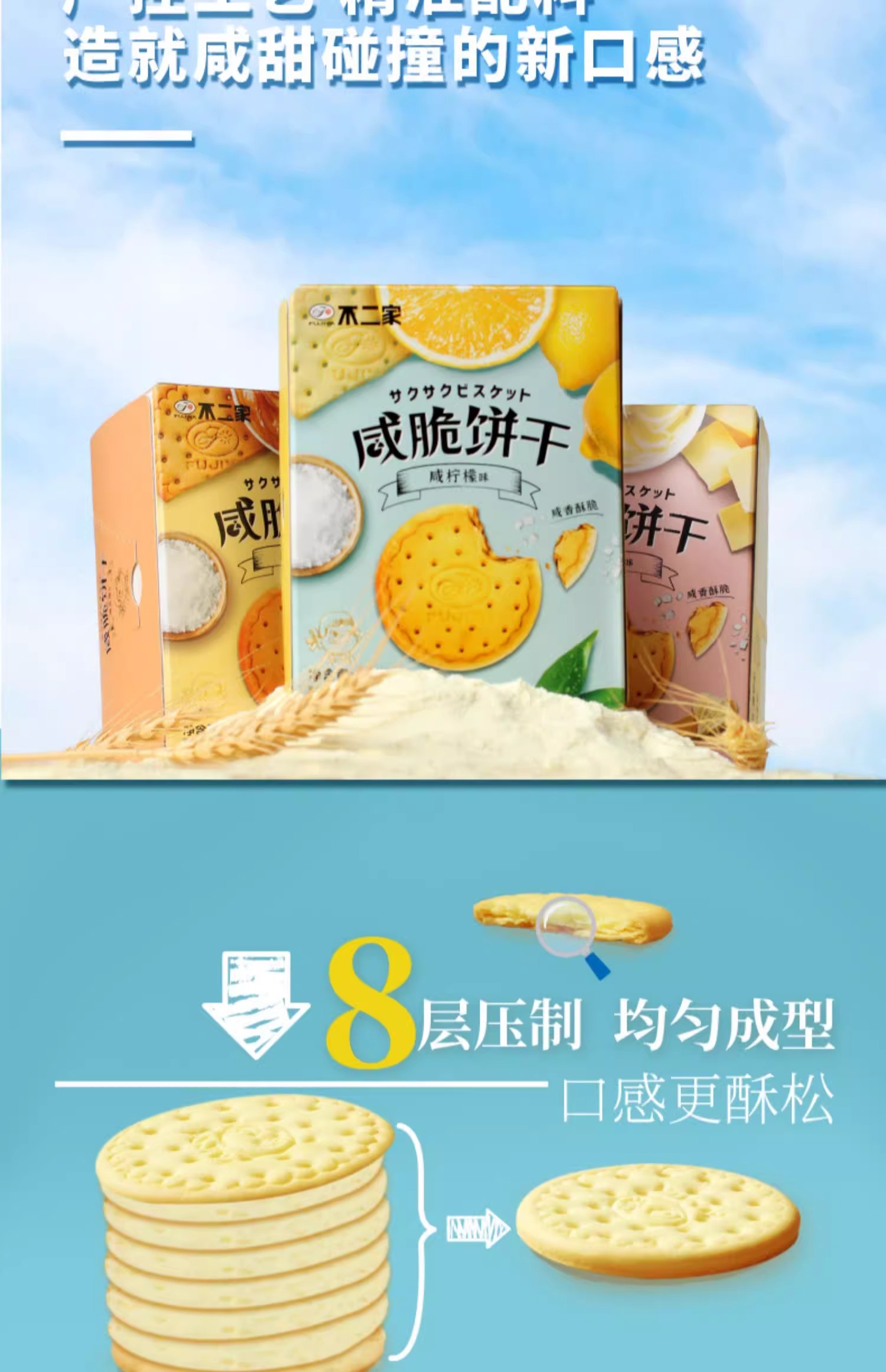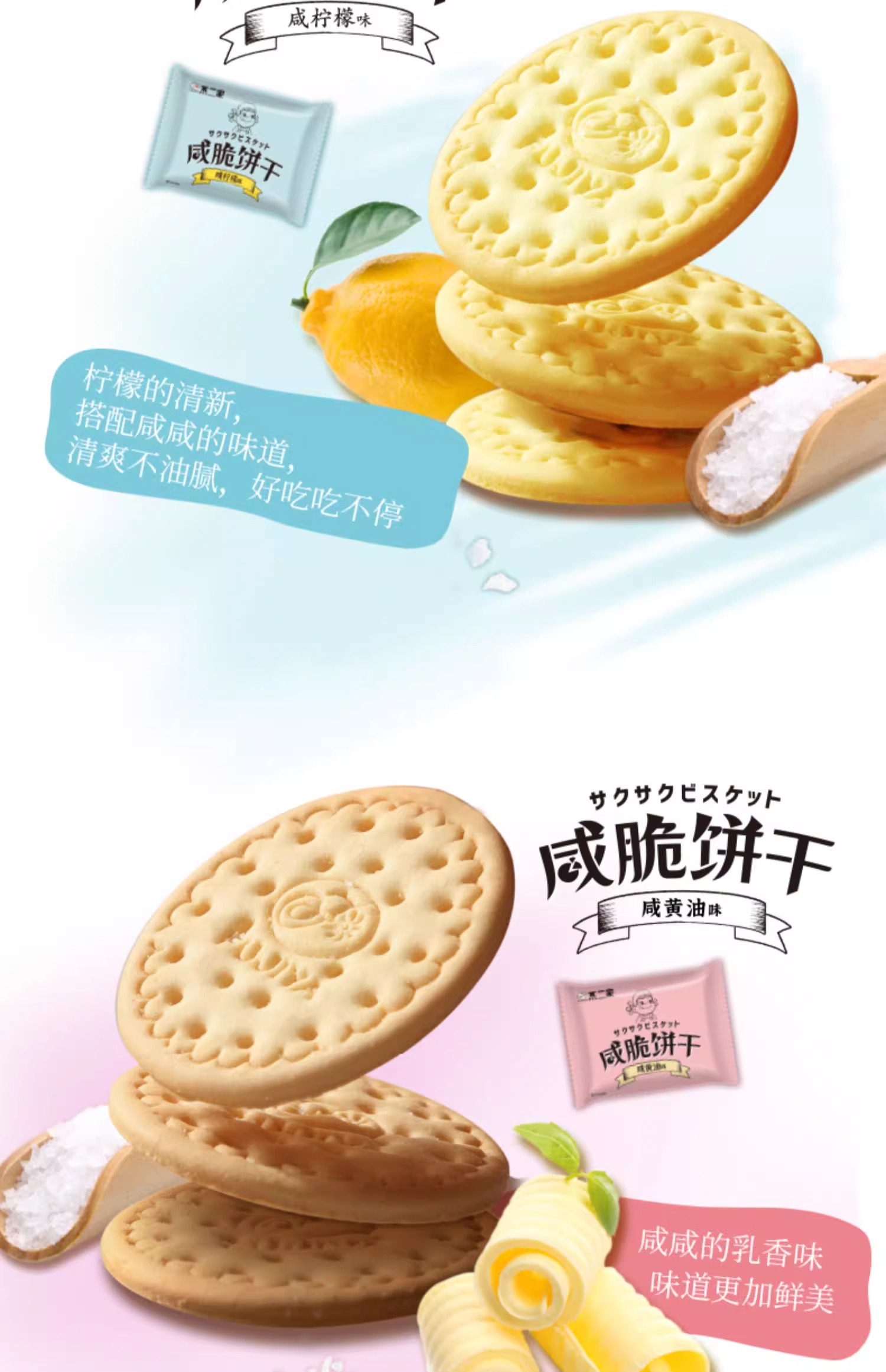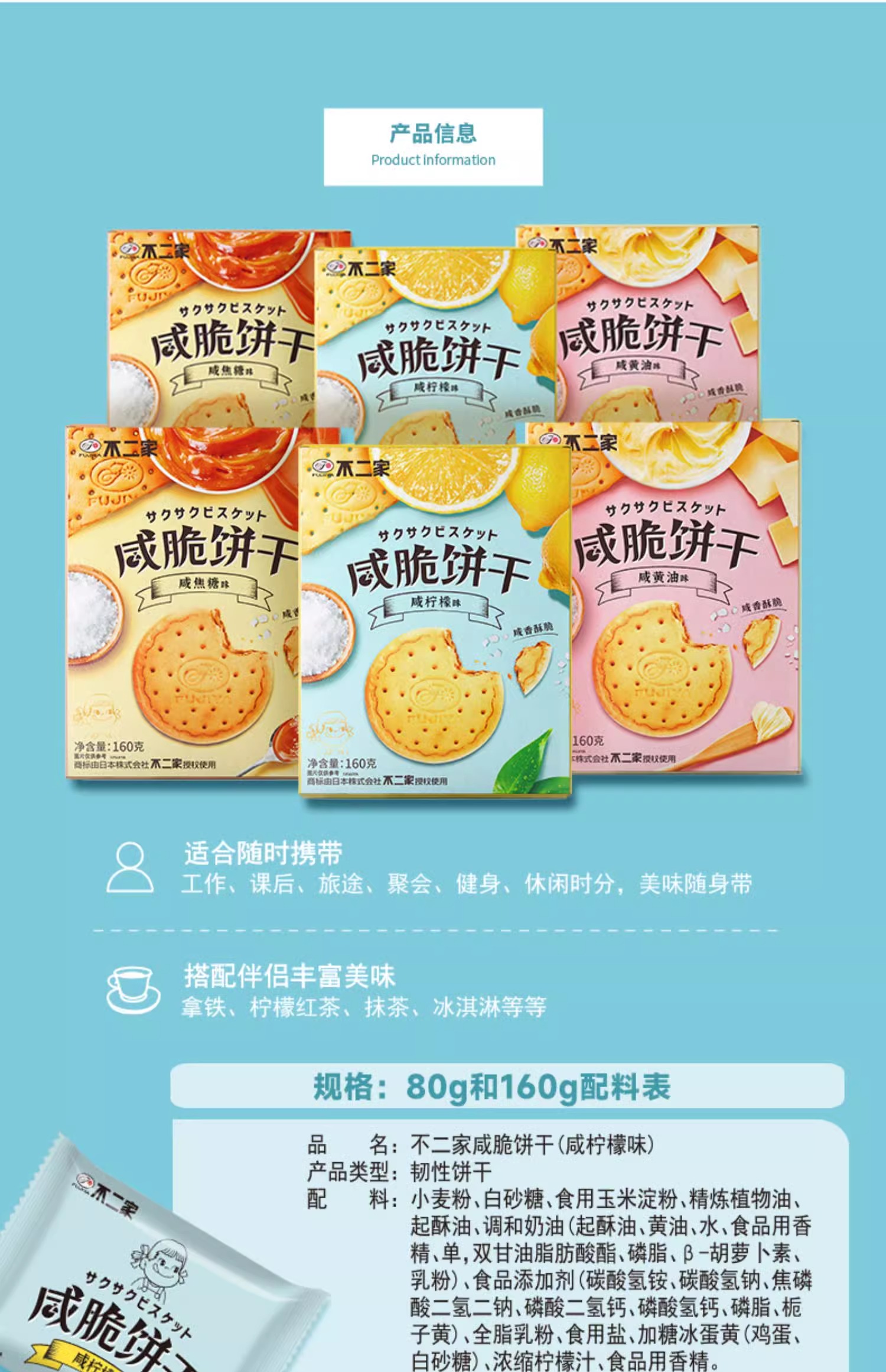 不二家咸脆饼干咸味柠檬咸味黄油饼 酥脆小圆饼早餐休闲零食