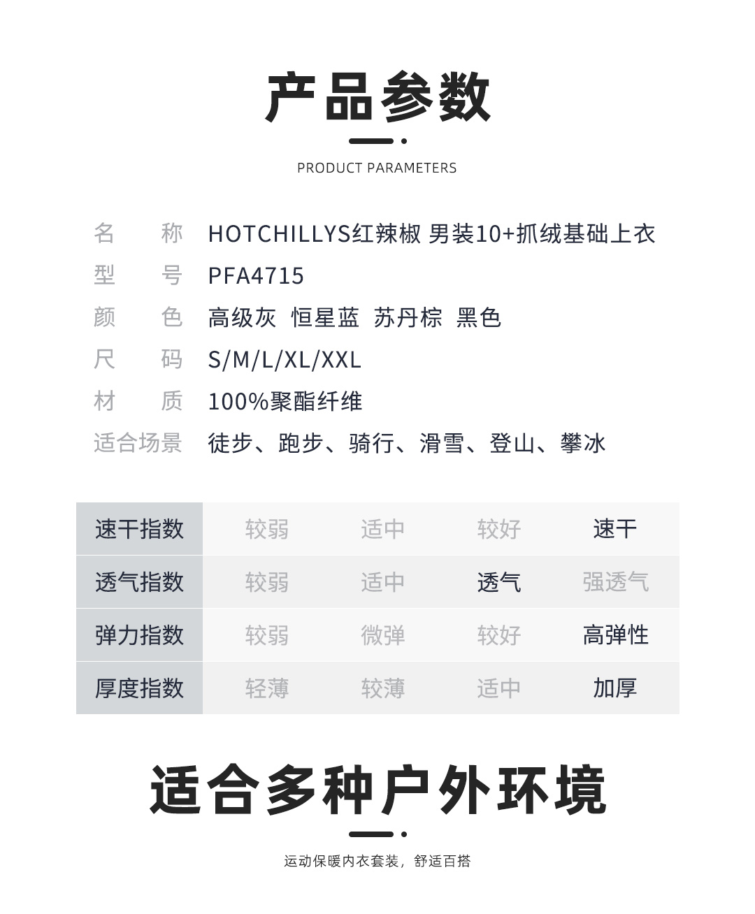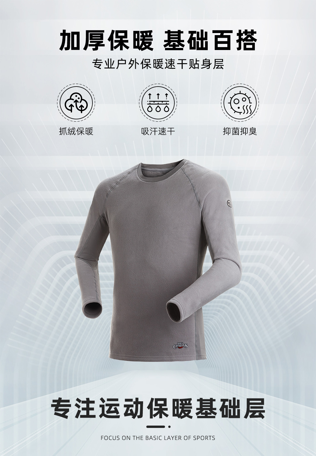 HOTCHILLYS热椒10+男户外抓绒圆领保暖厚功能徒步登山内衣4715