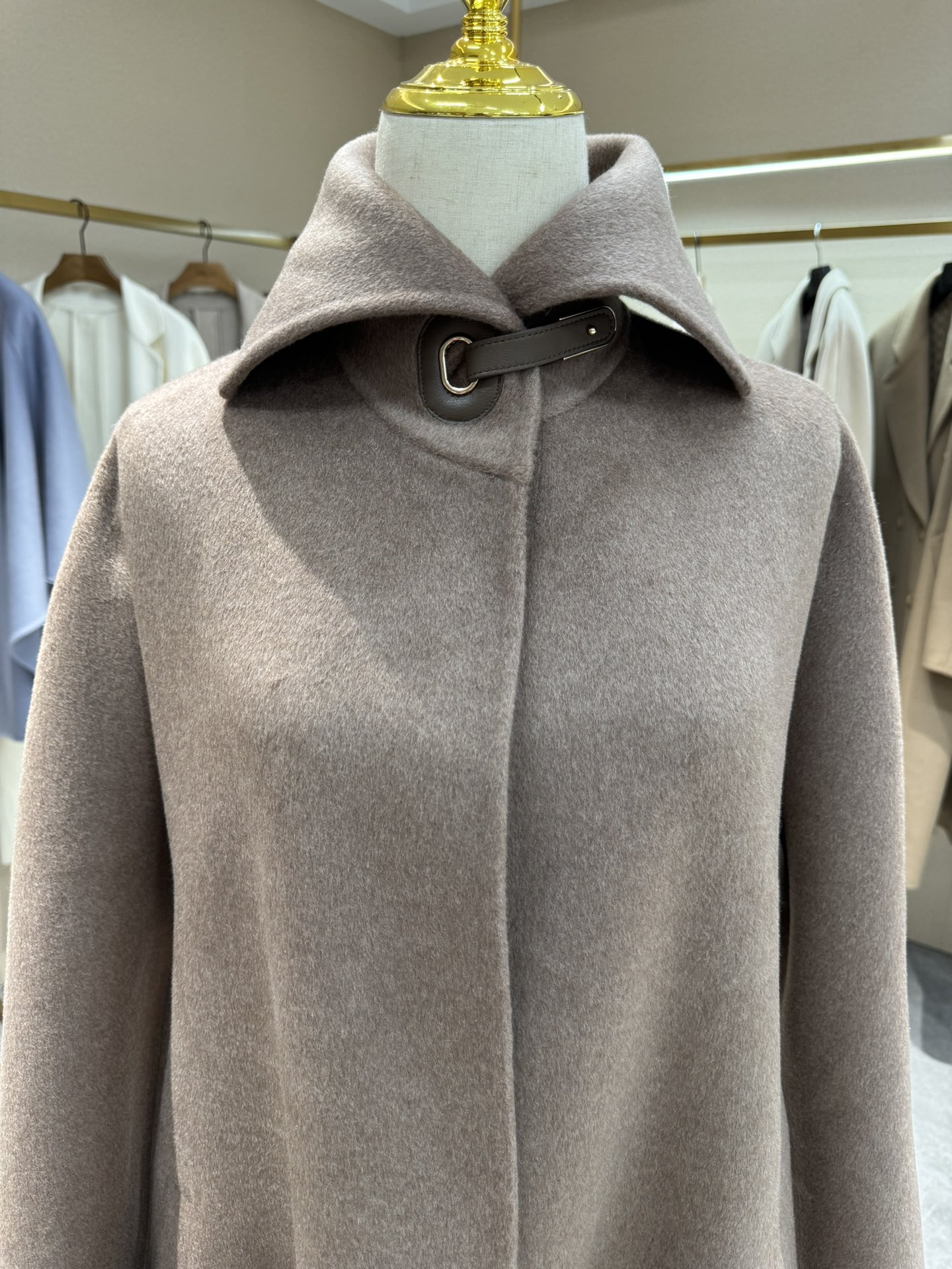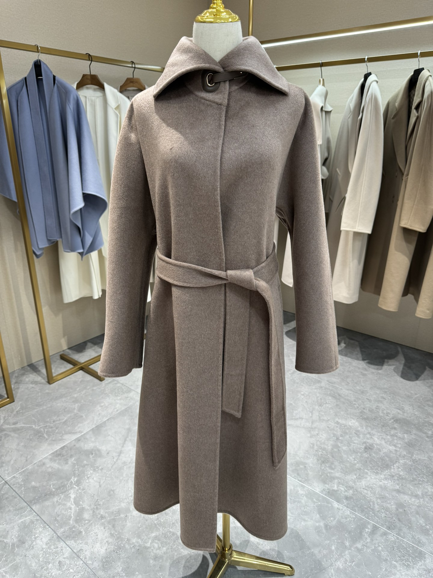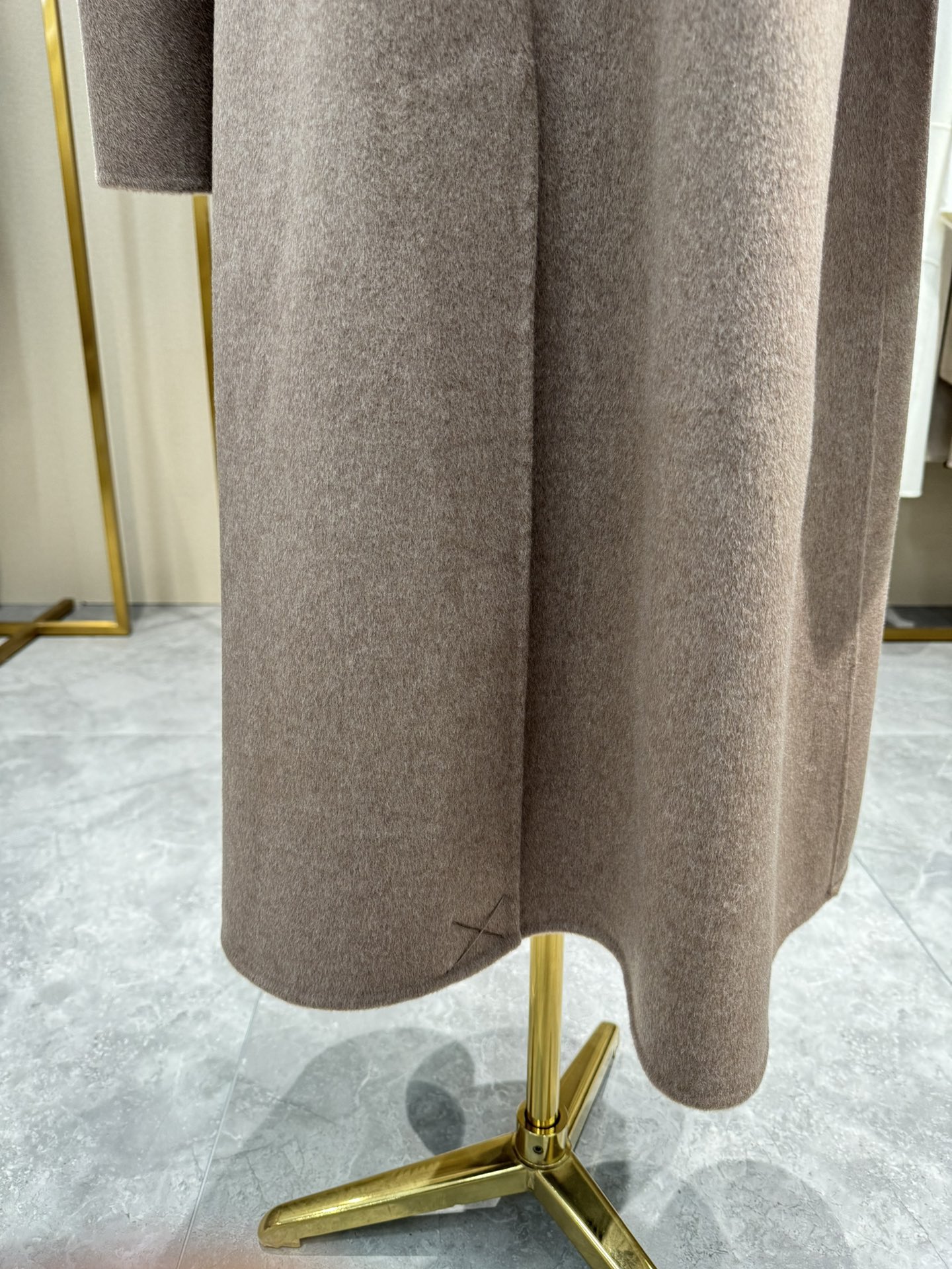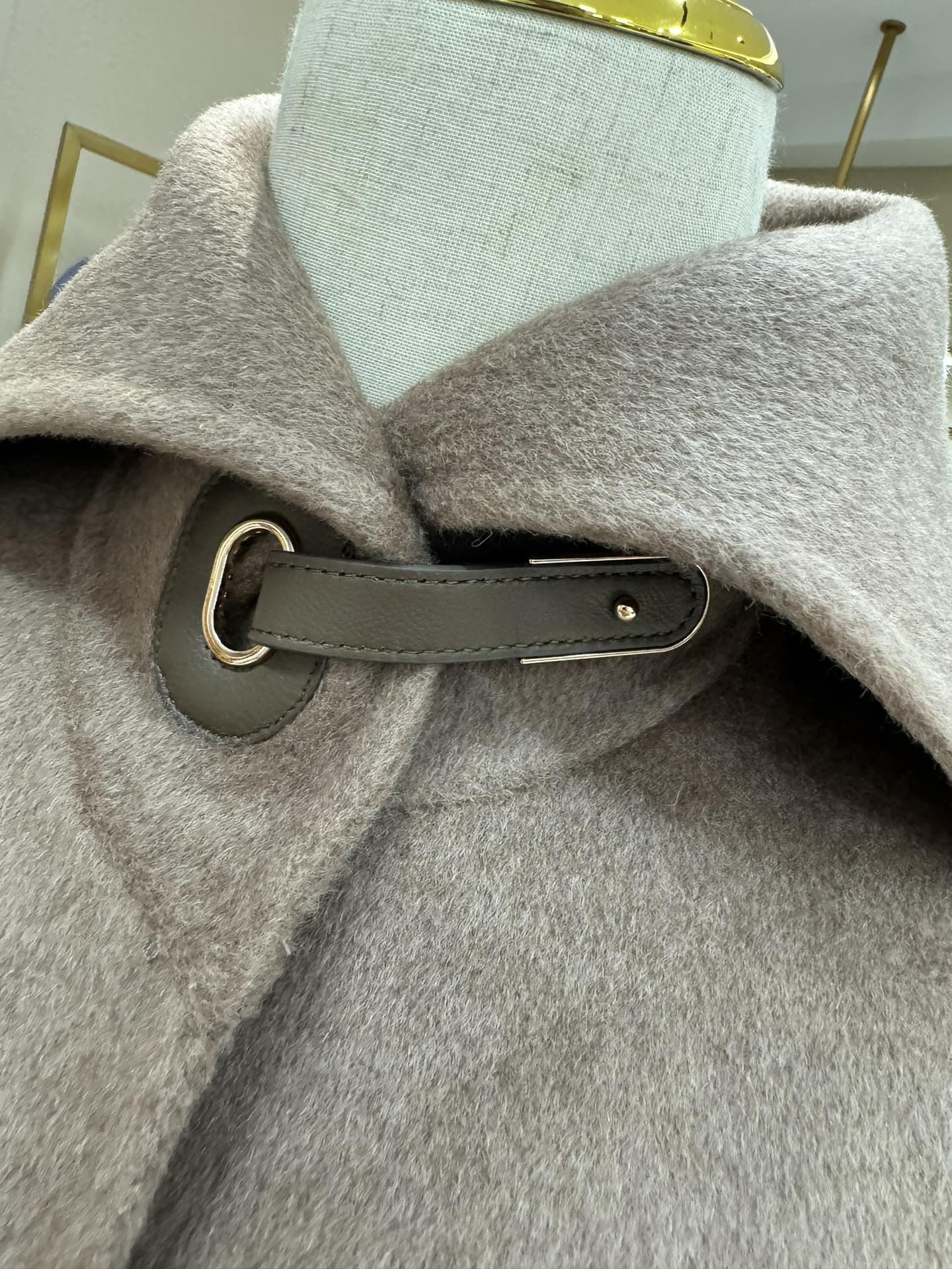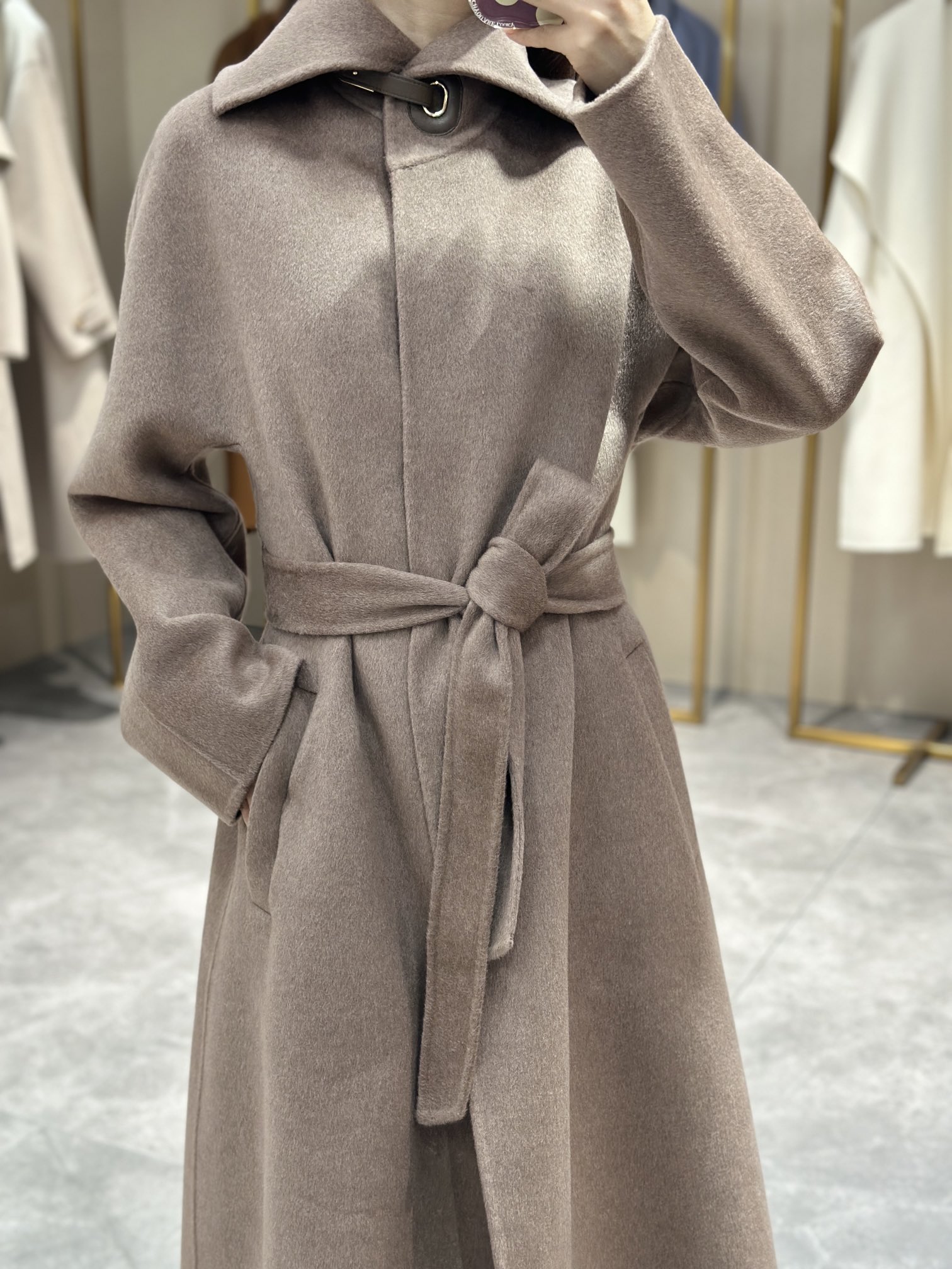 Loro Piana新款羊绒大衣 漏斗领口饰有皮革带,营造奢华柔美的穿着体验,柔美精裁廓形,腰带轻柔收紧腰部,彰显女性精致格调!