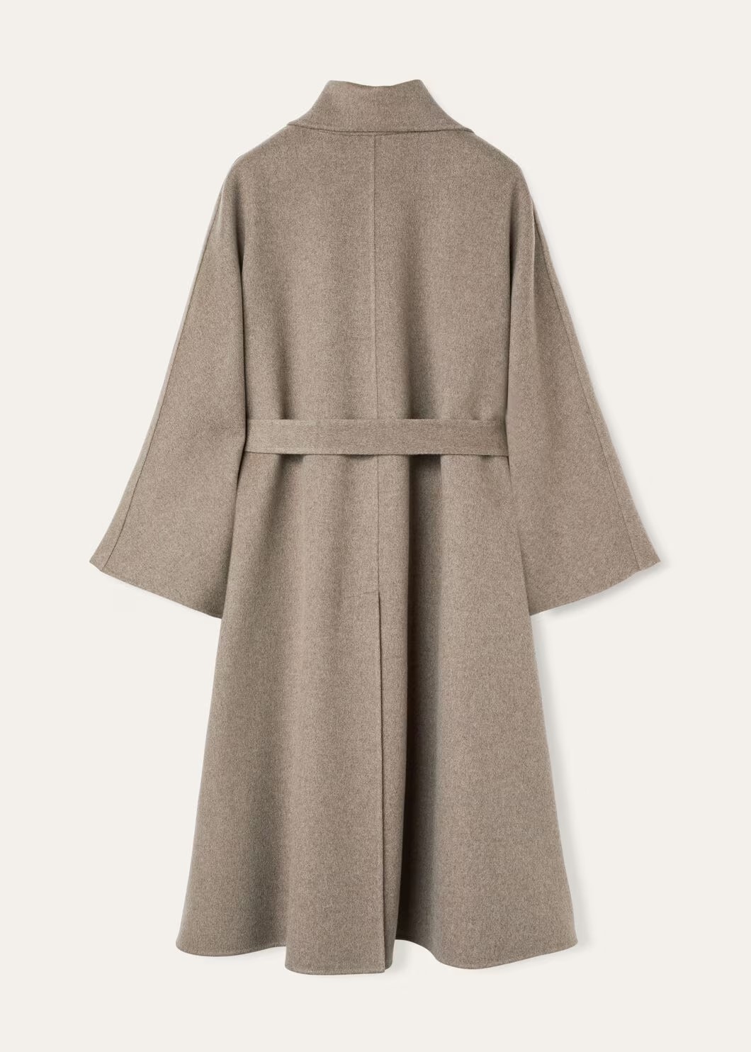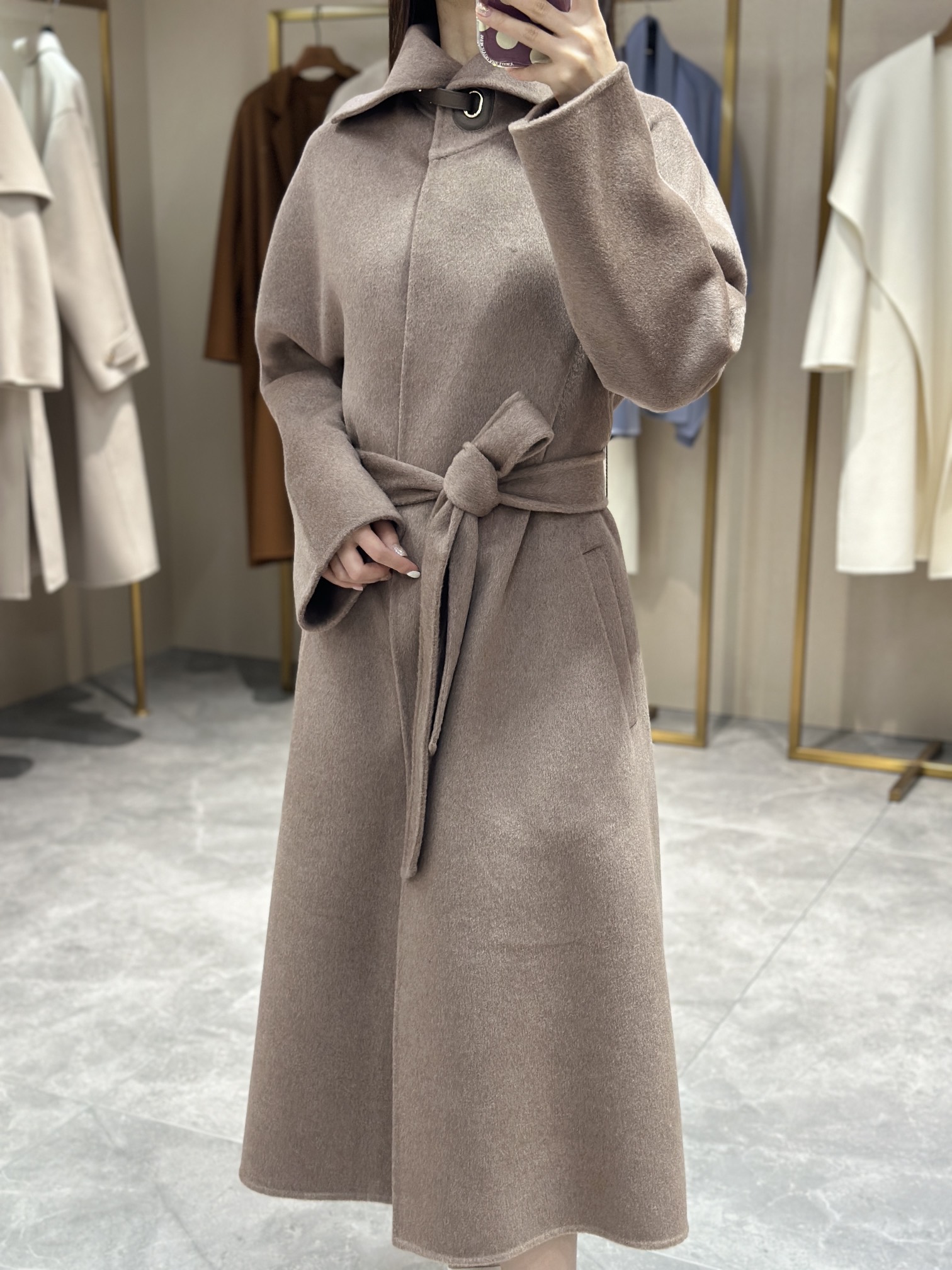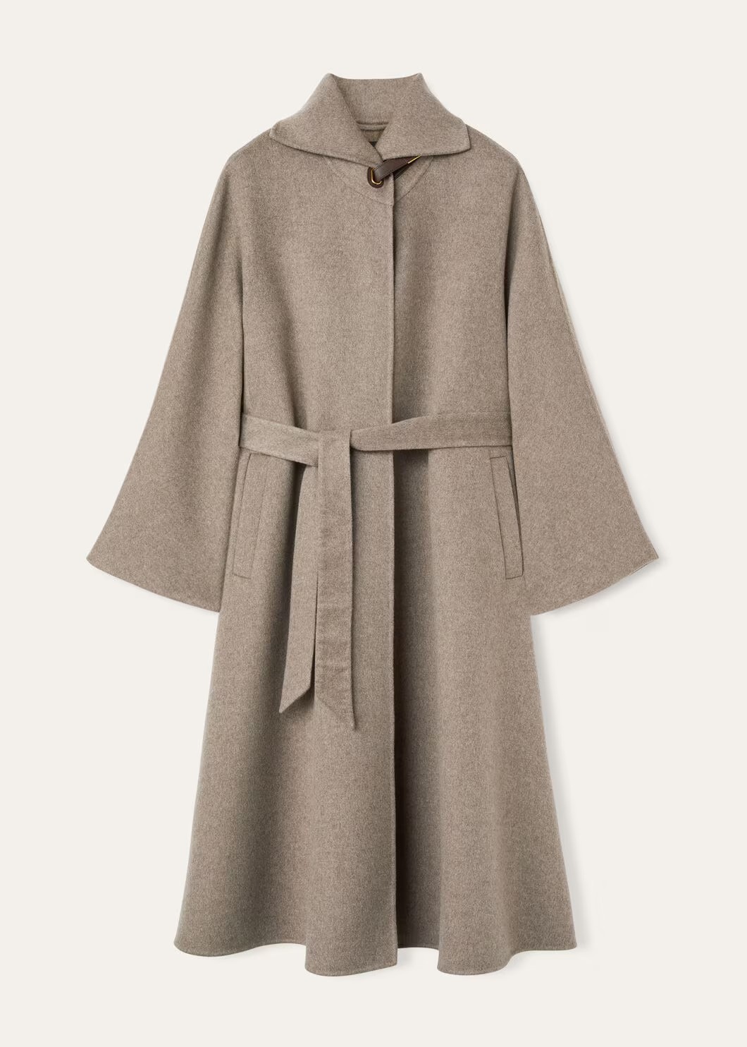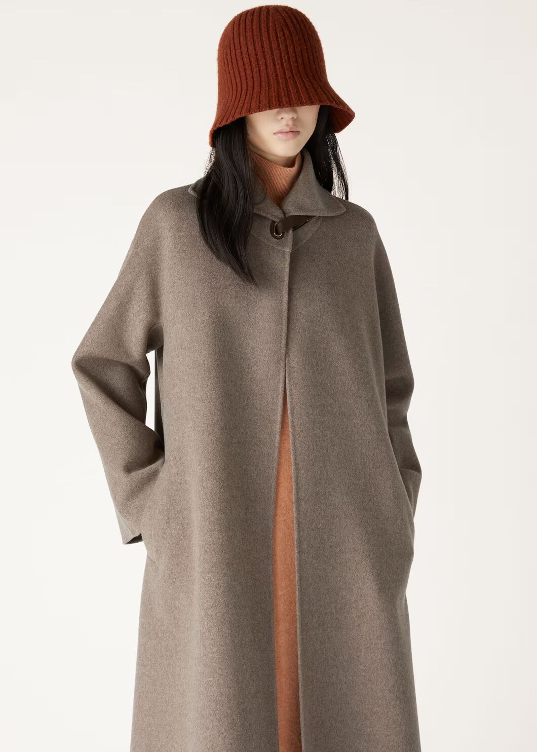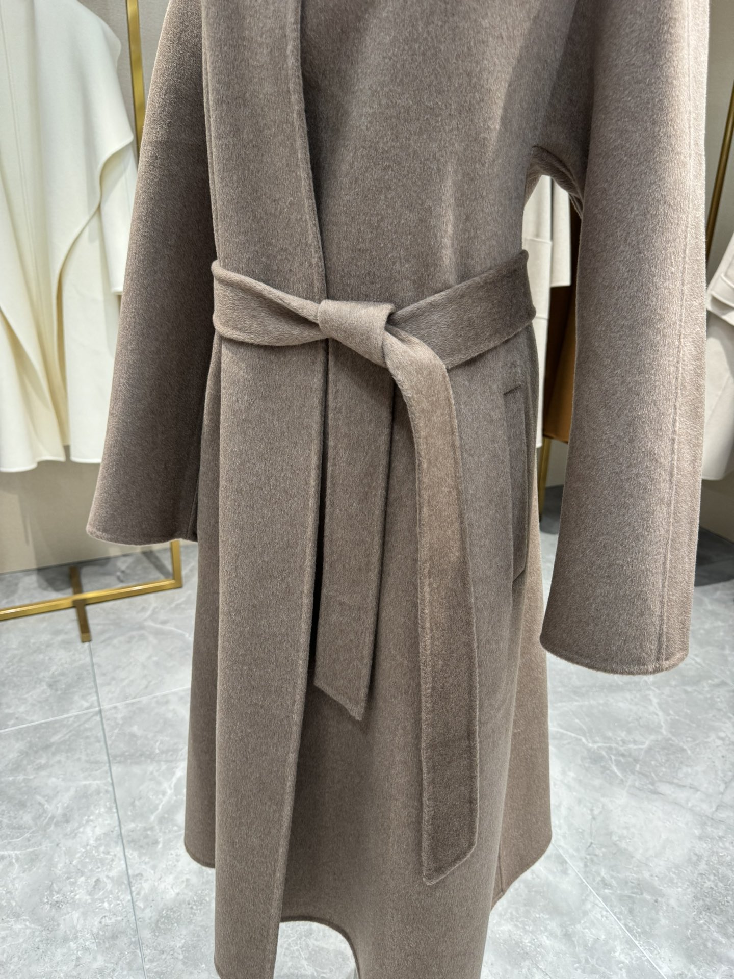 Loro Piana新款羊绒大衣 漏斗领口饰有皮革带,营造奢华柔美的穿着体验,柔美精裁廓形,腰带轻柔收紧腰部,彰显女性精致格调!
