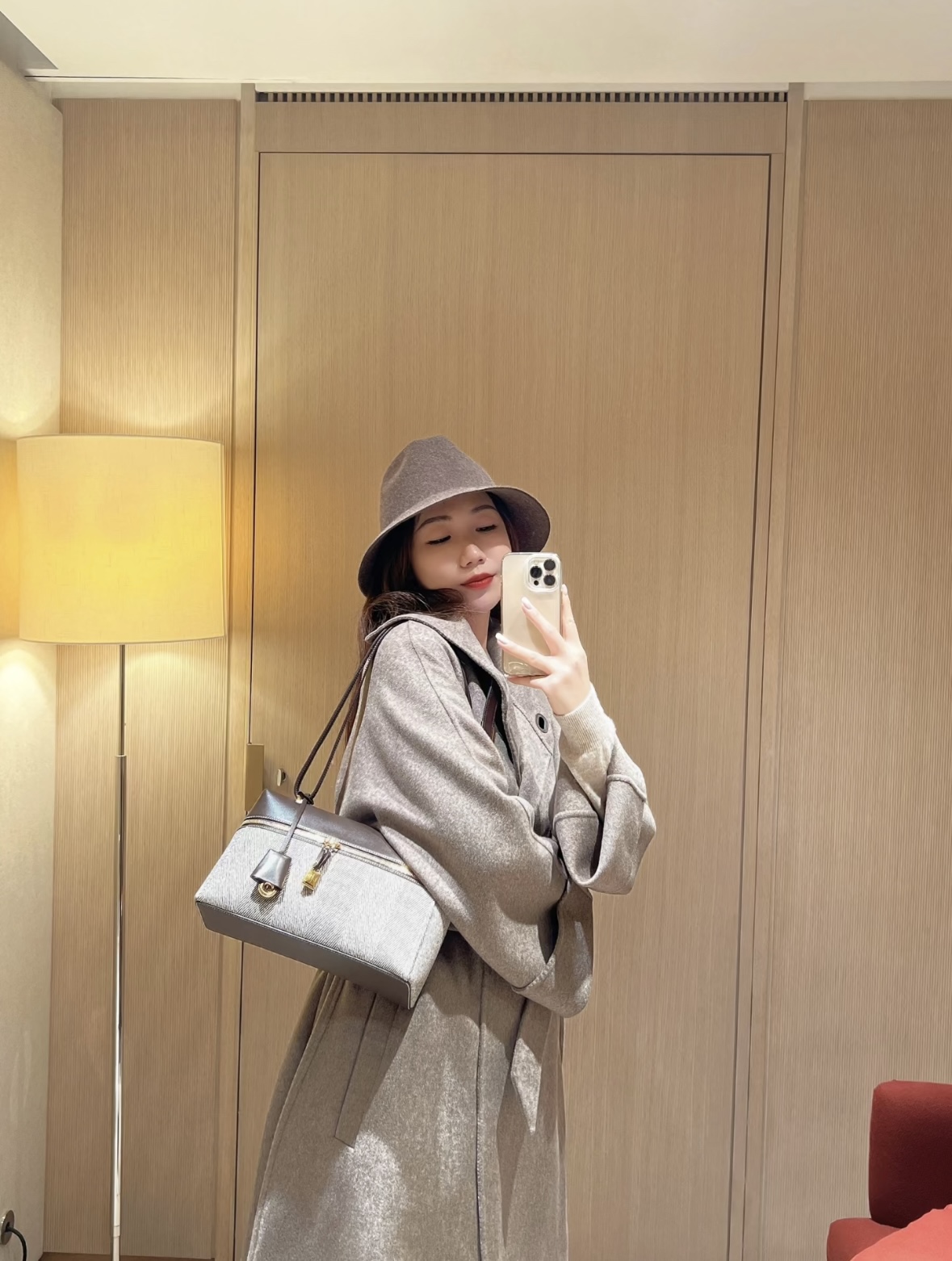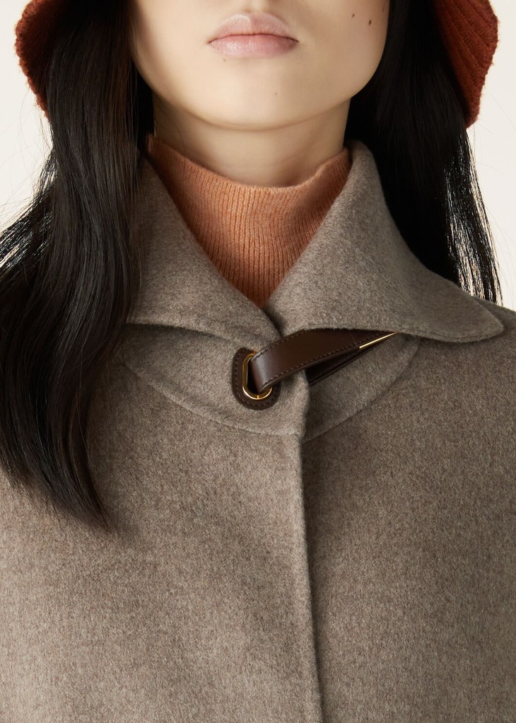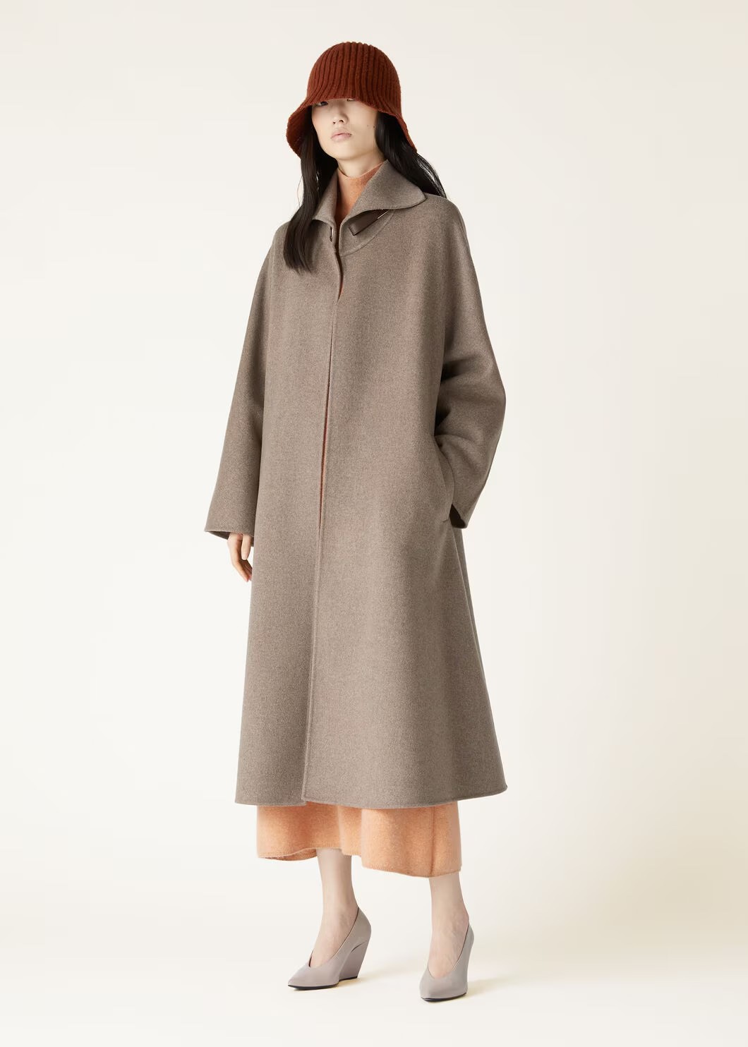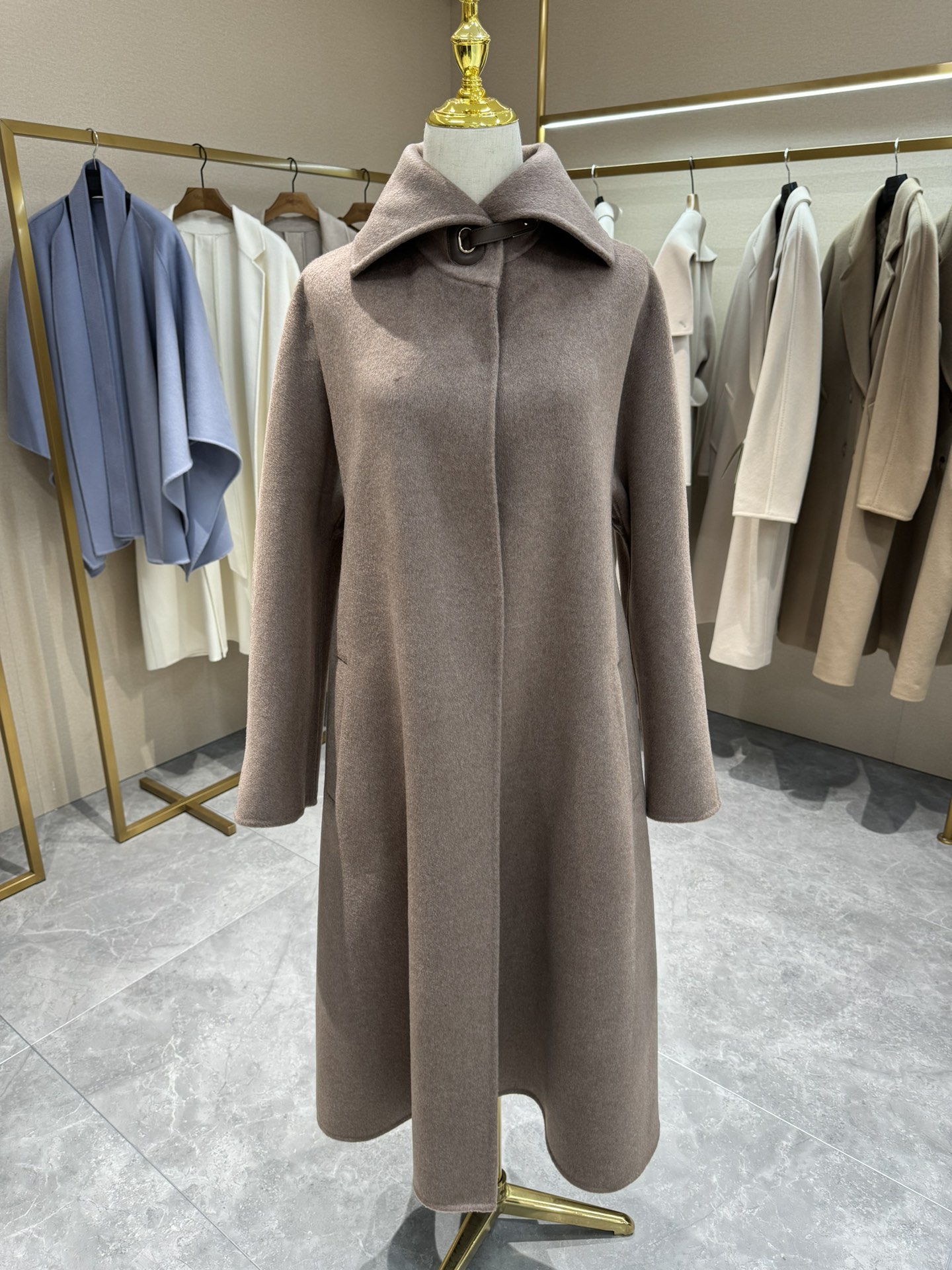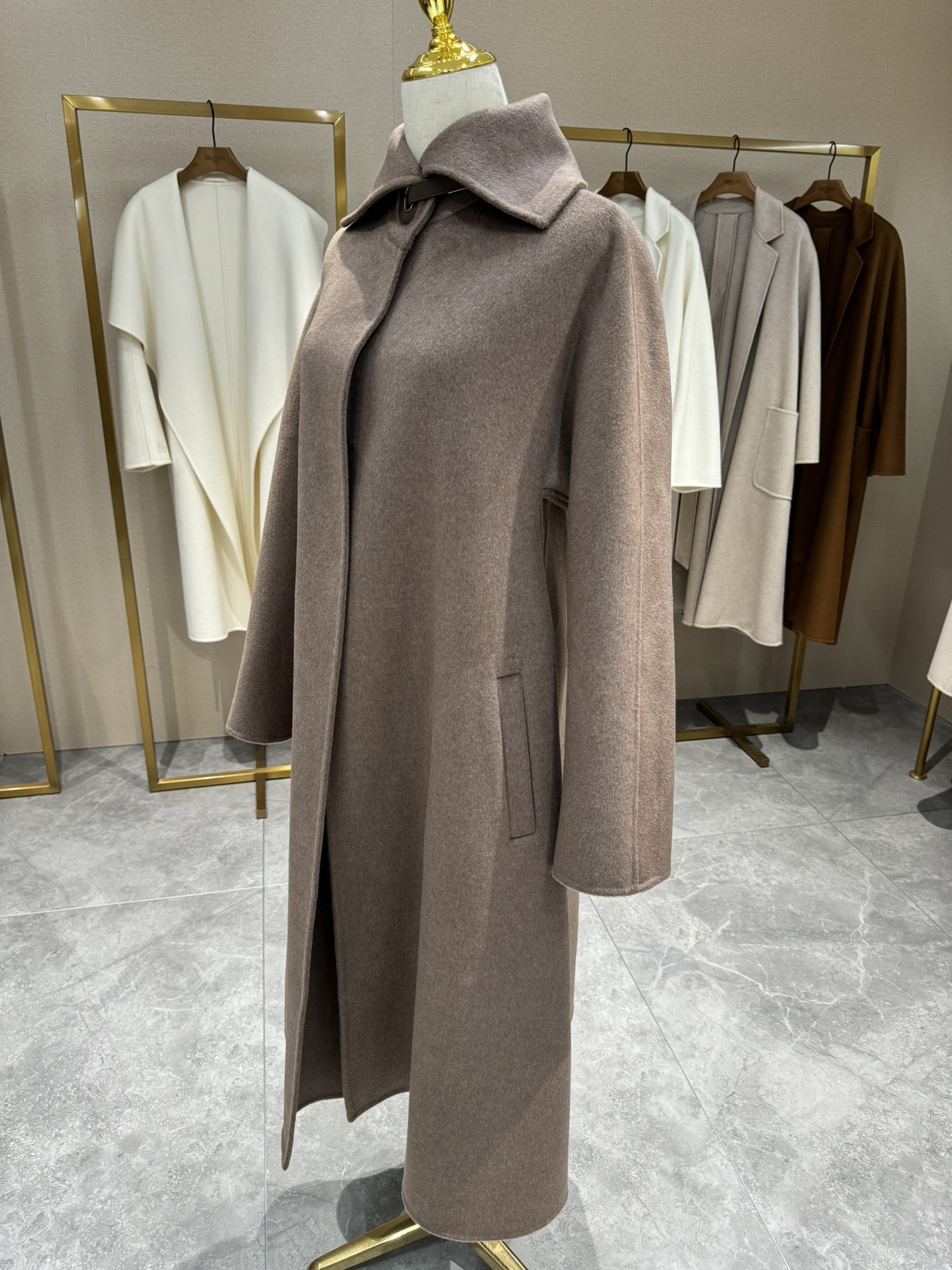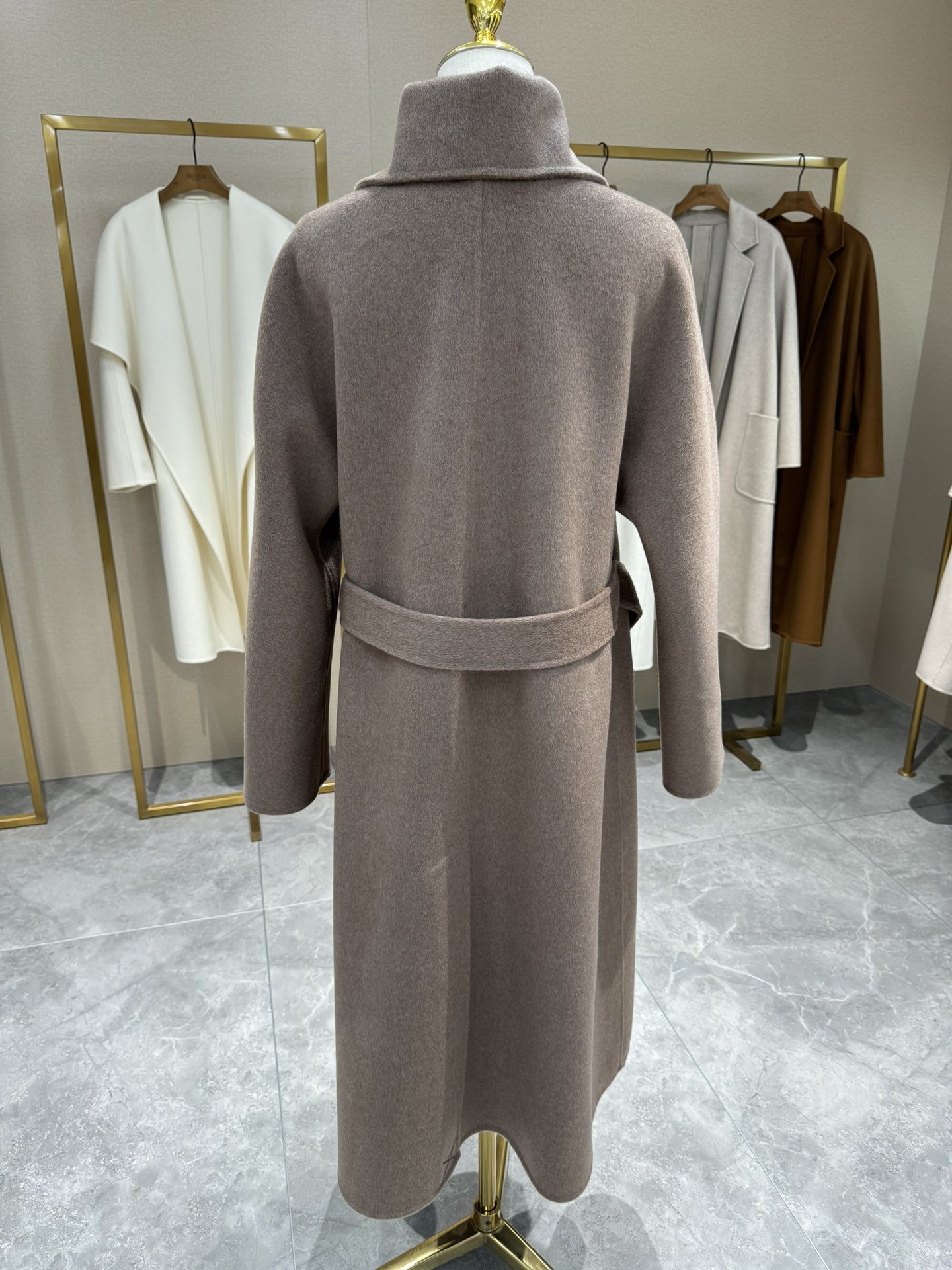 Loro Piana新款羊绒大衣 漏斗领口饰有皮革带,营造奢华柔美的穿着体验,柔美精裁廓形,腰带轻柔收紧腰部,彰显女性精致格调!