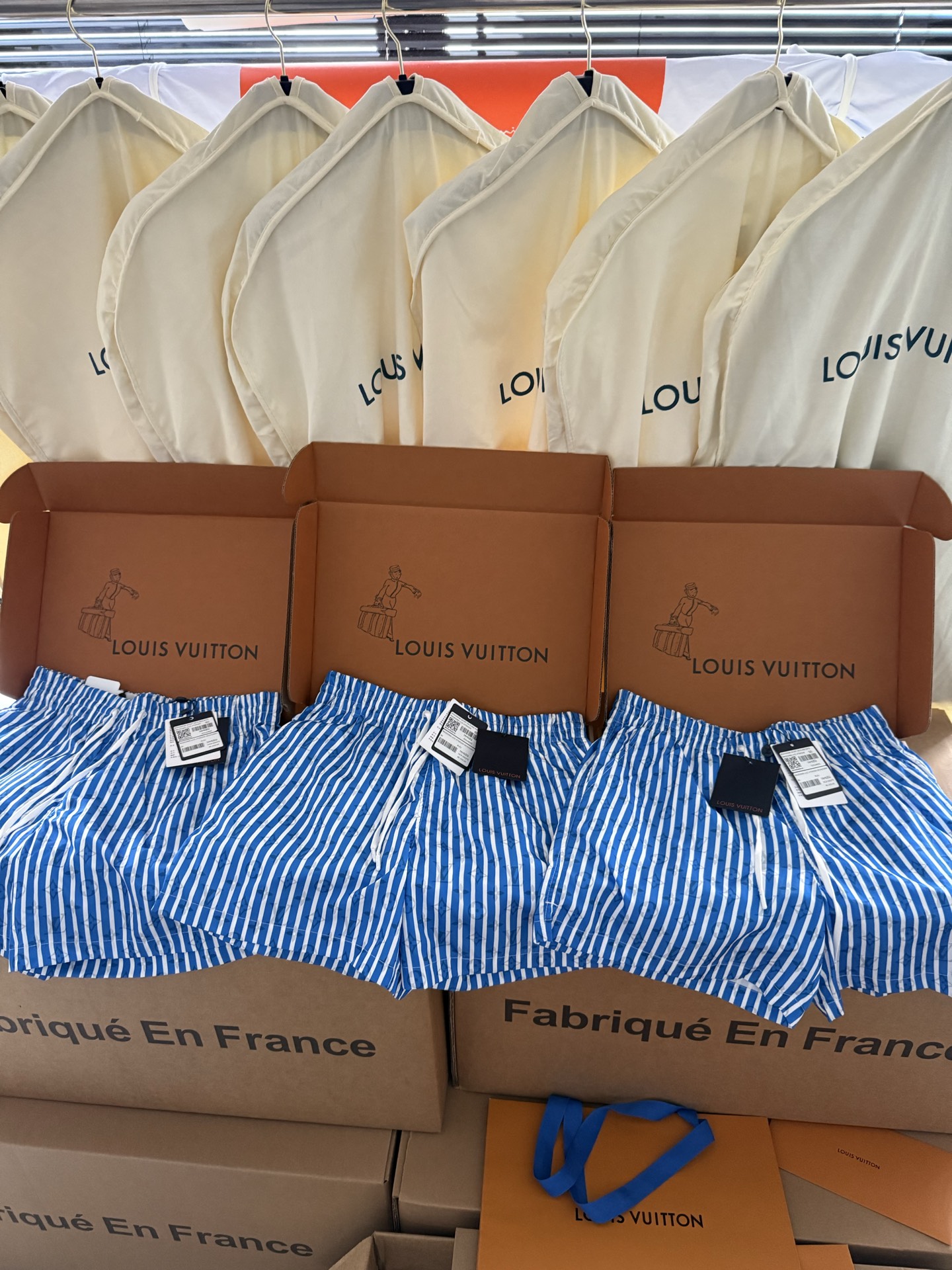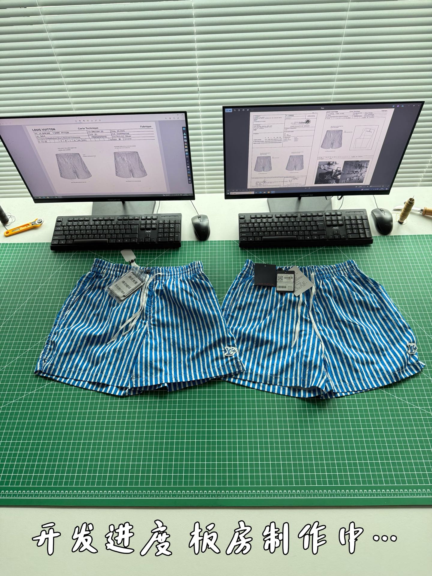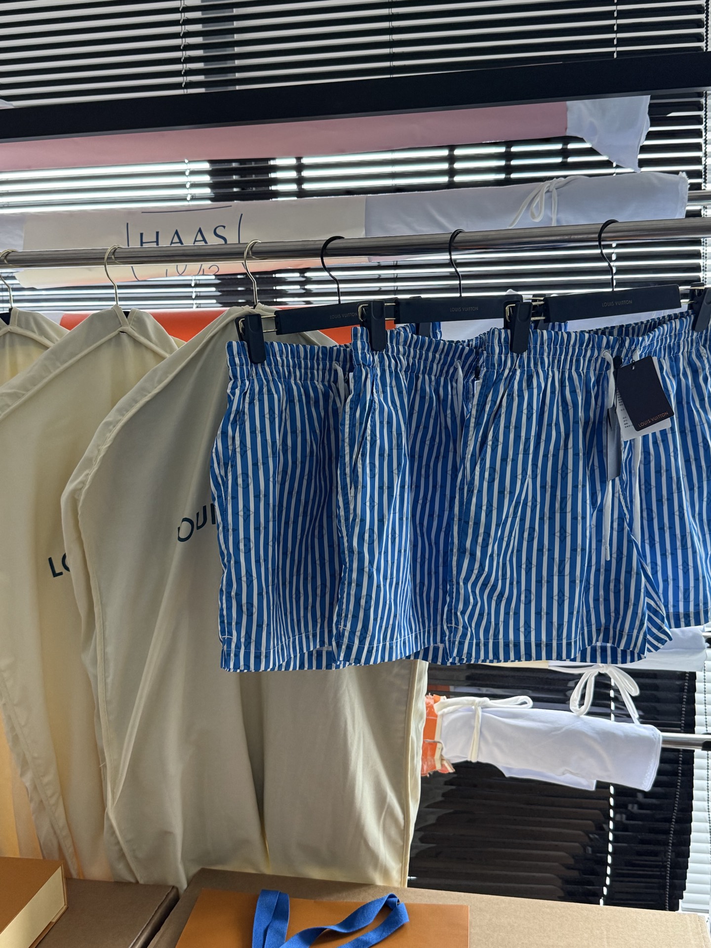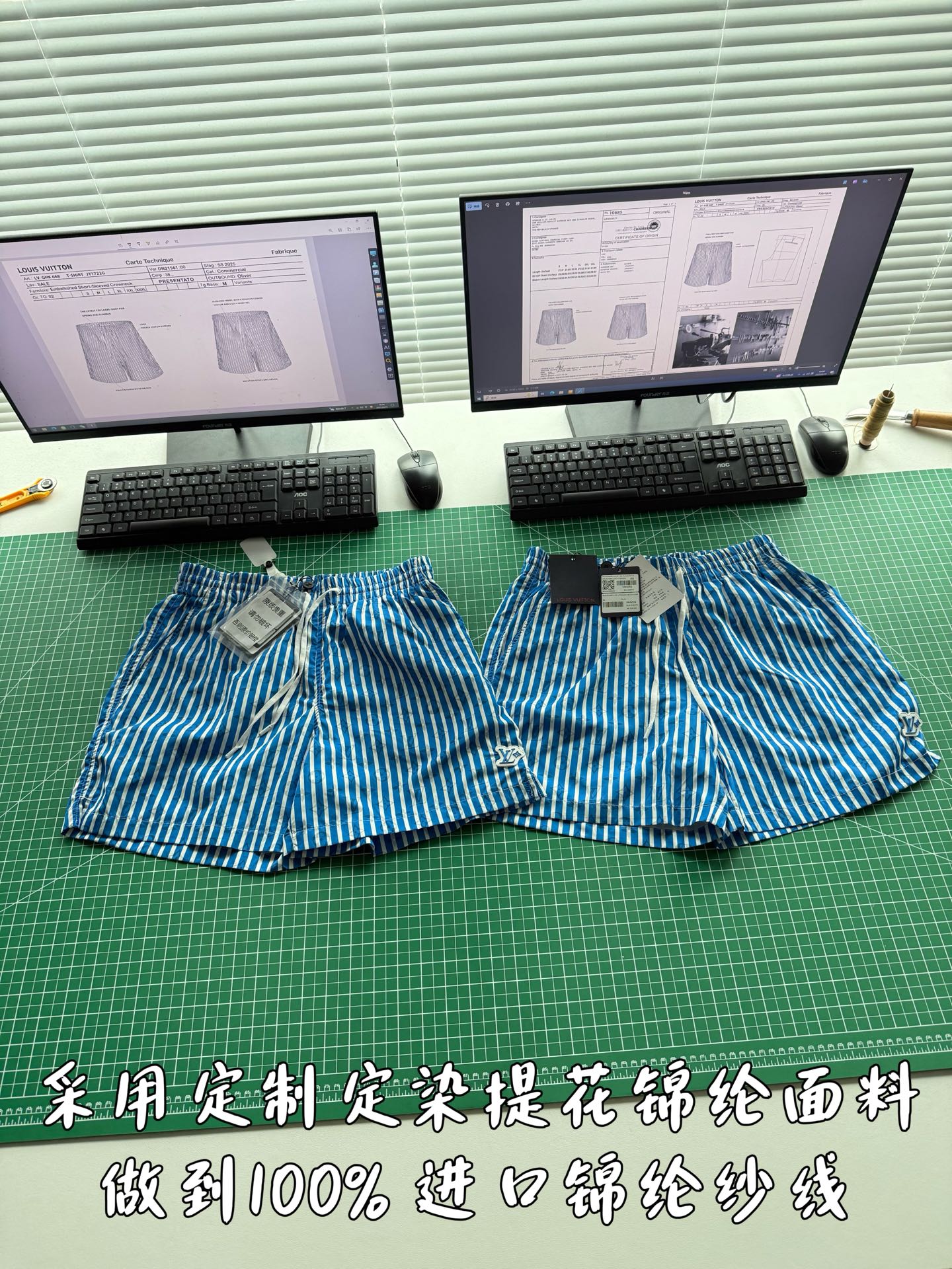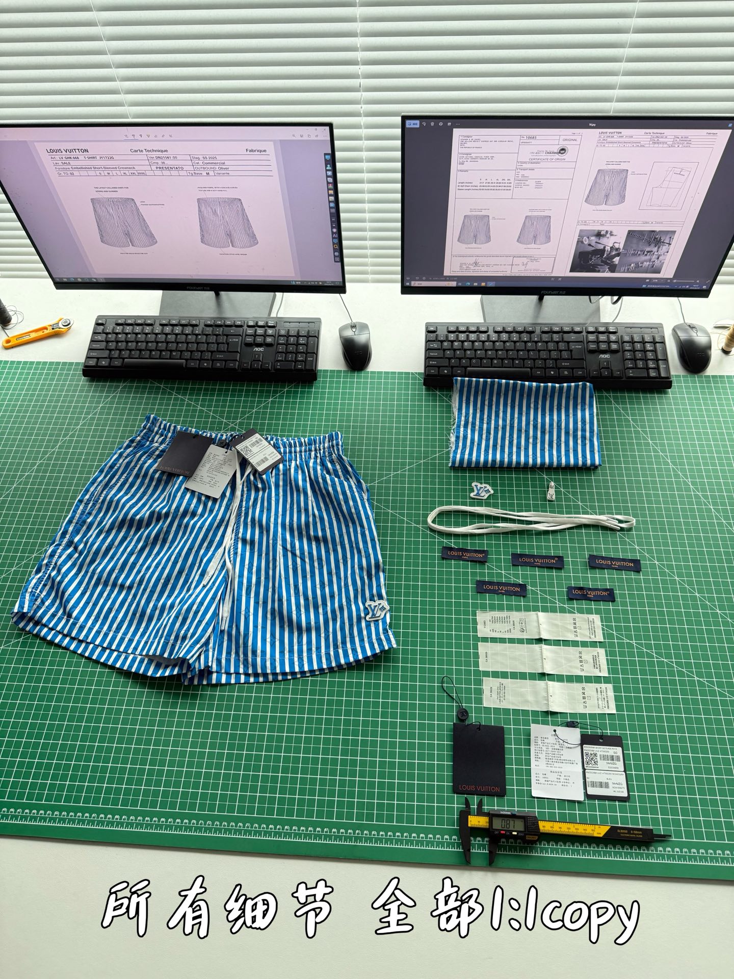 整条裤子6550购买ZP拆解打造,采用定制提花锦纶面料,做到100%进口锦纶纱线,全幅饰以蓝白竖条纹设计,面料呈现Monogram提花,做到与面料融为一体,腰部内里带棉质抽绳设计 五金都做到代字母logo,后幅拉链口袋设计,开模定制LV字母logo镂空拉链头,