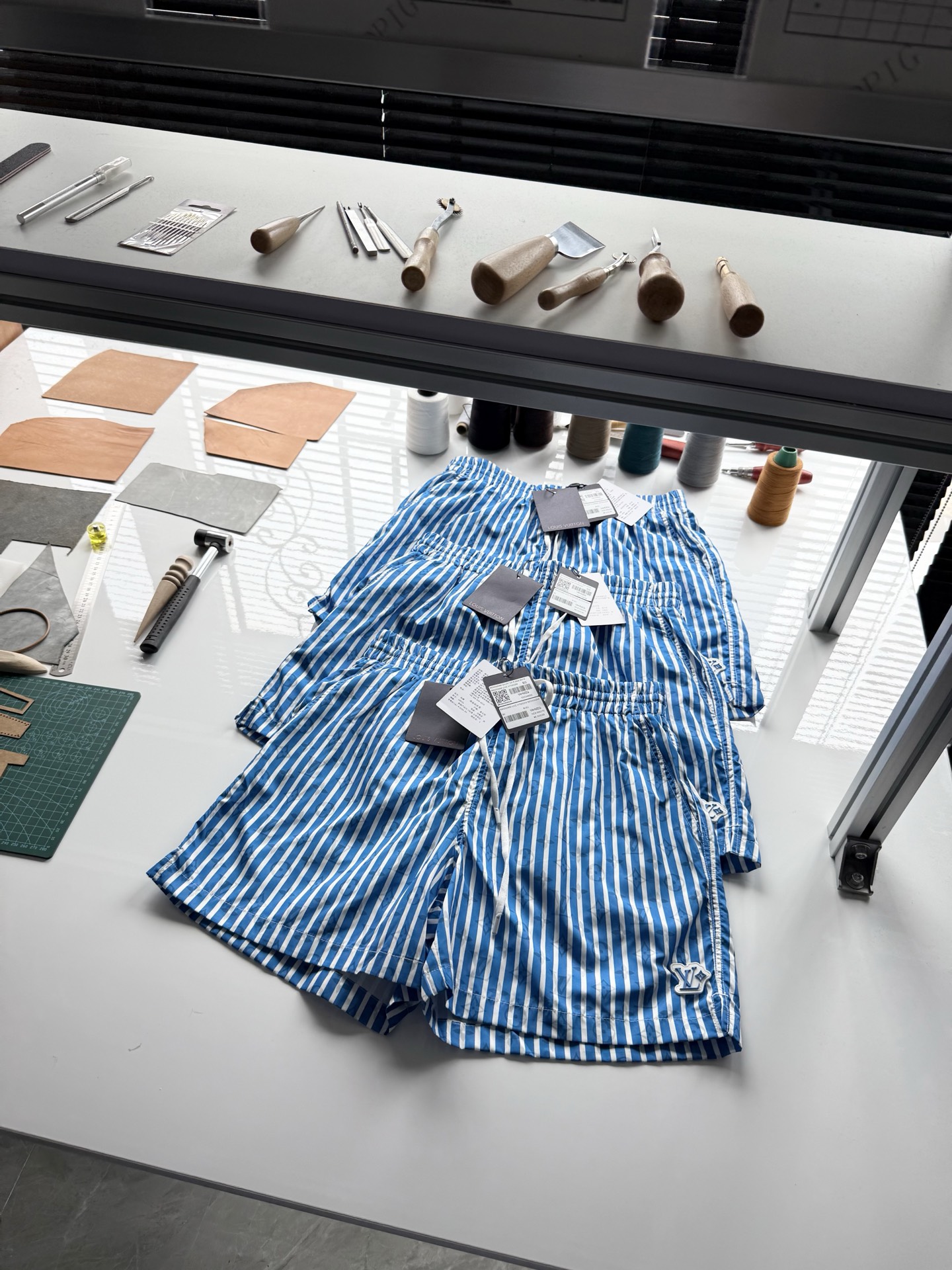 驴家25ss蓝白条纹提花短裤‼️