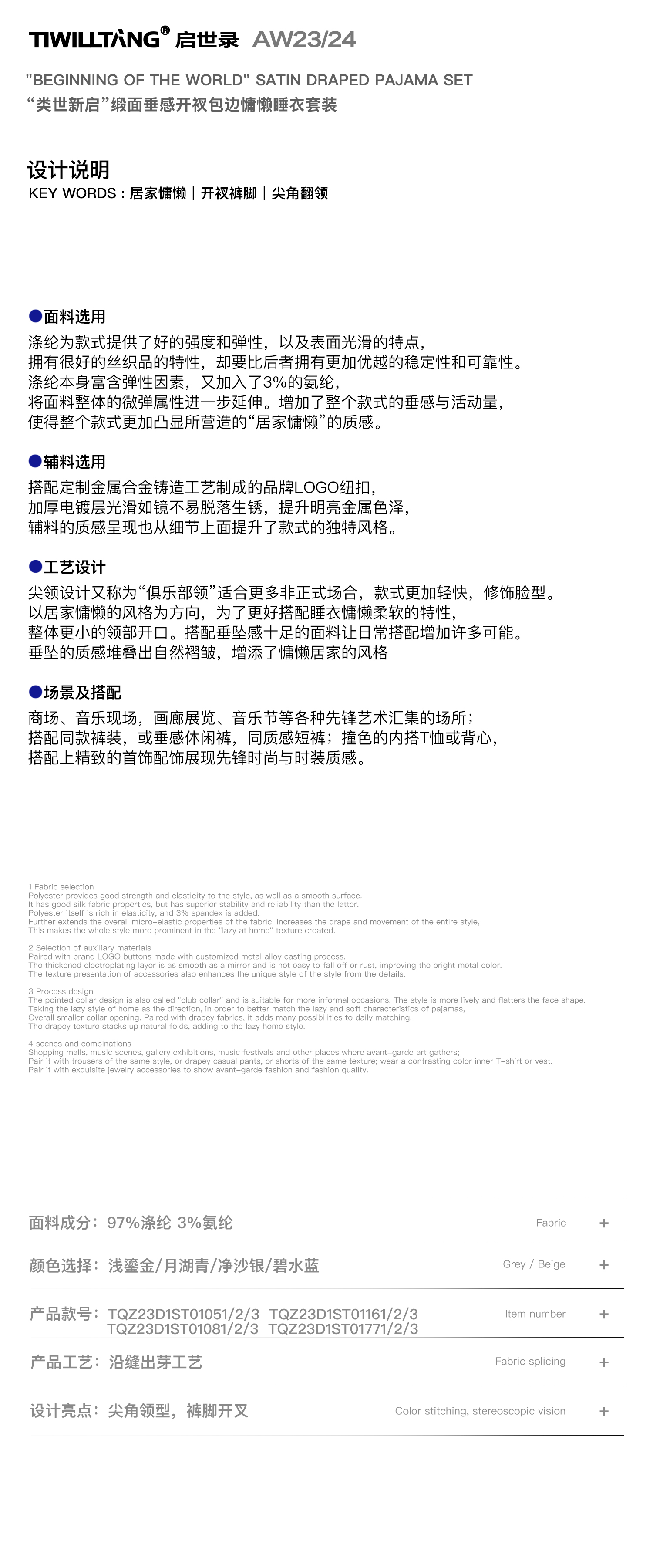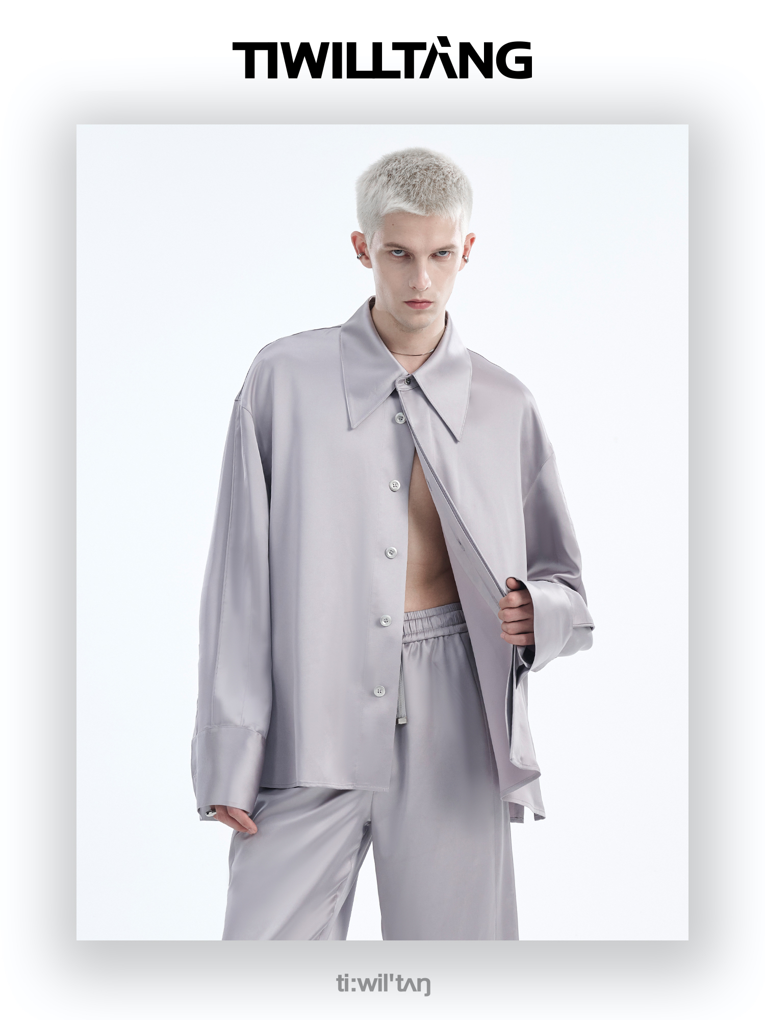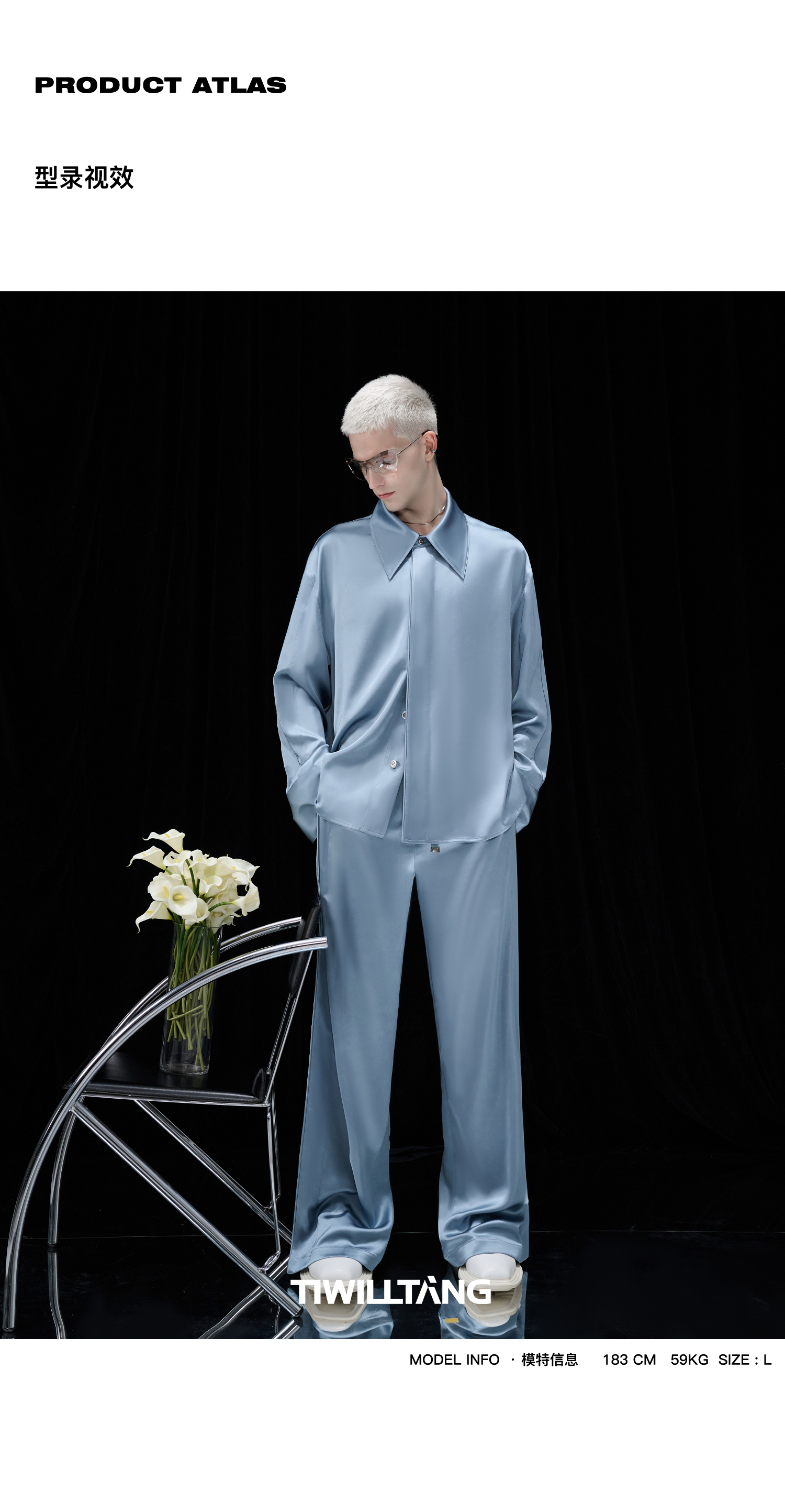 TIWILLTANG启世录“类世新启”高奢定制进口缎面垂感慵懒时装套装