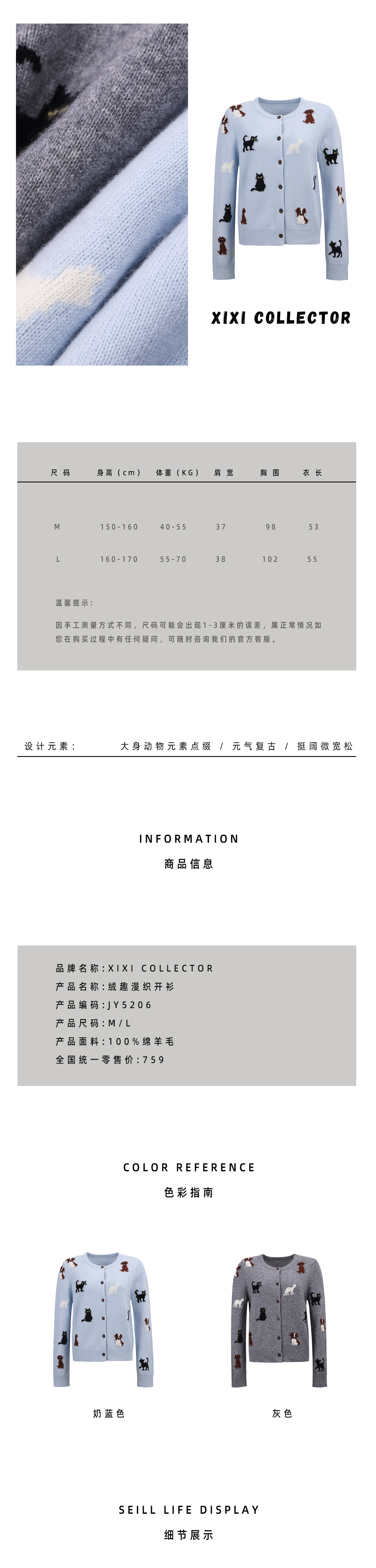 Runaway artist 沈梦辰明星同款100%羊毛绒趣漫织开衫