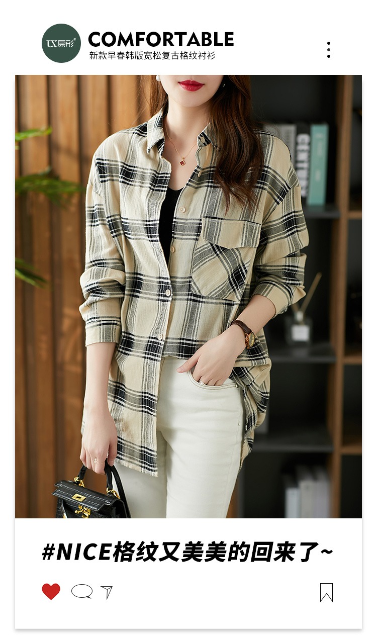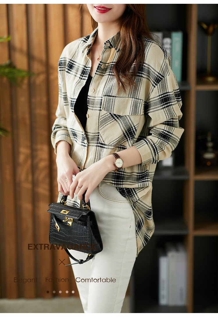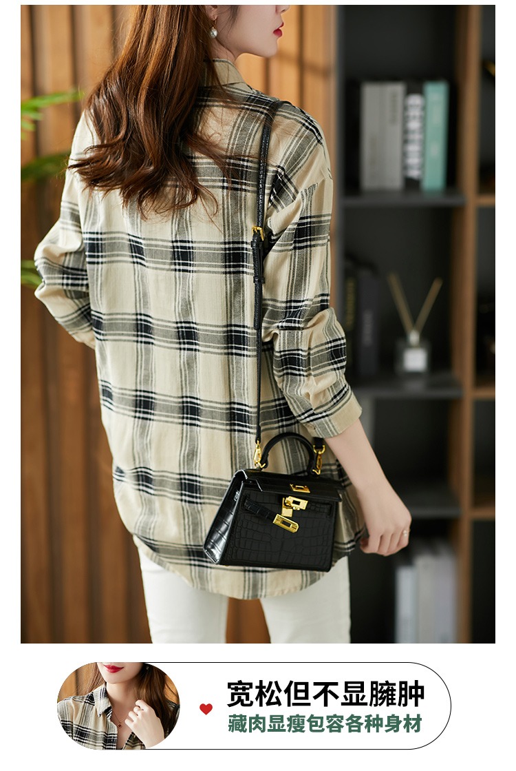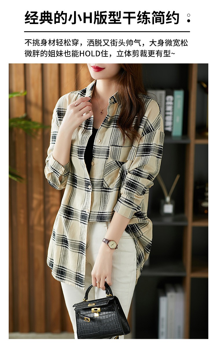 【现货7天】衬衫女2023新款秋装外套格子显瘦中长款休闲衬衣显瘦百搭衬衫