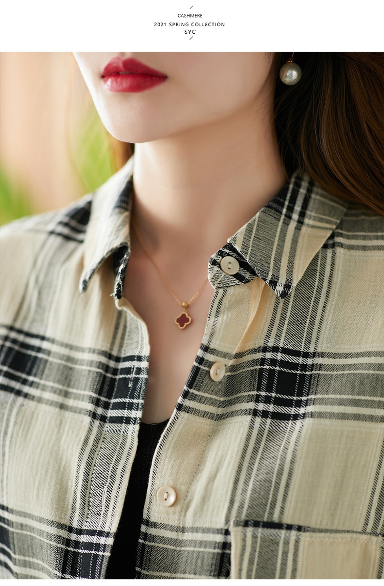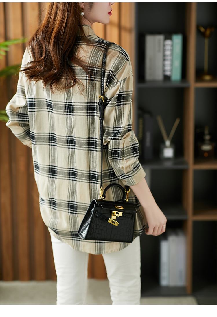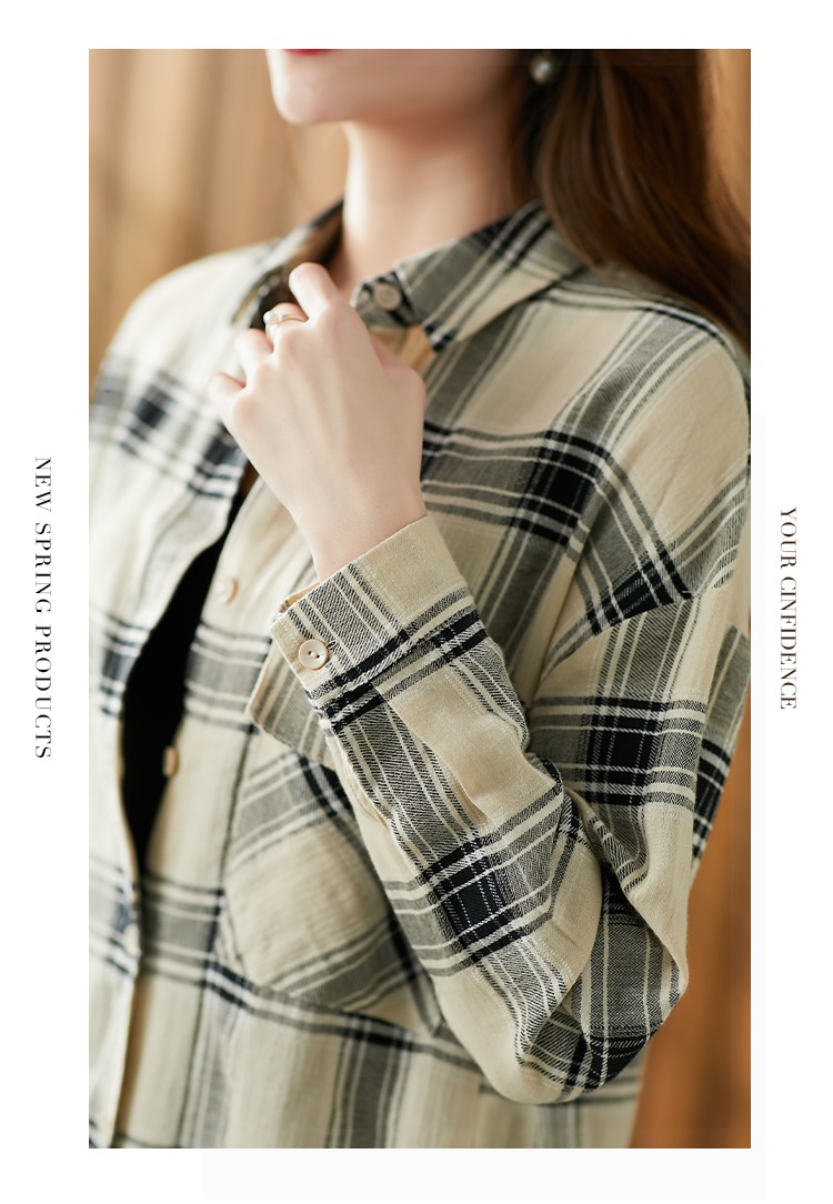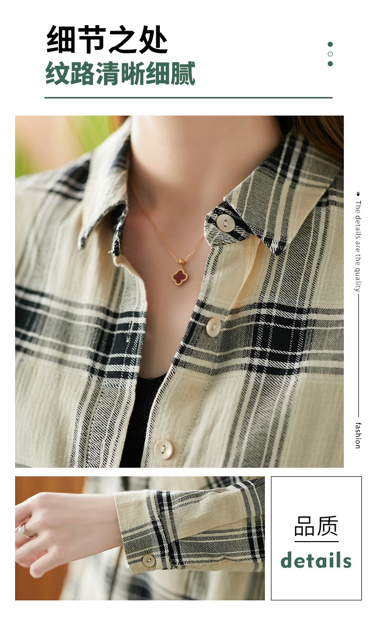 【现货7天】衬衫女2023新款秋装外套格子显瘦中长款休闲衬衣显瘦百搭衬衫
