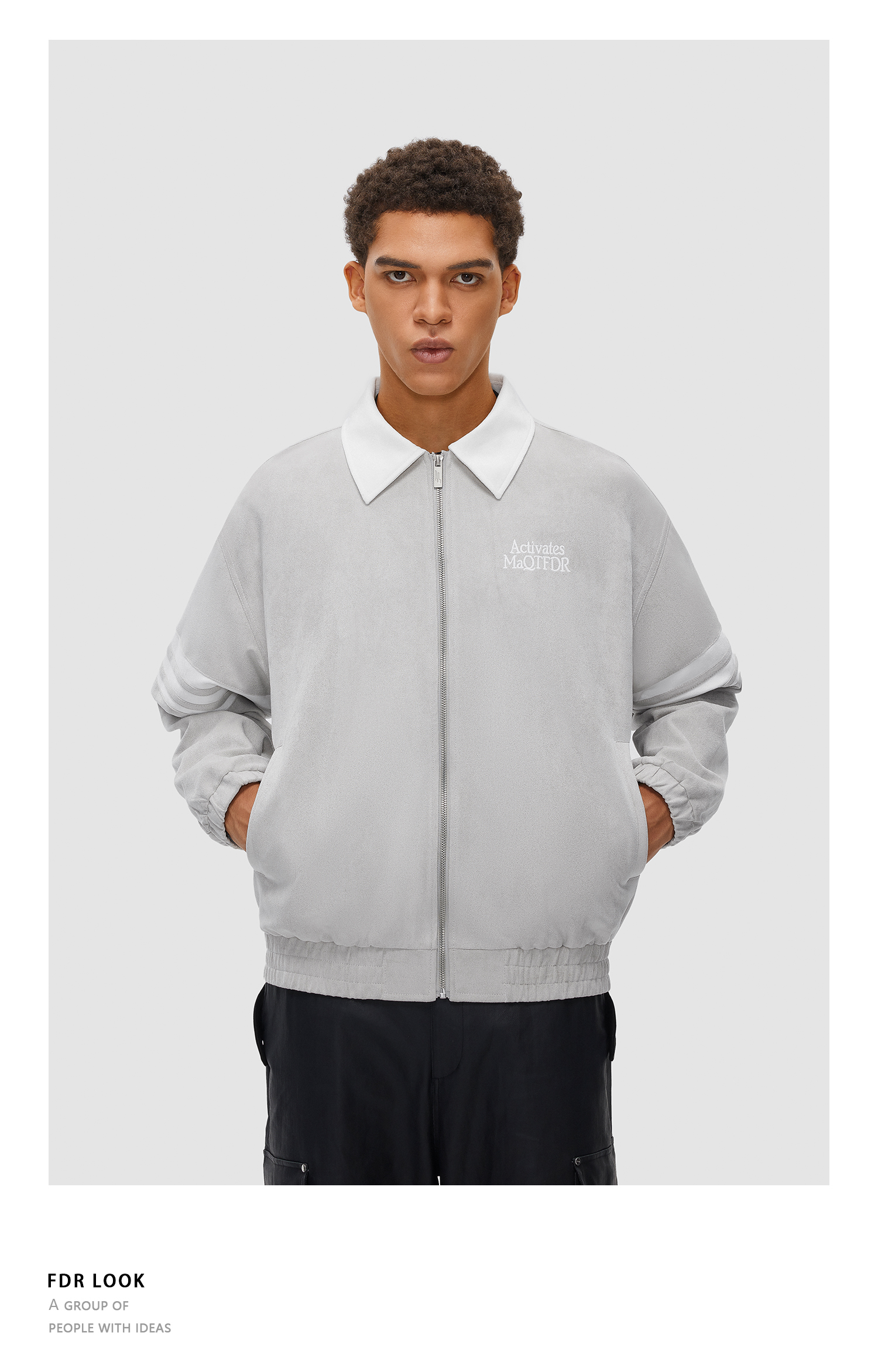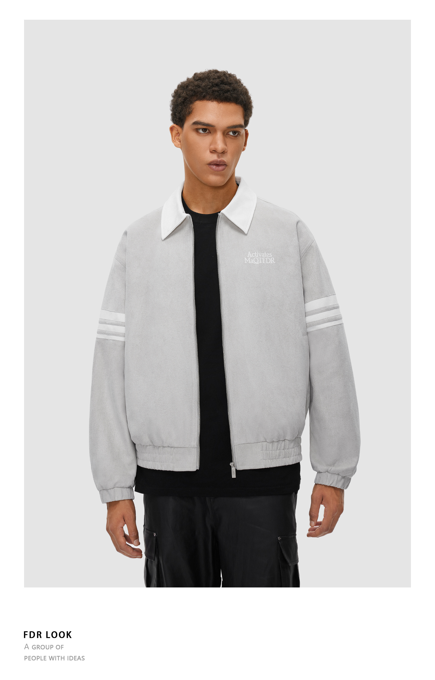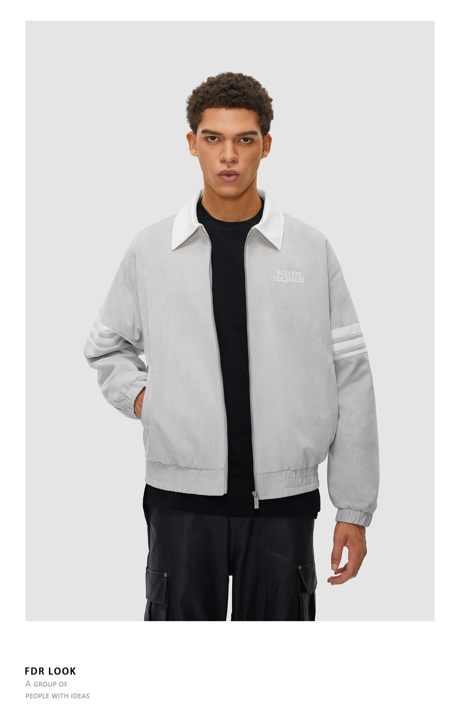 FDR 国潮撞色拼接麂皮夹克外套男女春秋季美式高街情侣上衣棒球服