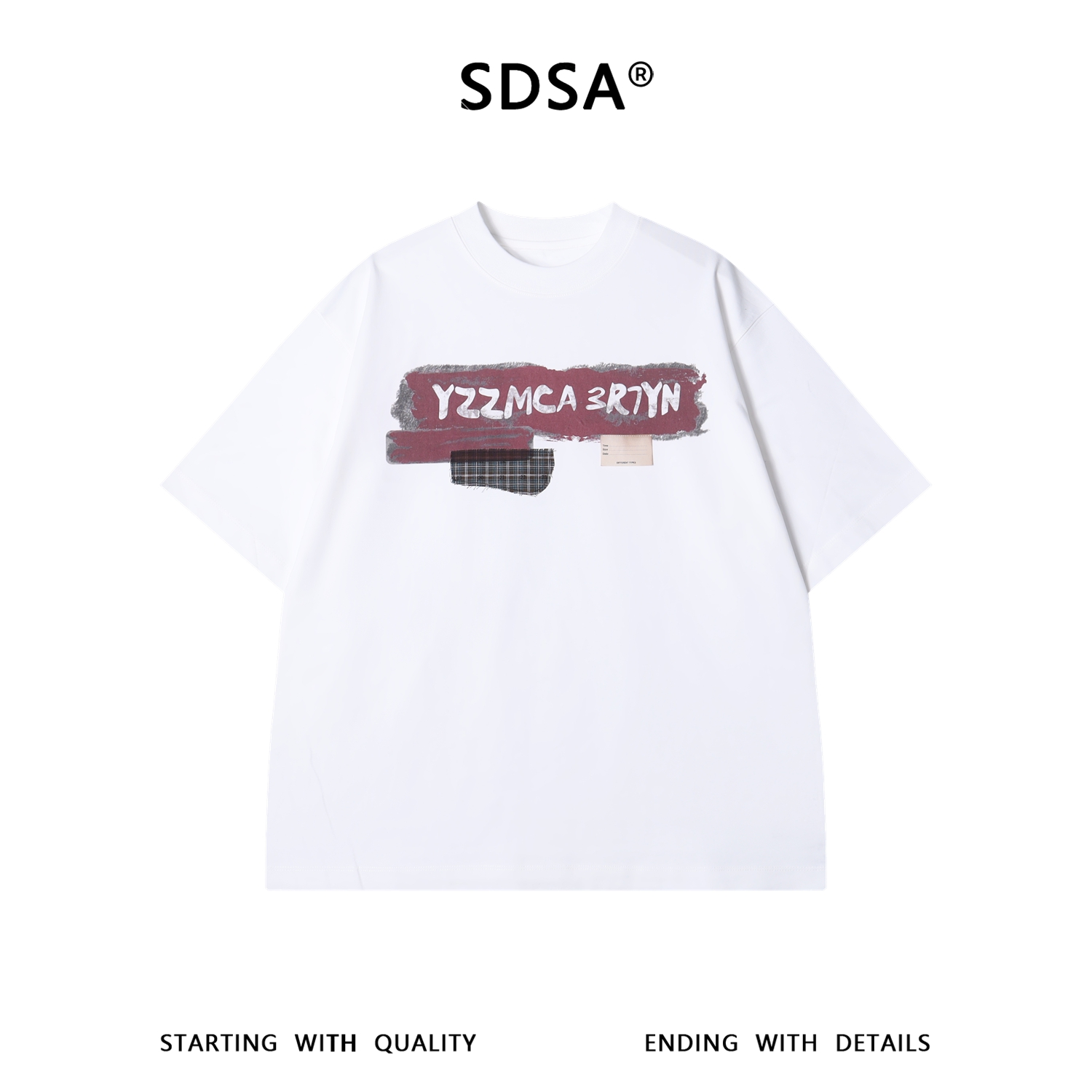 SDSA男装2026新款做旧涂鸦字母印花宽松短袖T恤美式复古休闲上衣