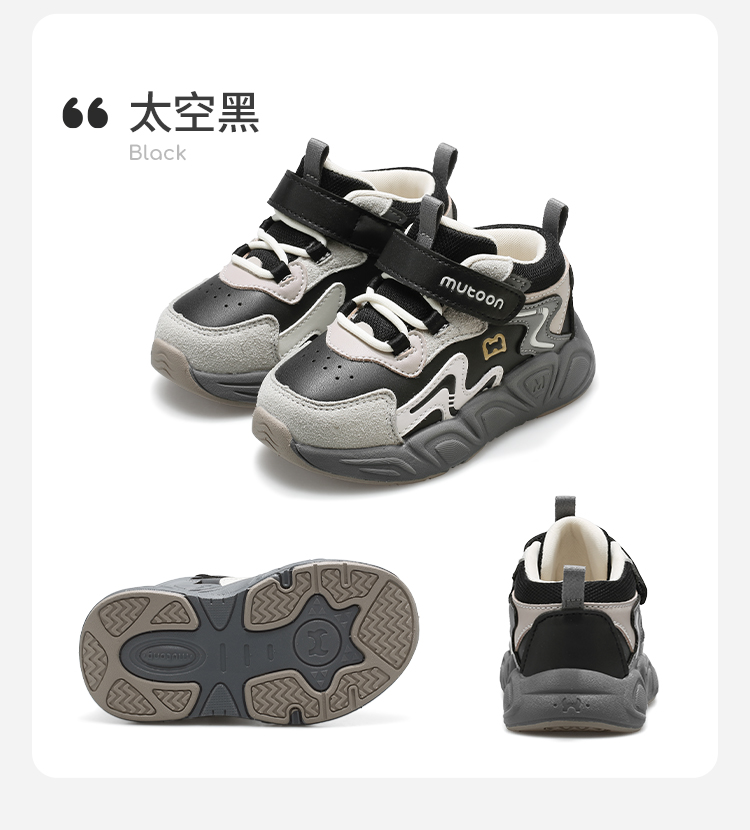 牧童幼儿园防滑机能鞋2025秋季防水皮面机能鞋新款透气宝宝运动鞋