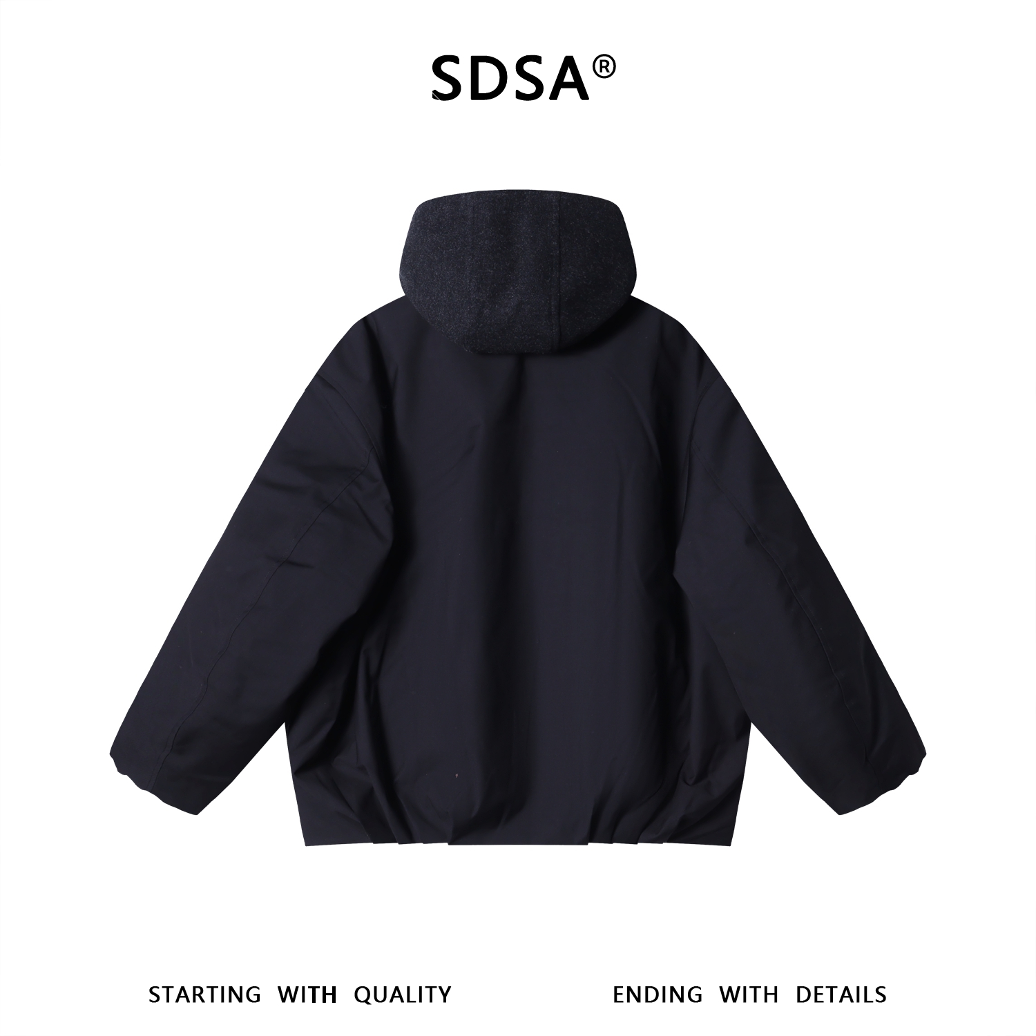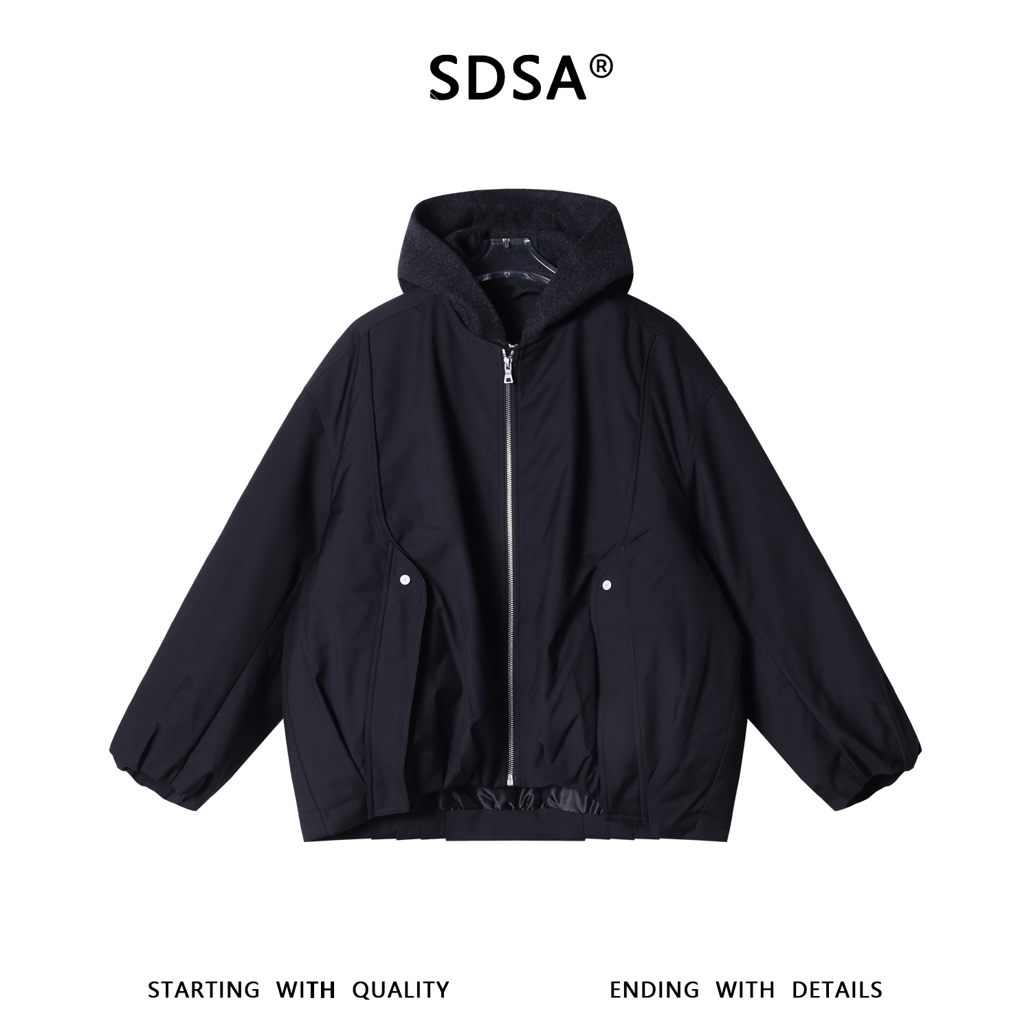 25Y325SDSA男士秋冬新款痞帅男装美式复古撞色假两件连帽棉服外套百搭