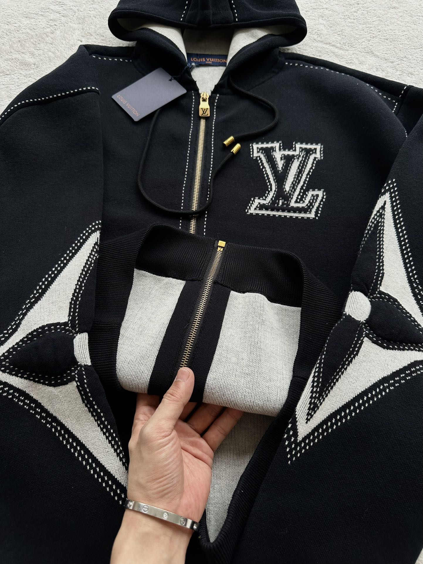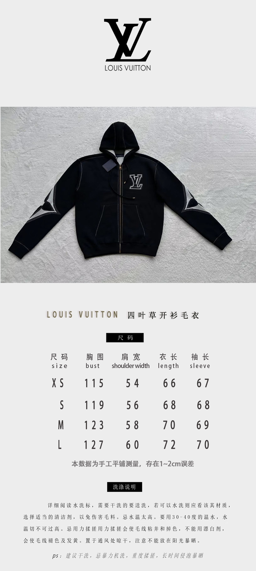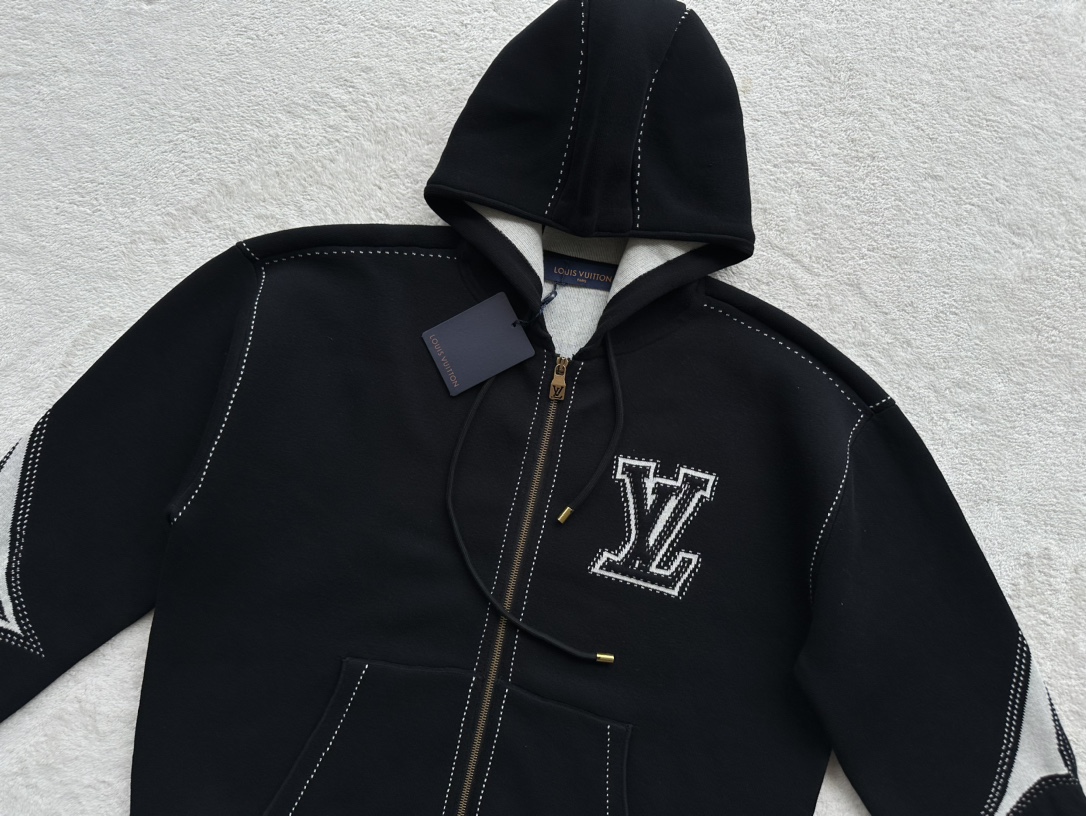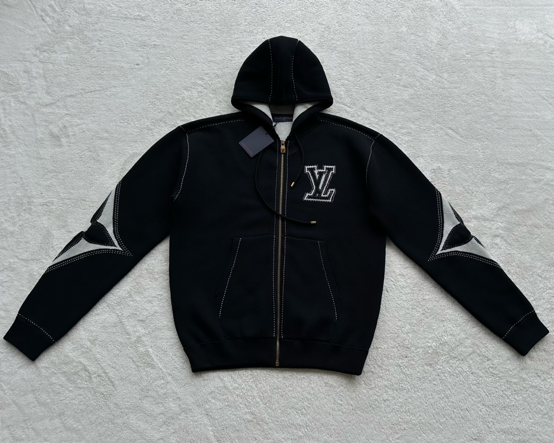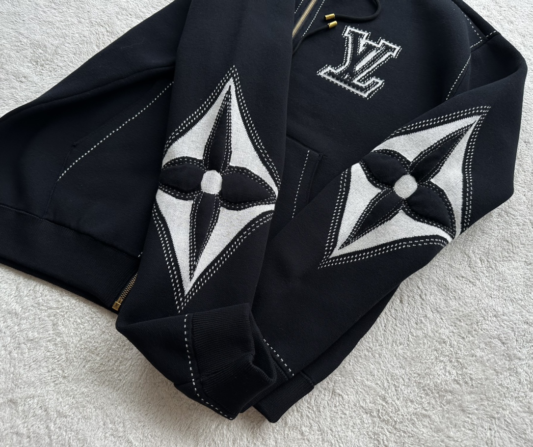 驴家 手臂浮雕四叶草 重磅毛织拉链连帽外套(JN)