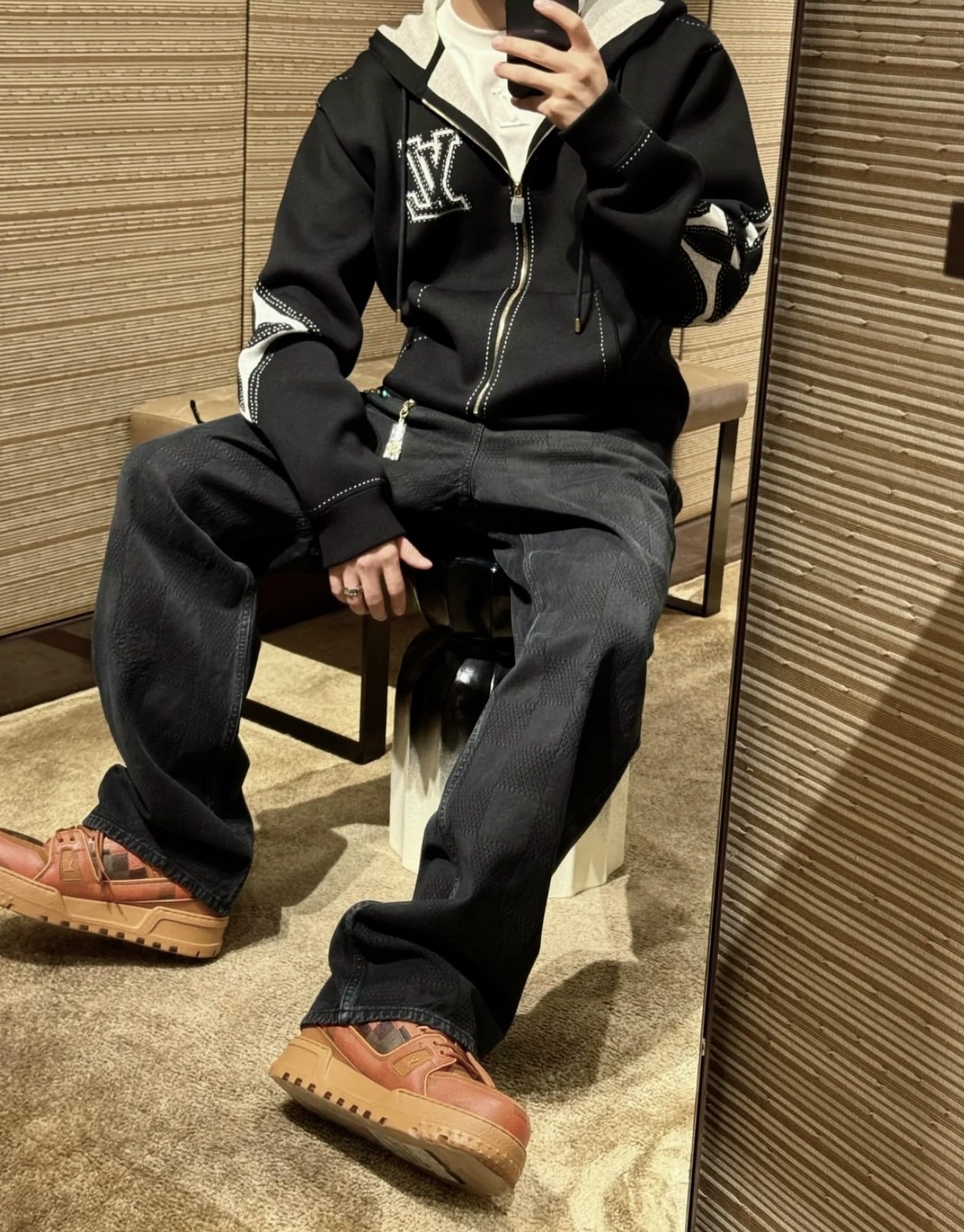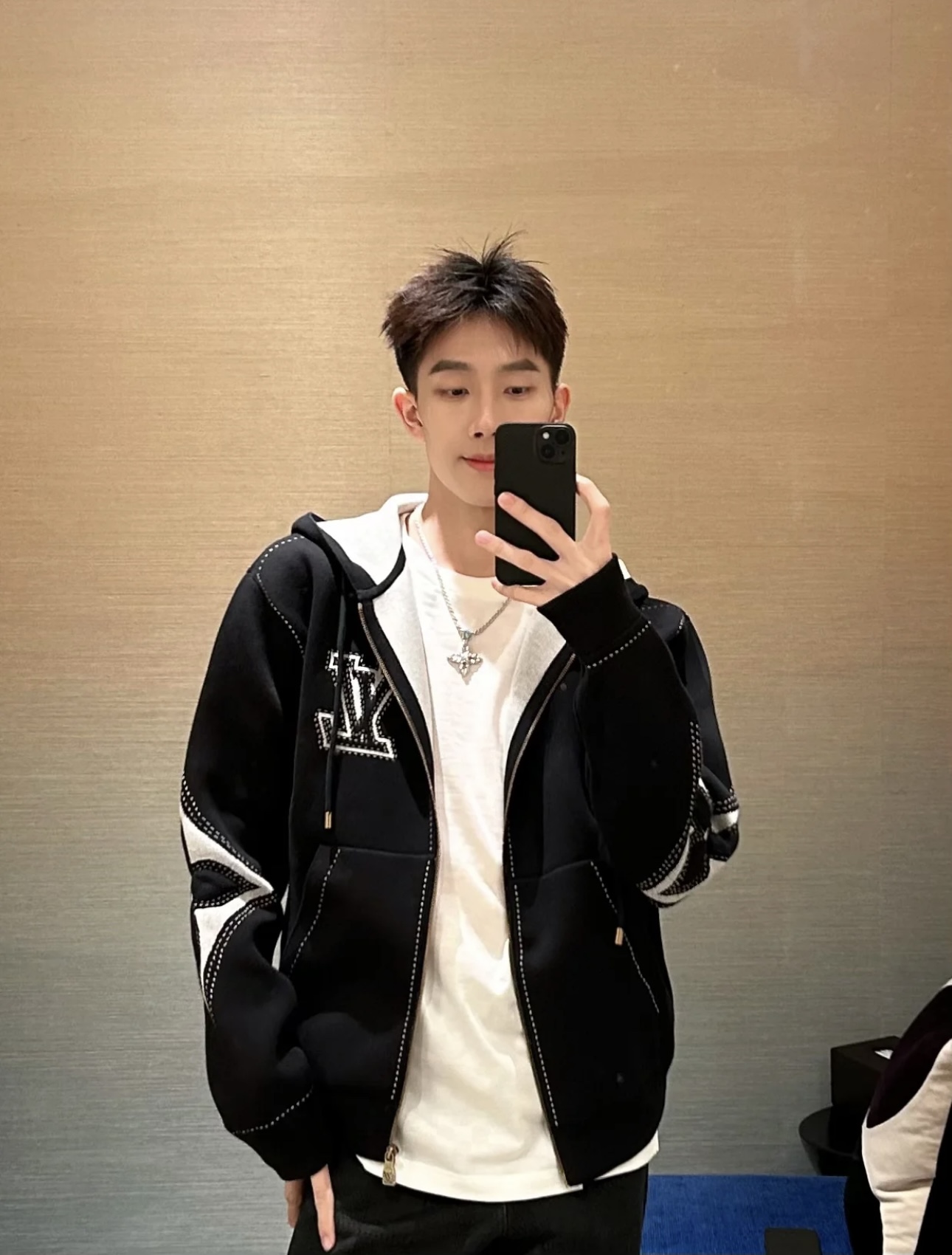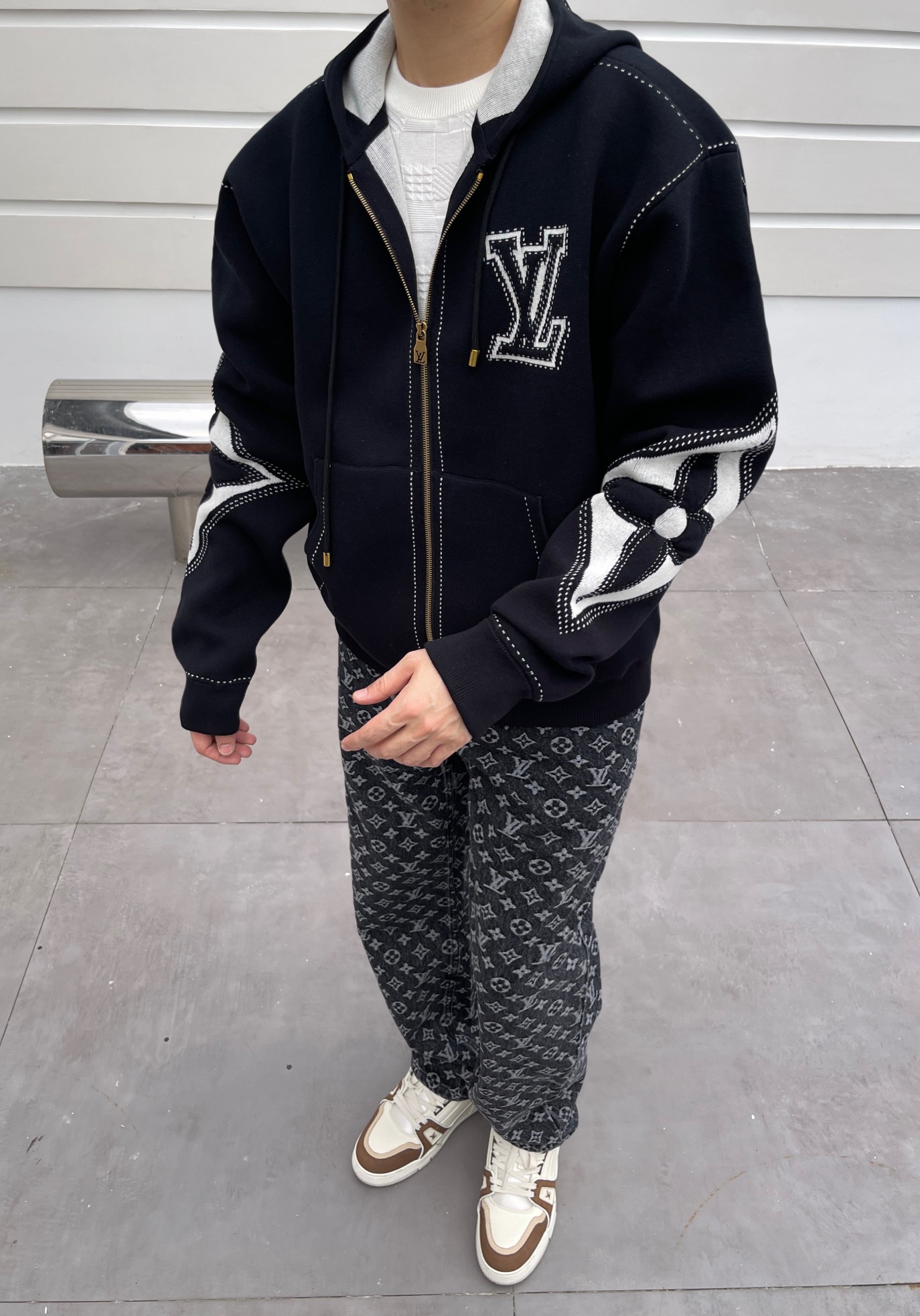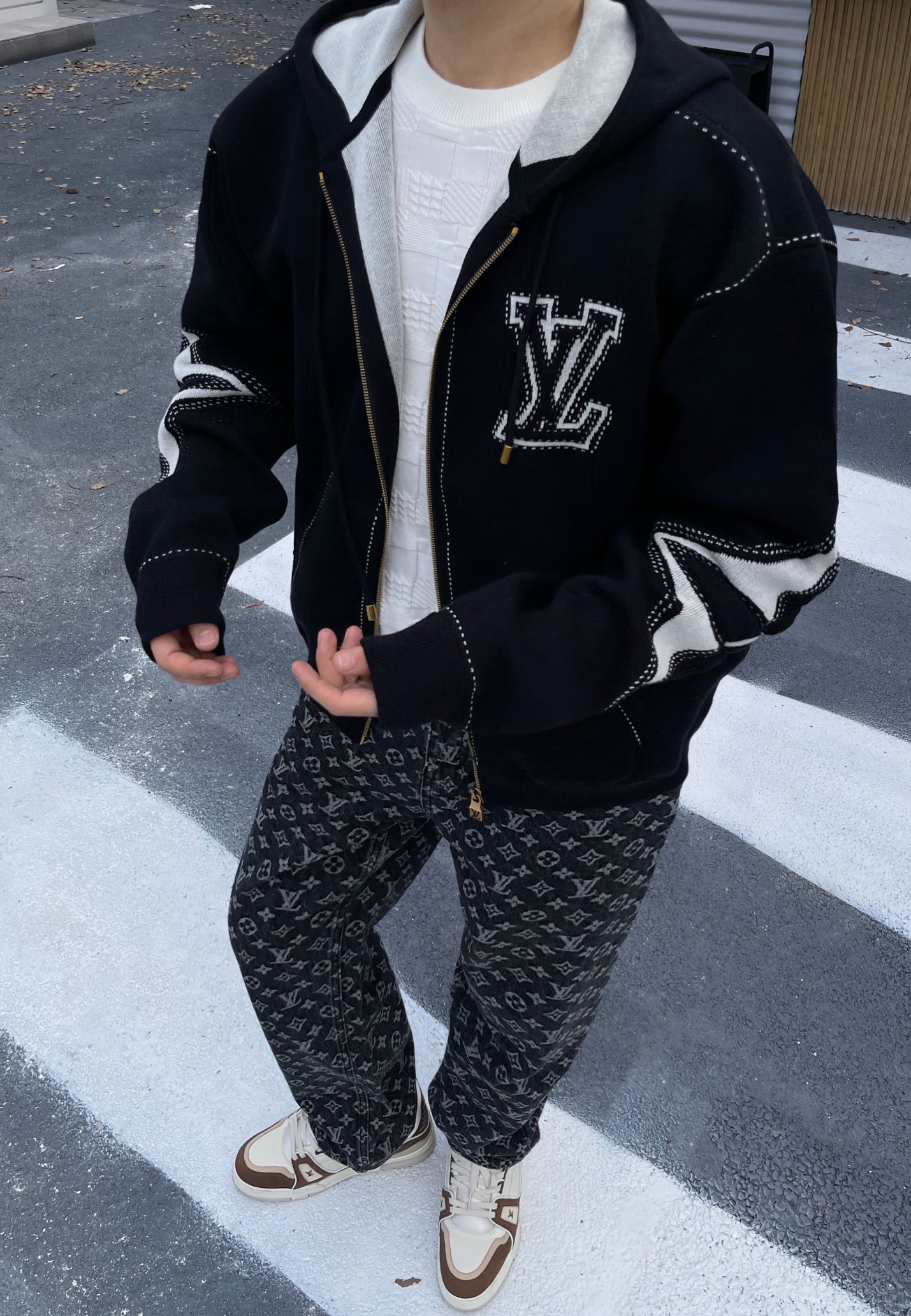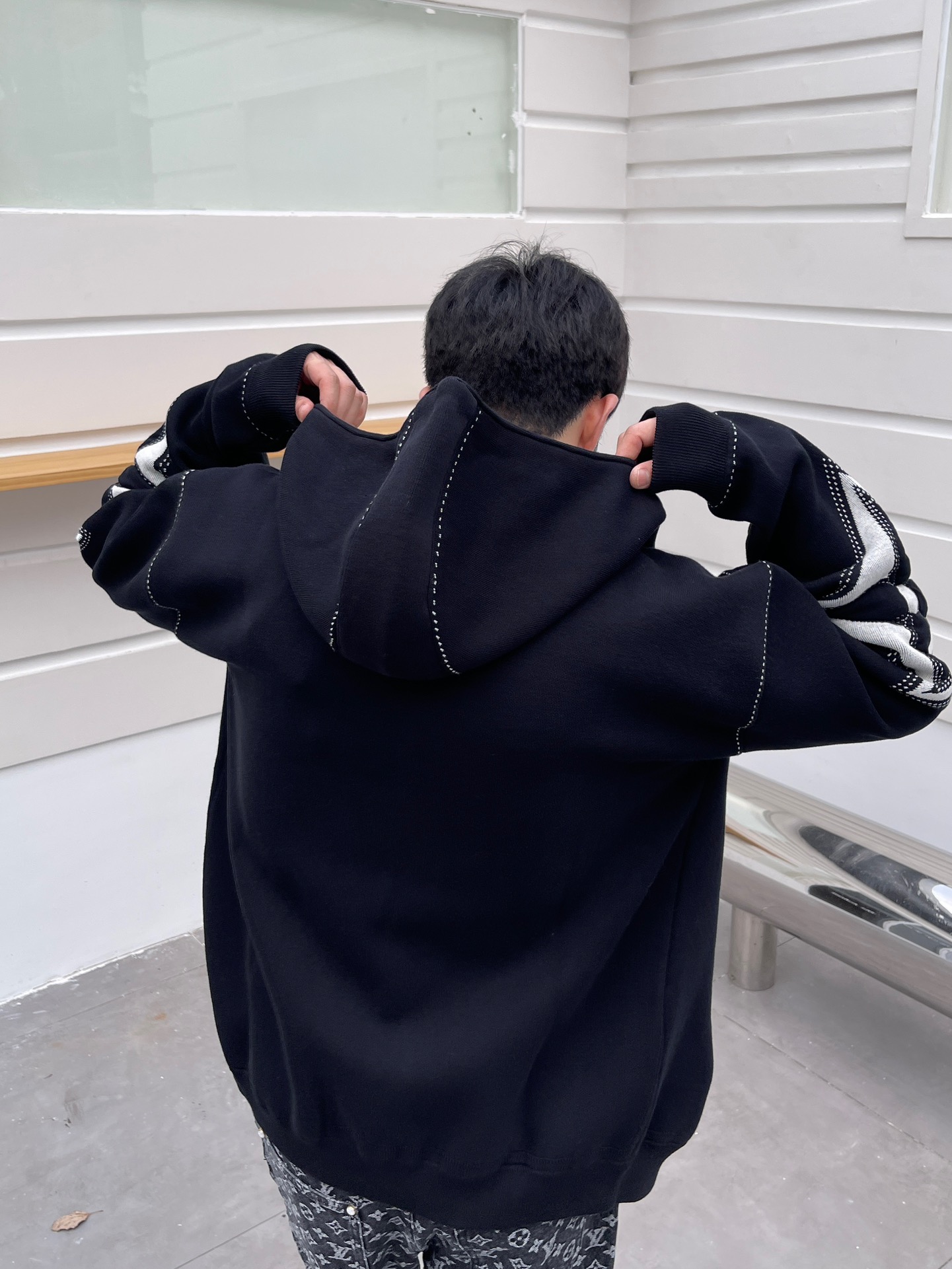 驴家 手臂浮雕四叶草 重磅毛织拉链连帽外套(JN)
