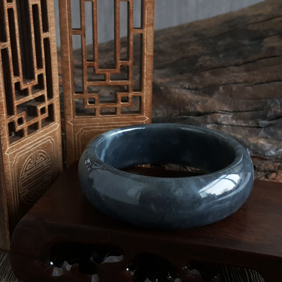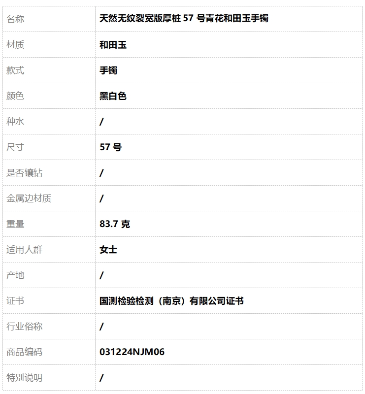 【天然正品】天然无纹裂宽版厚桩57号青花和田玉手镯031224NJM06 现售价:1680