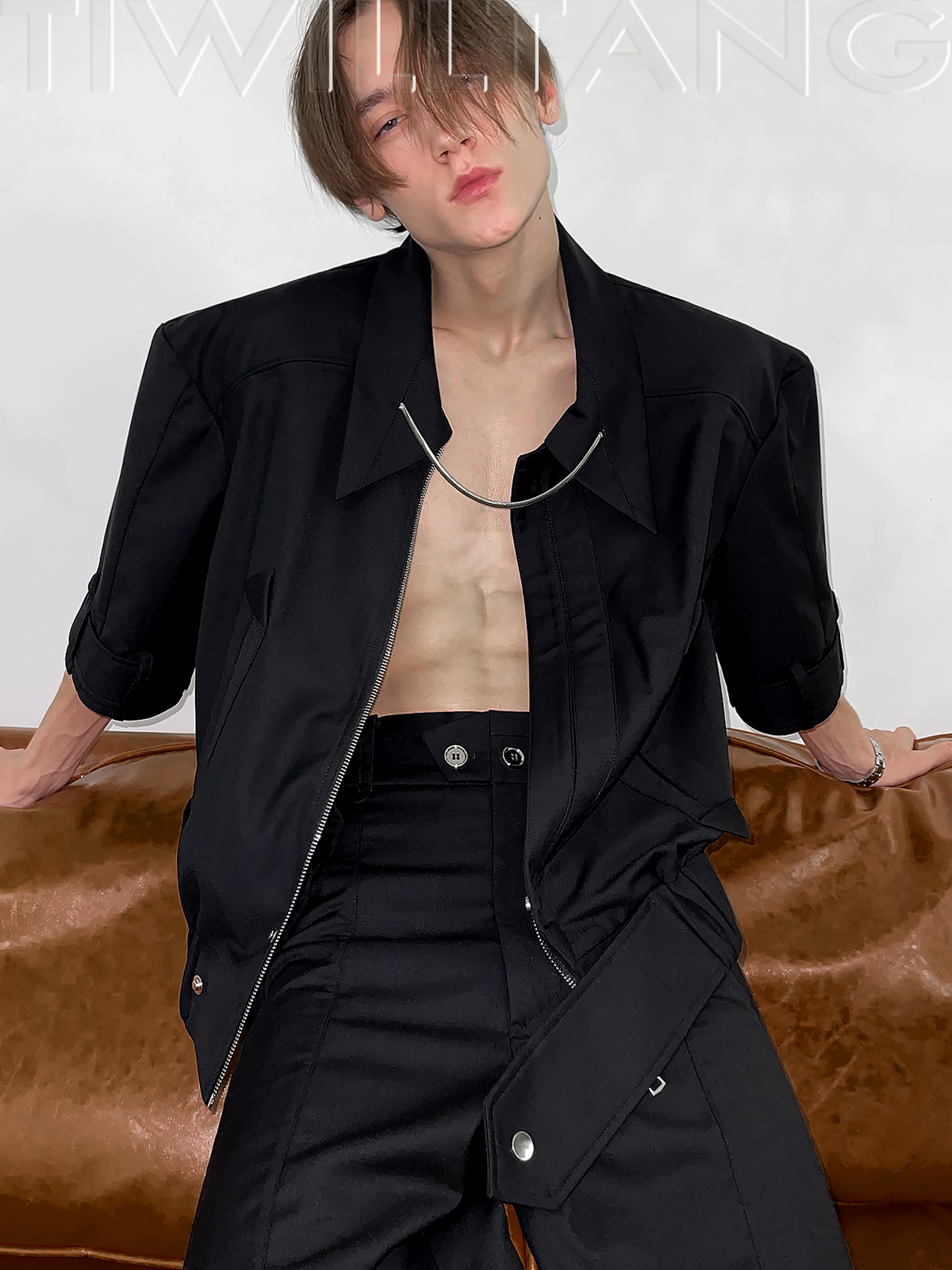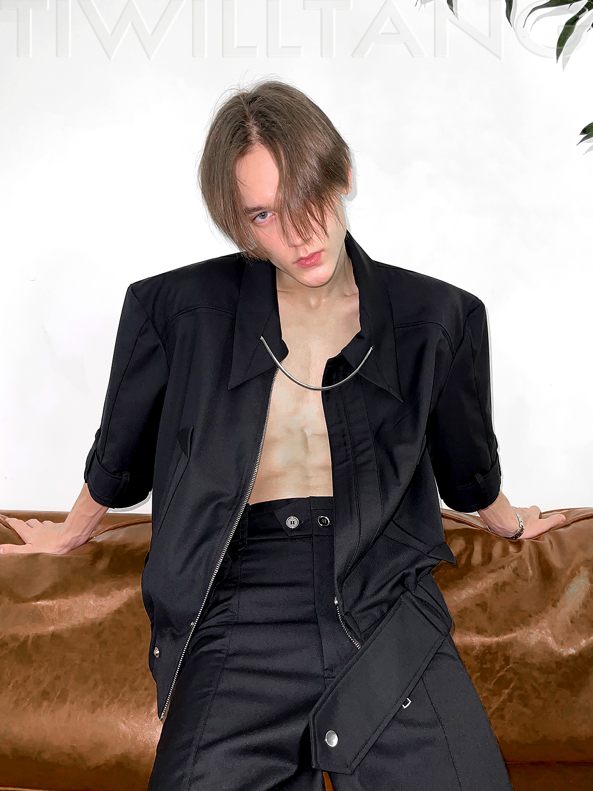 TIWILLTANG启世录ANEW 时装原创三角折边宽肩夹克 brown/black