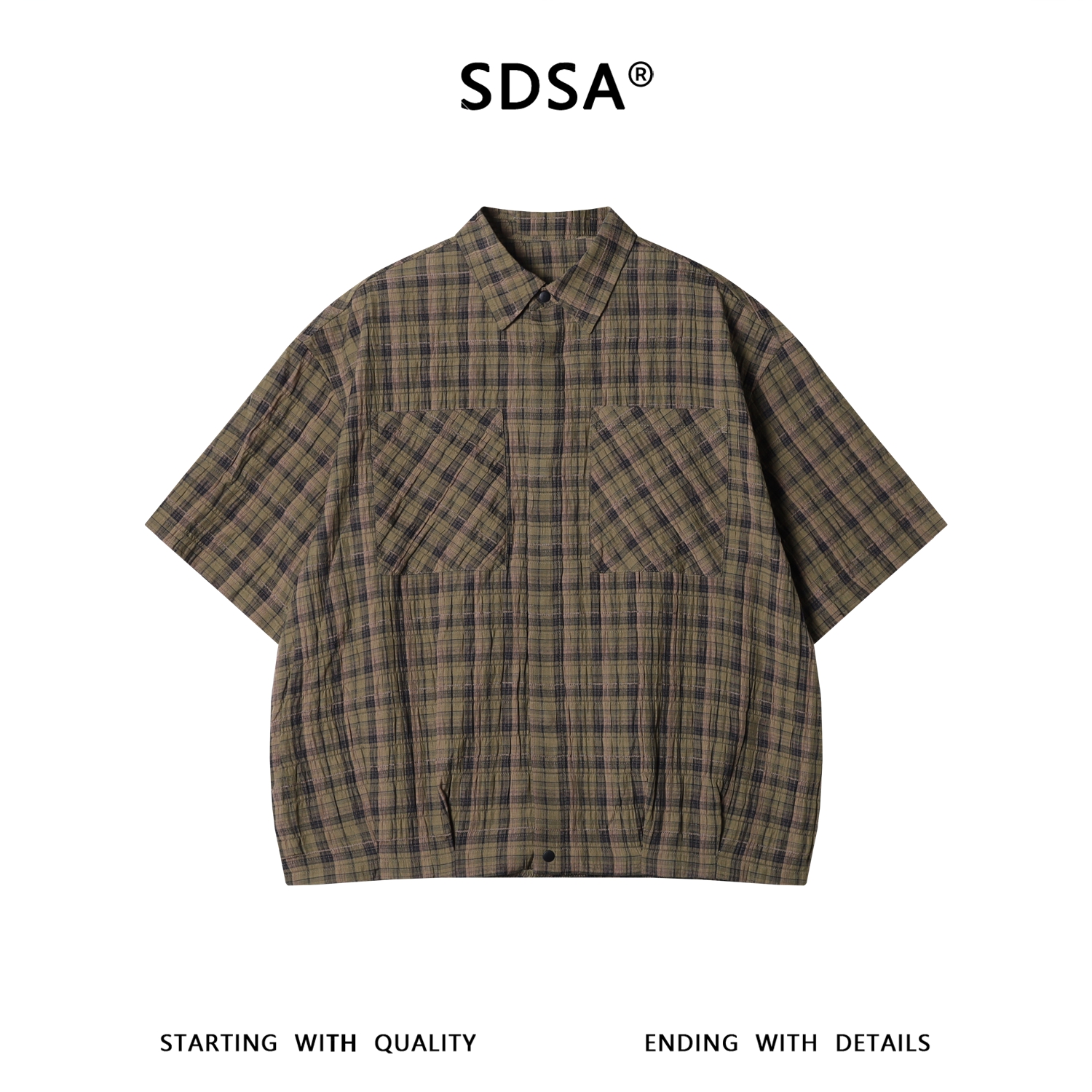 SDSA男装2026新款高贵轻奢港风复古撞色格子短袖衬衫百搭简约上衣