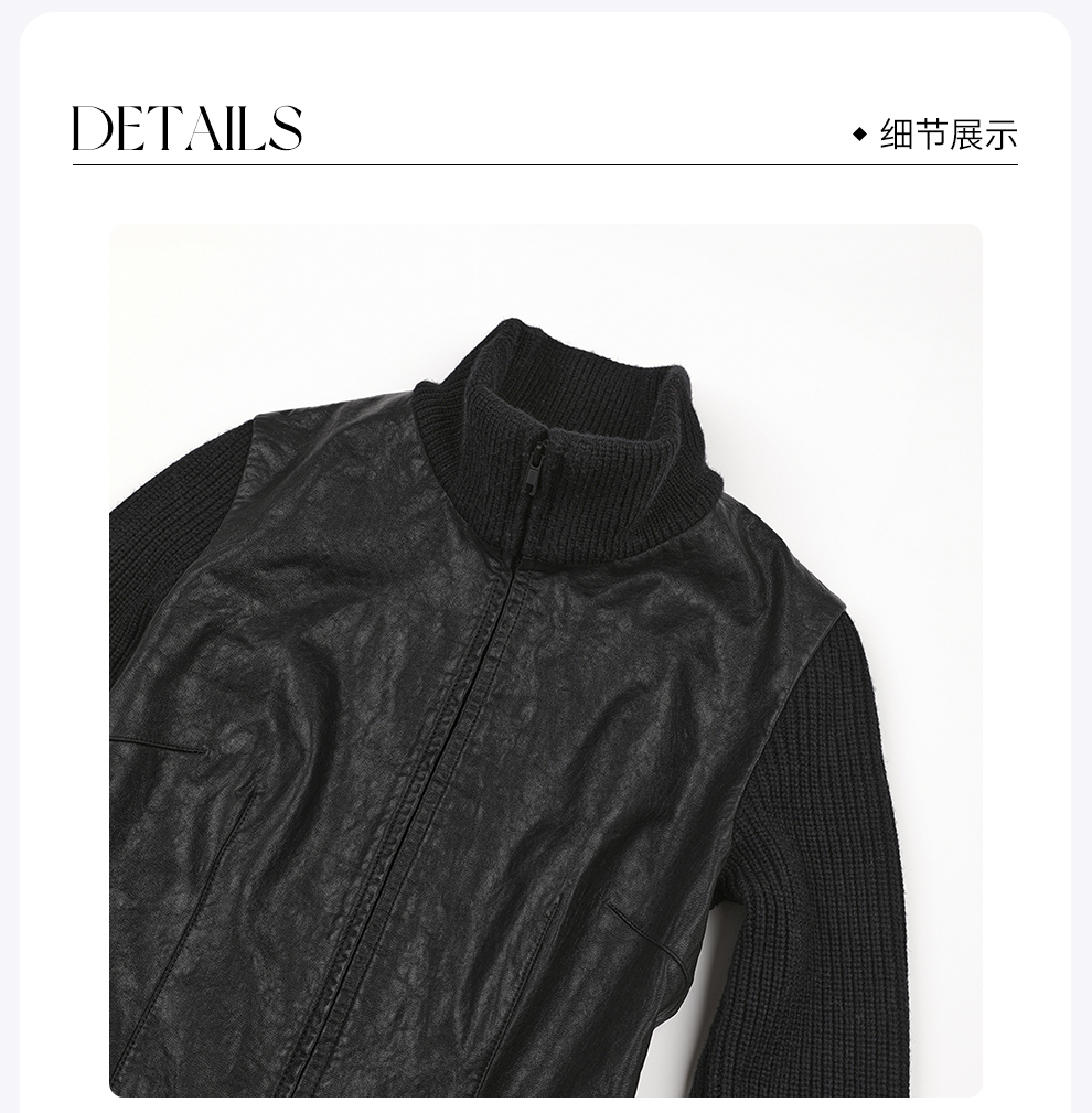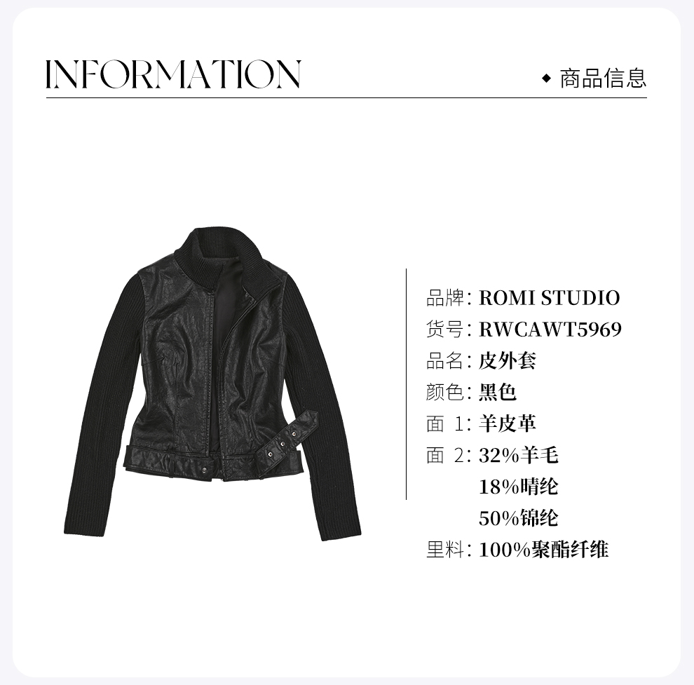 ROMI STUDIO“率性自我”羊皮拼毛织舒适立领皮衣外套 RWCAWT5969
