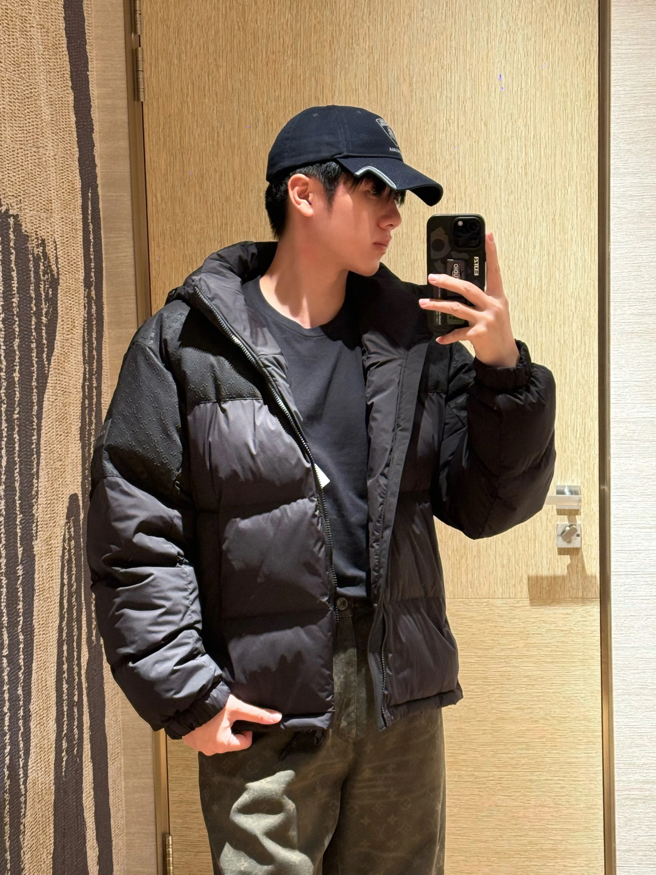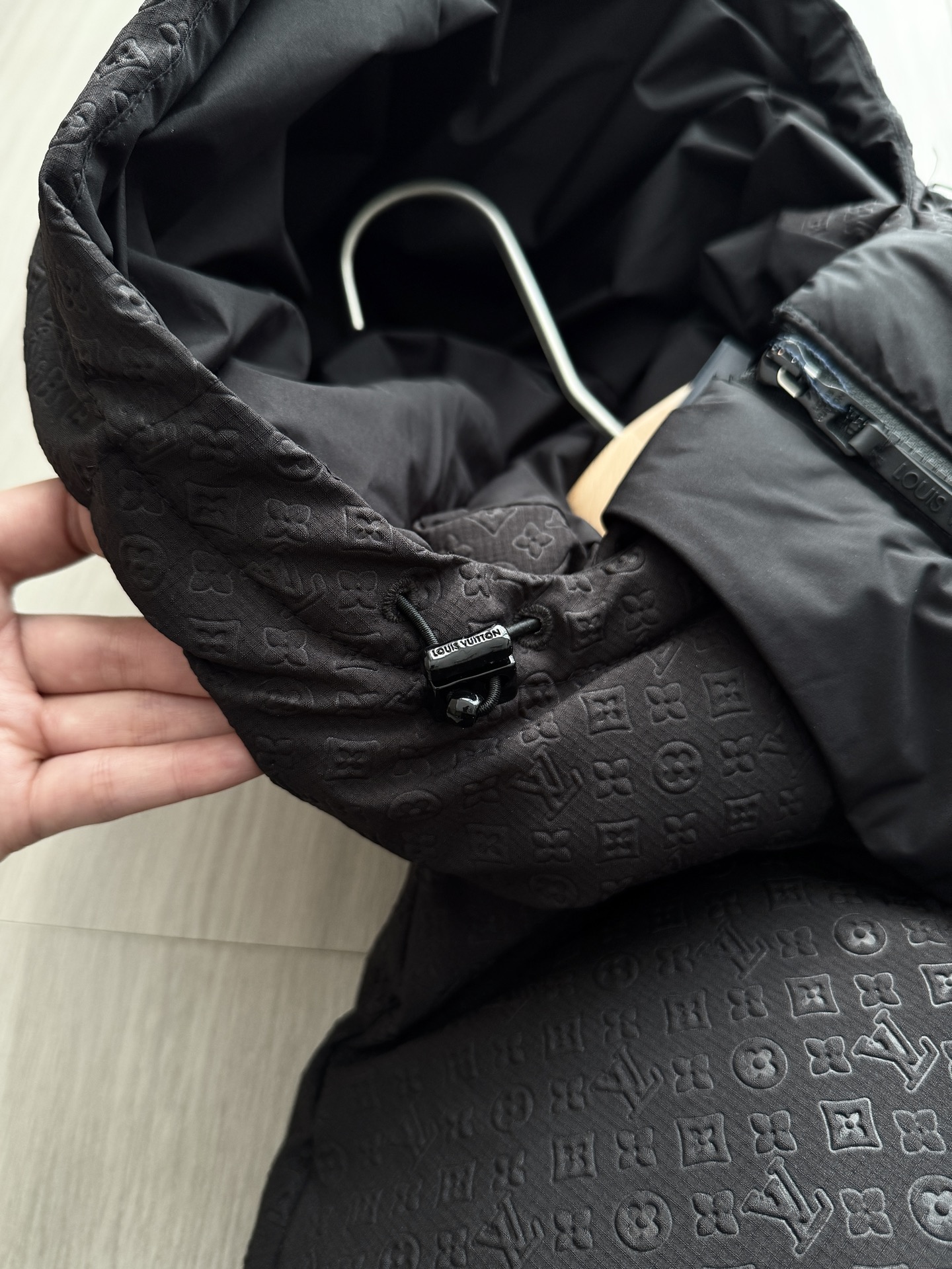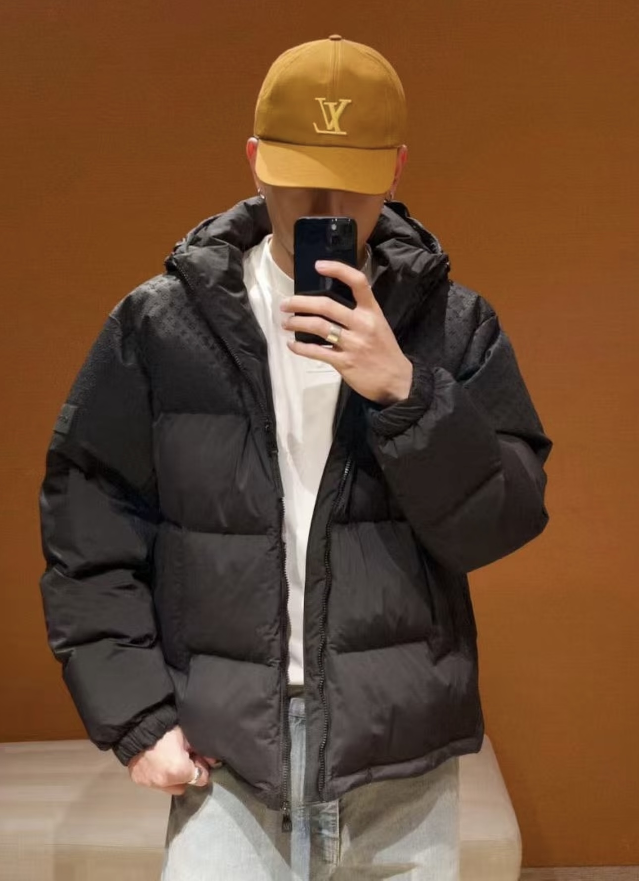 LV羽绒服 整体剪裁留有充足余量 但并非 oversize 的夸张廓形 兼顾舒适与利落感的合身宽松版型! 确保内部可轻松叠穿毛衣等衣物! ⚠️避免传统羽绒服带来的臃肿感 上身显得挺拔有型! 轻松穿出轻松、随性的都市感