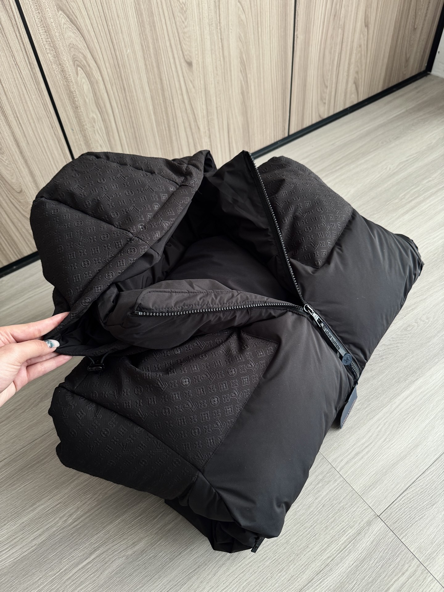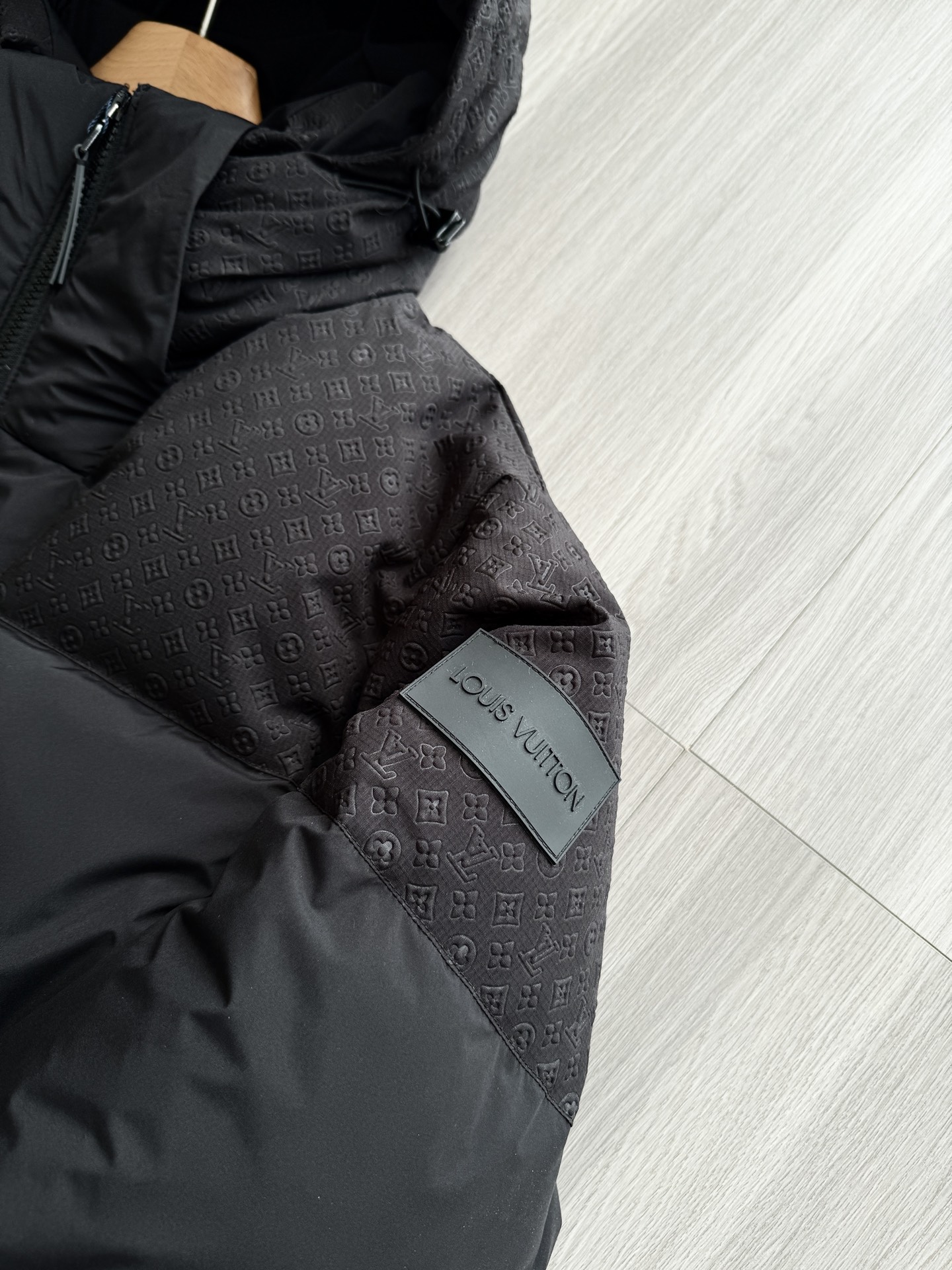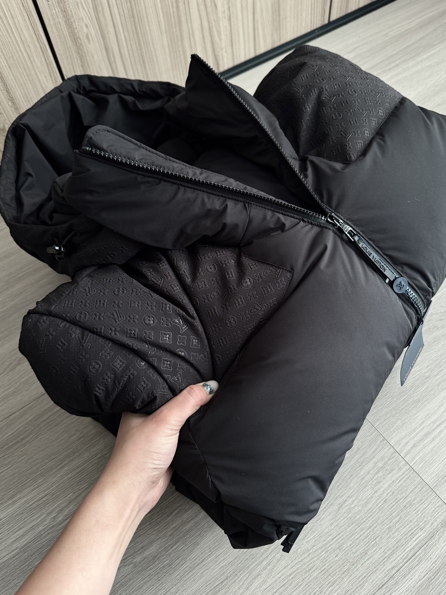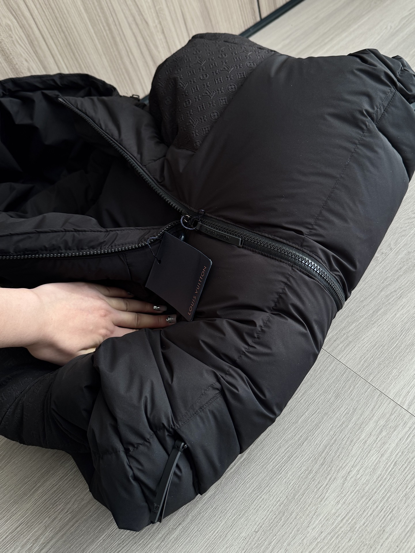 LV羽绒服 整体剪裁留有充足余量 但并非 oversize 的夸张廓形 兼顾舒适与利落感的合身宽松版型! 确保内部可轻松叠穿毛衣等衣物! ⚠️避免传统羽绒服带来的臃肿感 上身显得挺拔有型! 轻松穿出轻松、随性的都市感