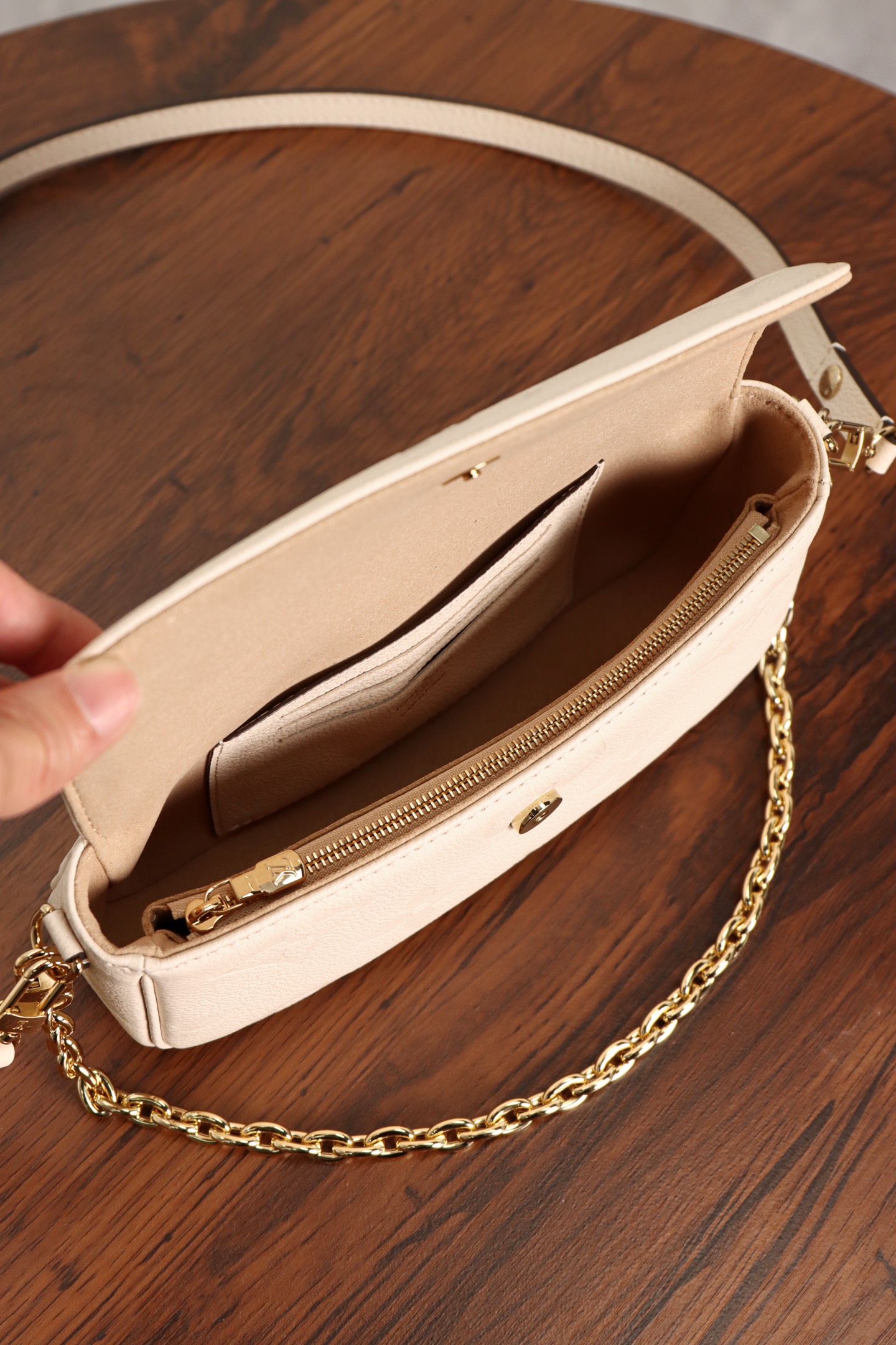 𝐖𝐚𝐥𝐥𝐞𝐭 𝐨𝐧 𝐂𝐡𝐚𝐢𝐧 𝐈𝐕𝐘手袋&奶白色 🌟2025春夏新宠 | 𝐖𝐚𝐥𝐥𝐞𝐭 𝐨𝐧 𝐂𝐡𝐚𝐢𝐧 𝐈𝐕𝐘手袋&奶白色🌟 💫 这抹温柔奶白,是春日晨光里的奶油慕斯,是夏夜晚风中的珍珠光泽✨首次将经典Monogram与柔雾奶白结合,温柔不甜腻,高级感拉满!无论是通勤西装还是约会裙装,一秒点亮整体造型,自带“显贵”滤镜。 ▪️精选Monogram Empreinte粒面牛皮革,触感细腻如绸缎,立体压印大号老花图案,光影流转间仿佛浮雕艺术,耐磨抗划痕,日常用也毫无压力。 ▪️莹亮链条 × 金属点缀 玫瑰金链条如银河倾泻,搭配金属磁扣与包身铆钉,低调中透出奢华锋芒,夜晚灯光下更是熠熠生辉。 👜 一包三背の神仙操作 ✅手拿:短链手提晚宴派对秒变C位女王👑 ✅肩背:可调短肩带,通勤优雅不撞款 ✅斜挎:皮革长肩带解放双手,周末Brunch随性又慵懒🔚链条&肩带全可拆卸,切换模式比换口红还快! 💼 内里乾坤の实用主义 ▫️ 卡片夹层+拉链内袋:身份证、口红、AirPods各归其位,翻找不狼狈 ▫️ 微纤维内衬:细腻呵护贵重小物,连耳机壳都舍不得划伤 型号:M82210💰P1200 尺寸:12 x 4.3 x 23.5 厘米