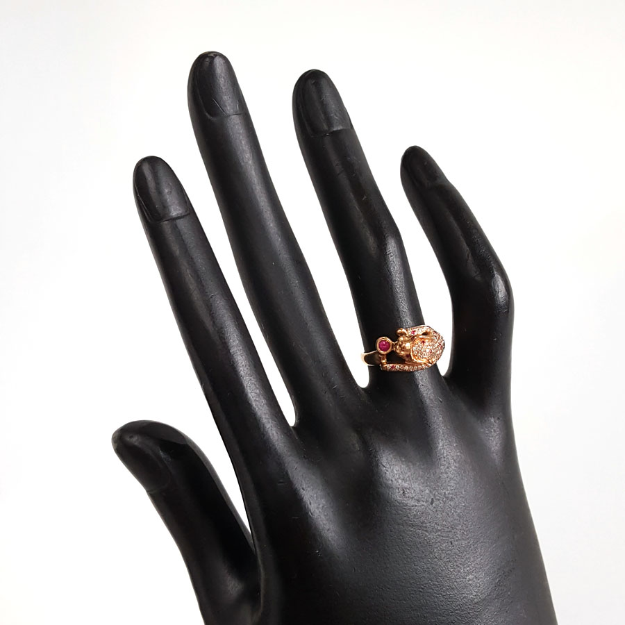 【天然正品】AU750玫瑰金时尚设计师款豹子头群镶钻石戒指10号(戒圈可改)280226NJS62