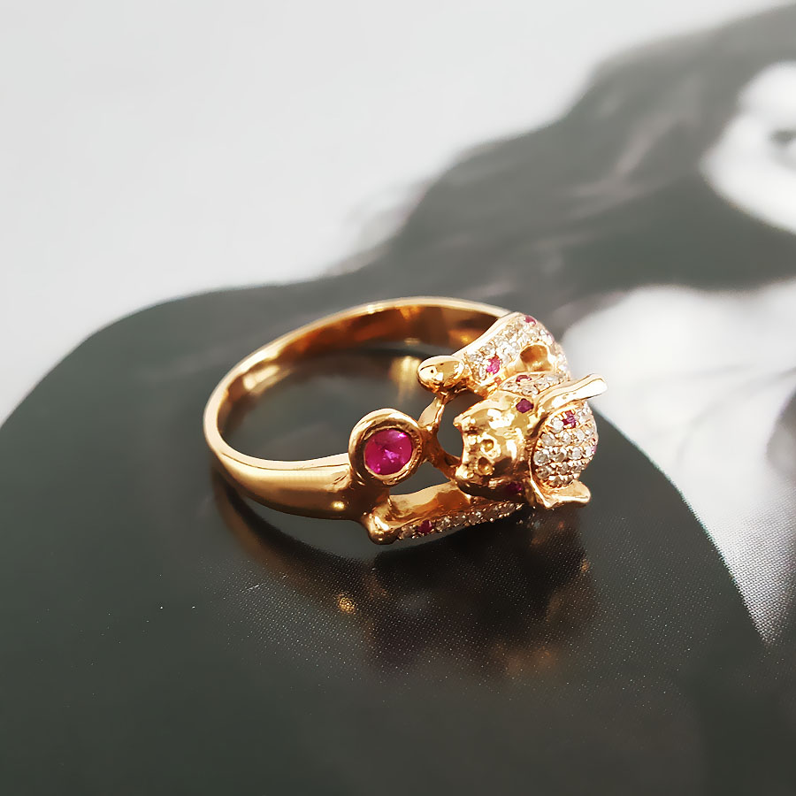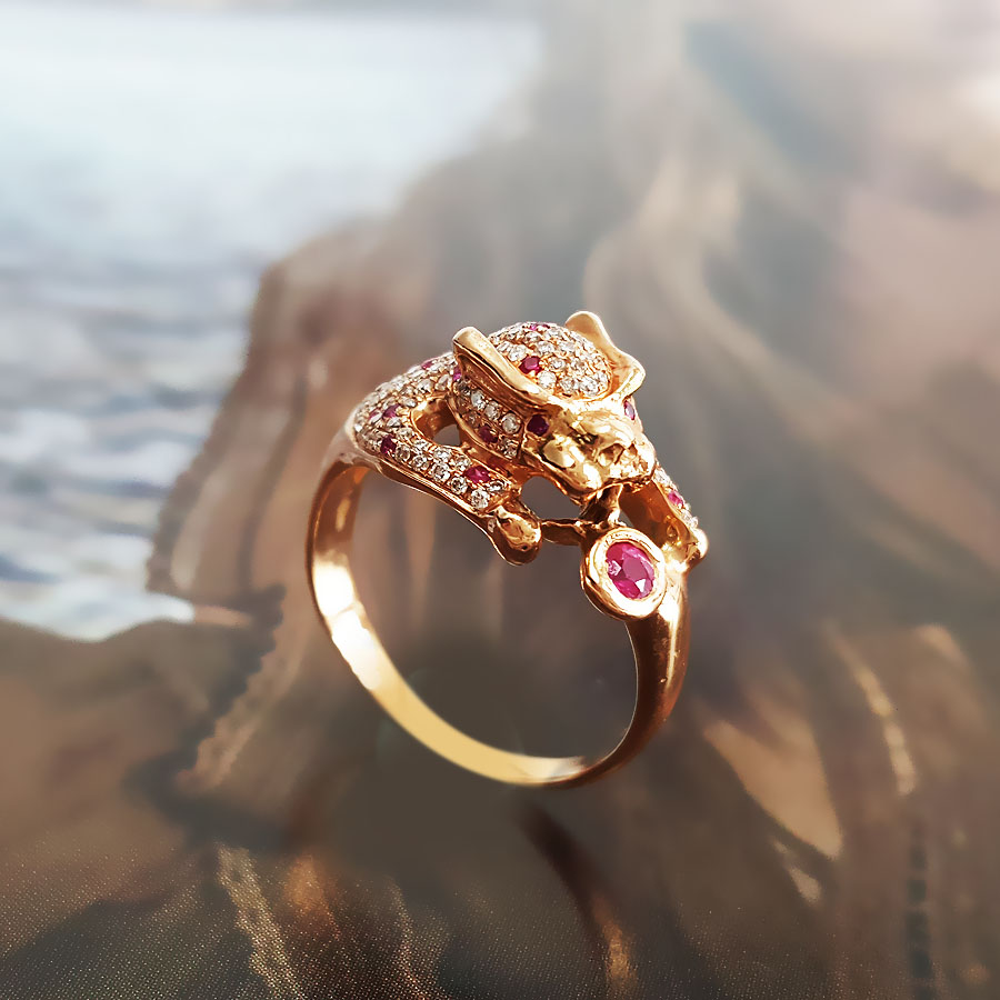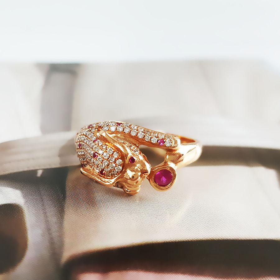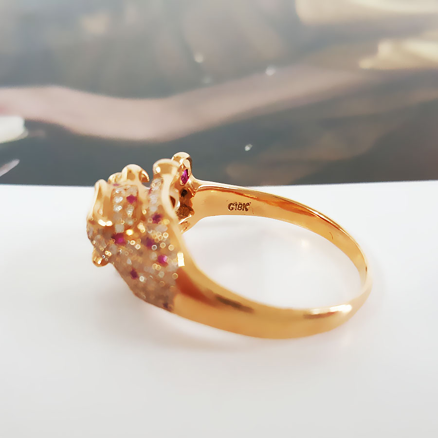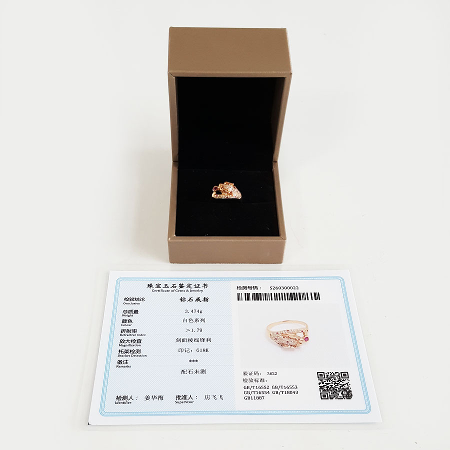 名称 | AU750玫瑰金时尚设计师款豹子头群镶钻石戒指 |