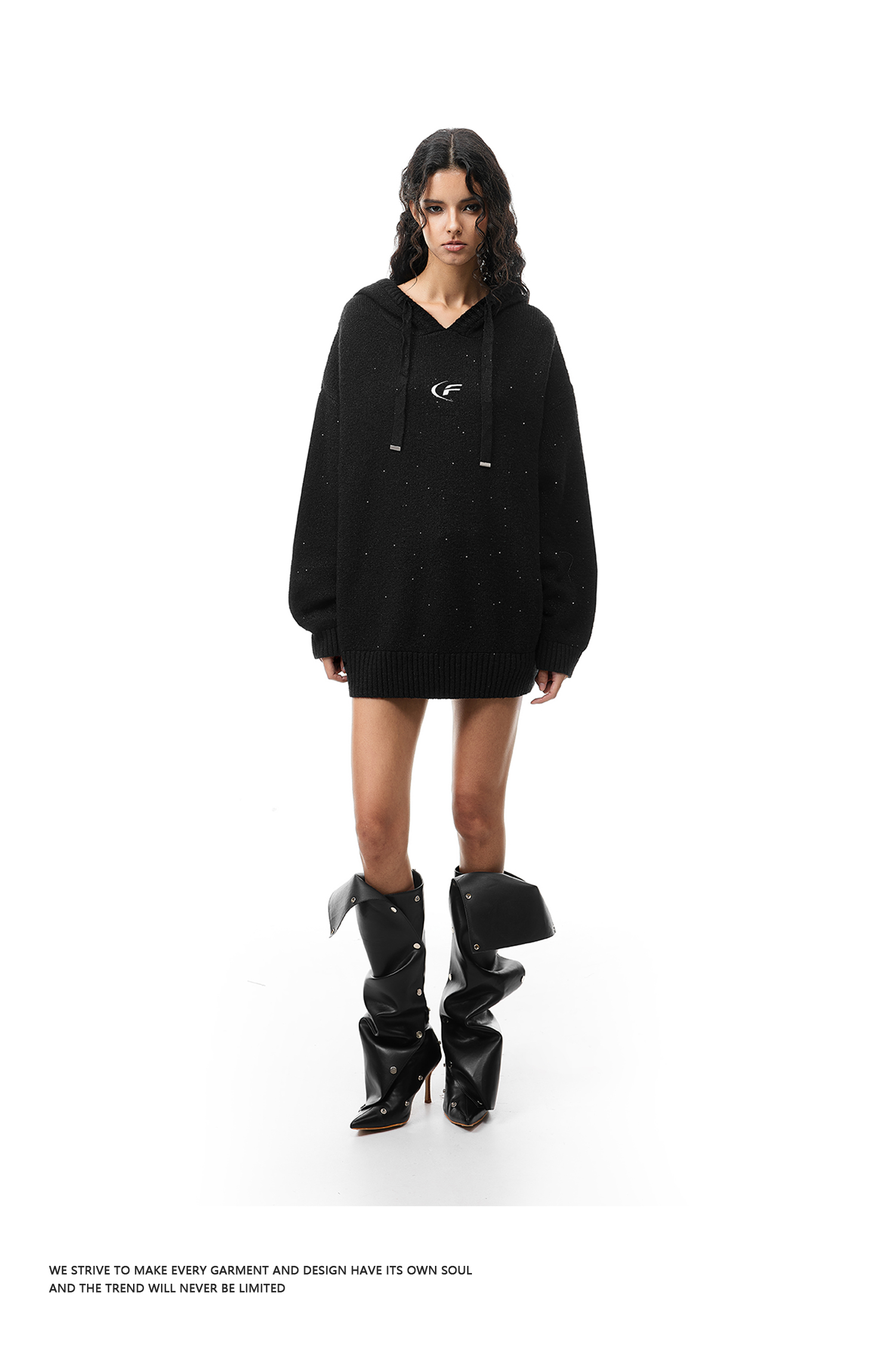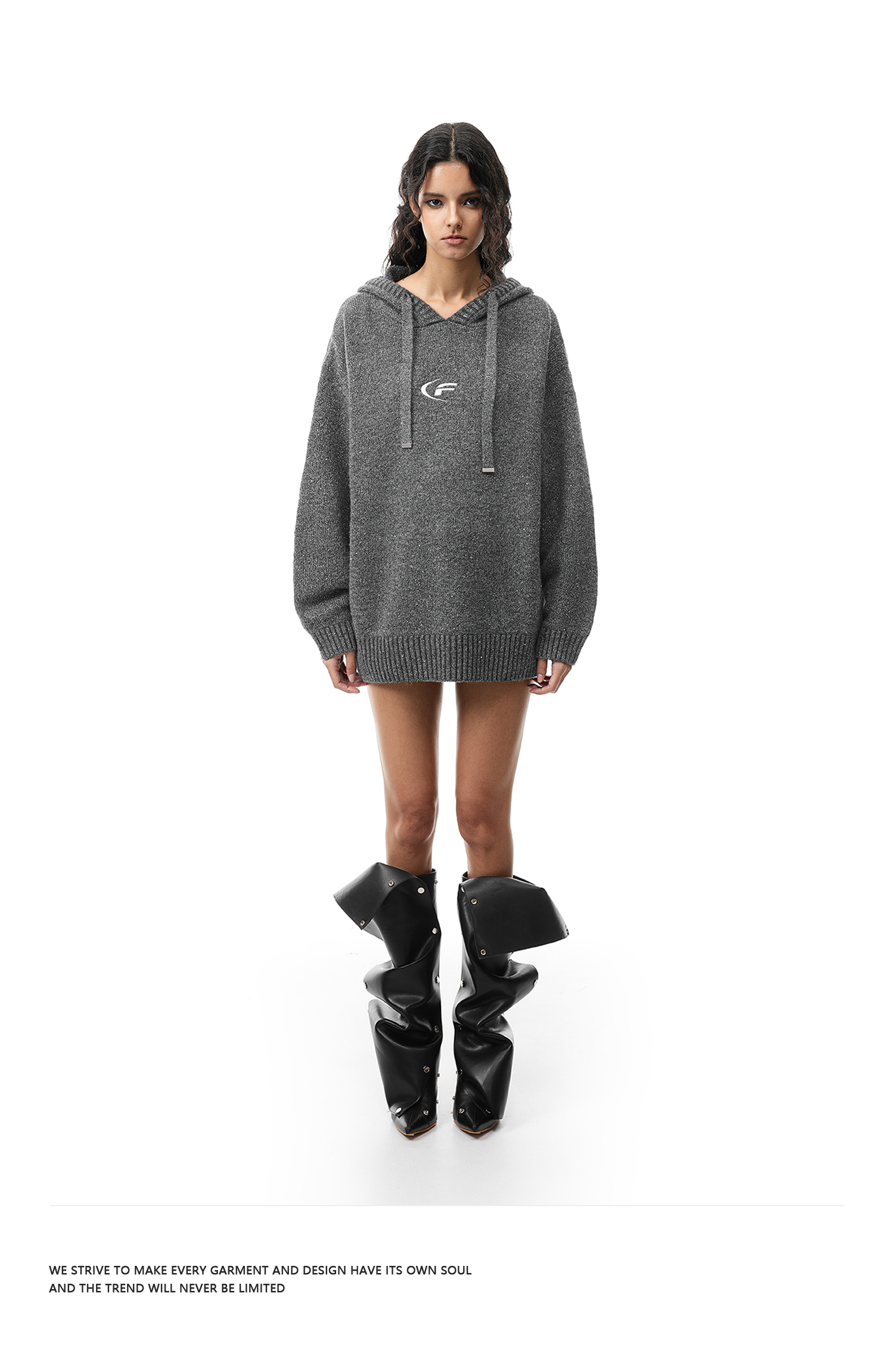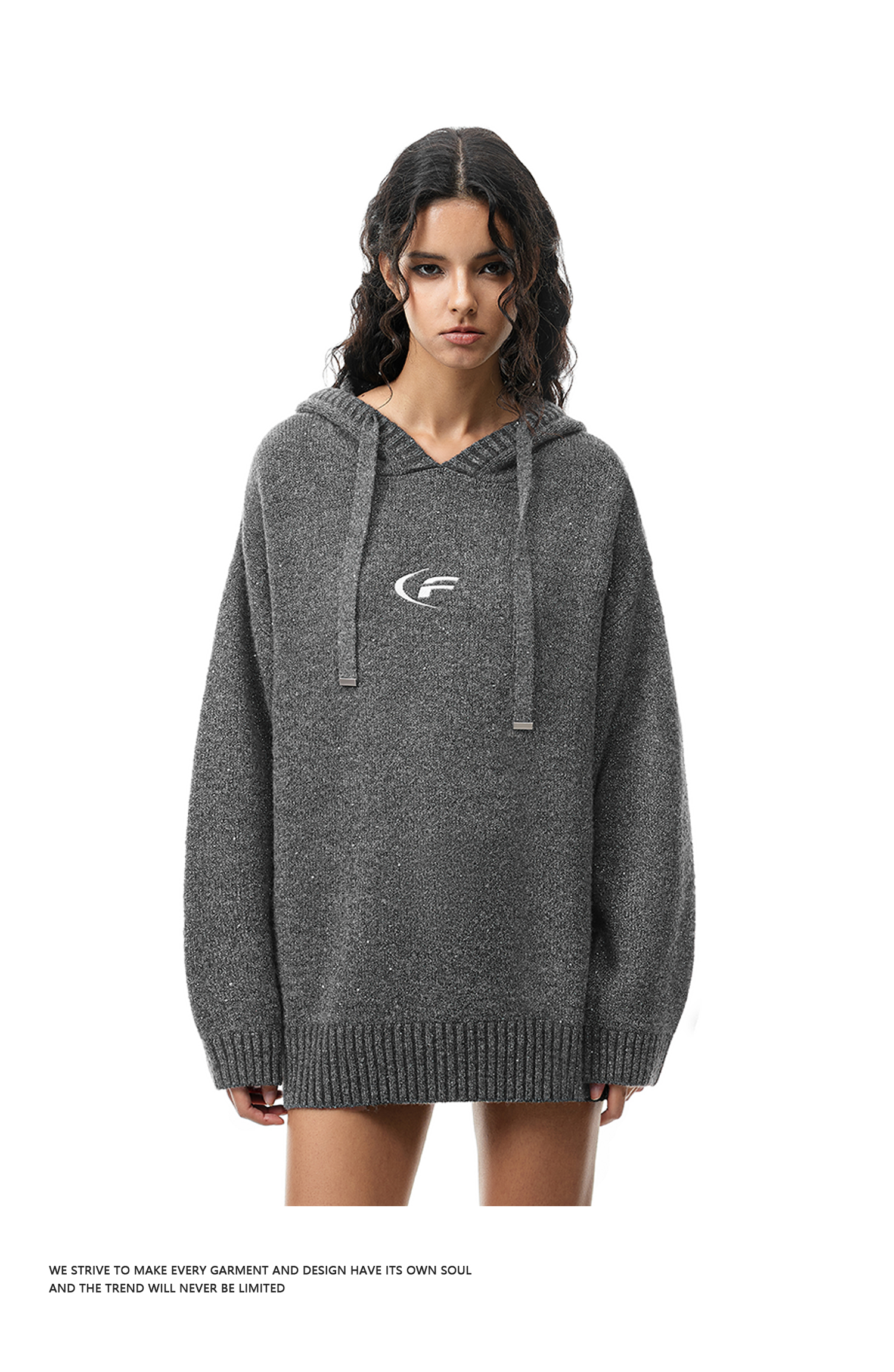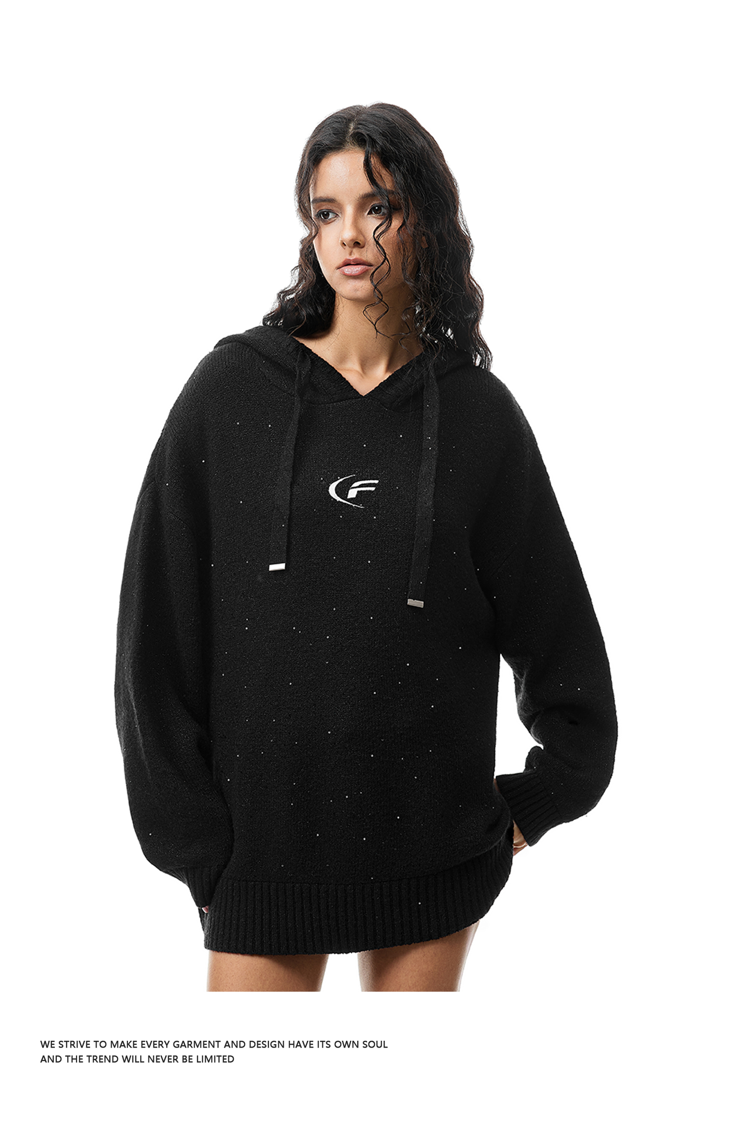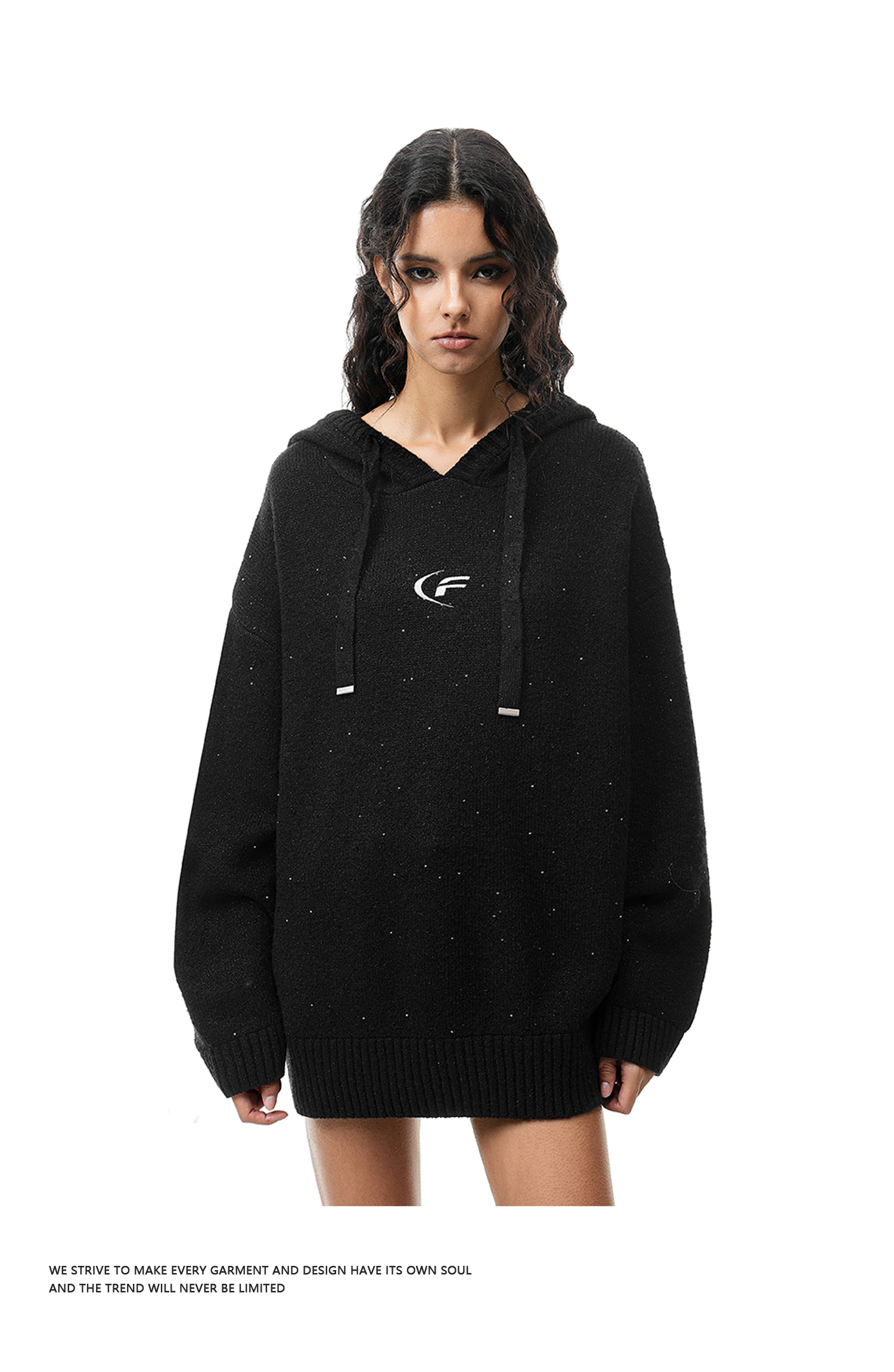 FDR官方店 月牙刺绣散粉毛衣男女秋冬季美式街头情侣装连帽上衣