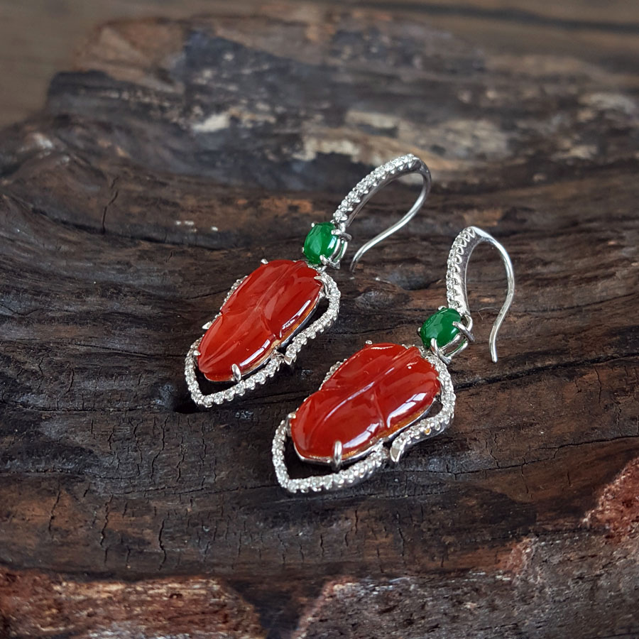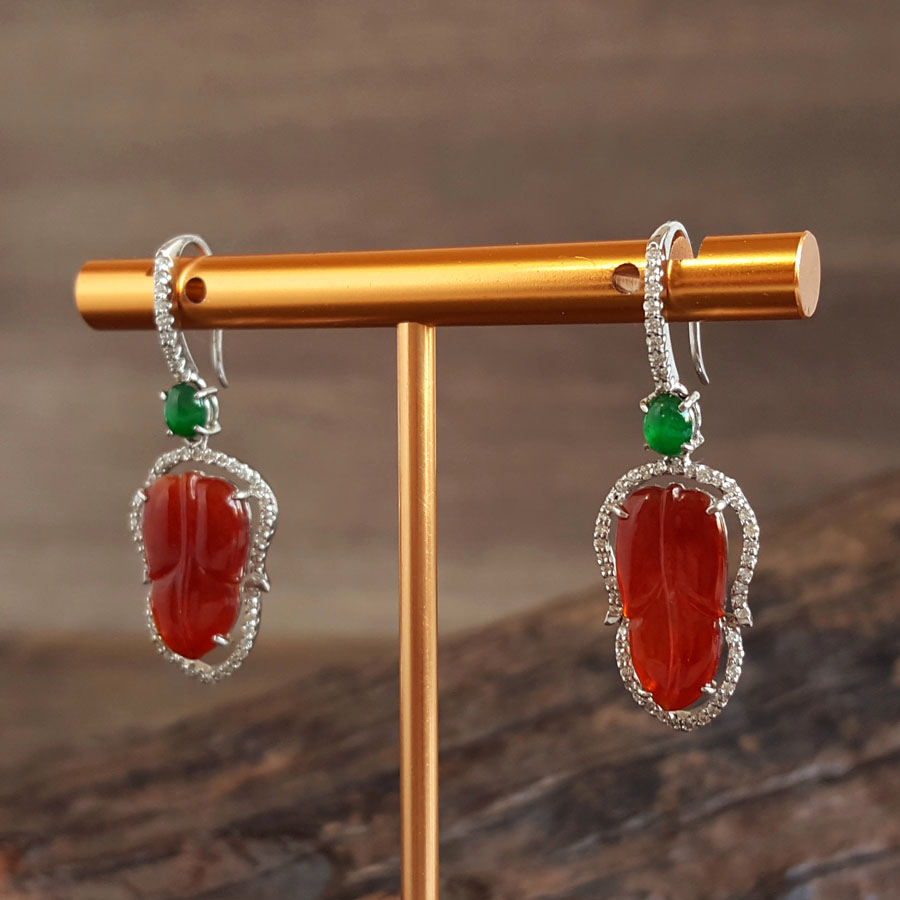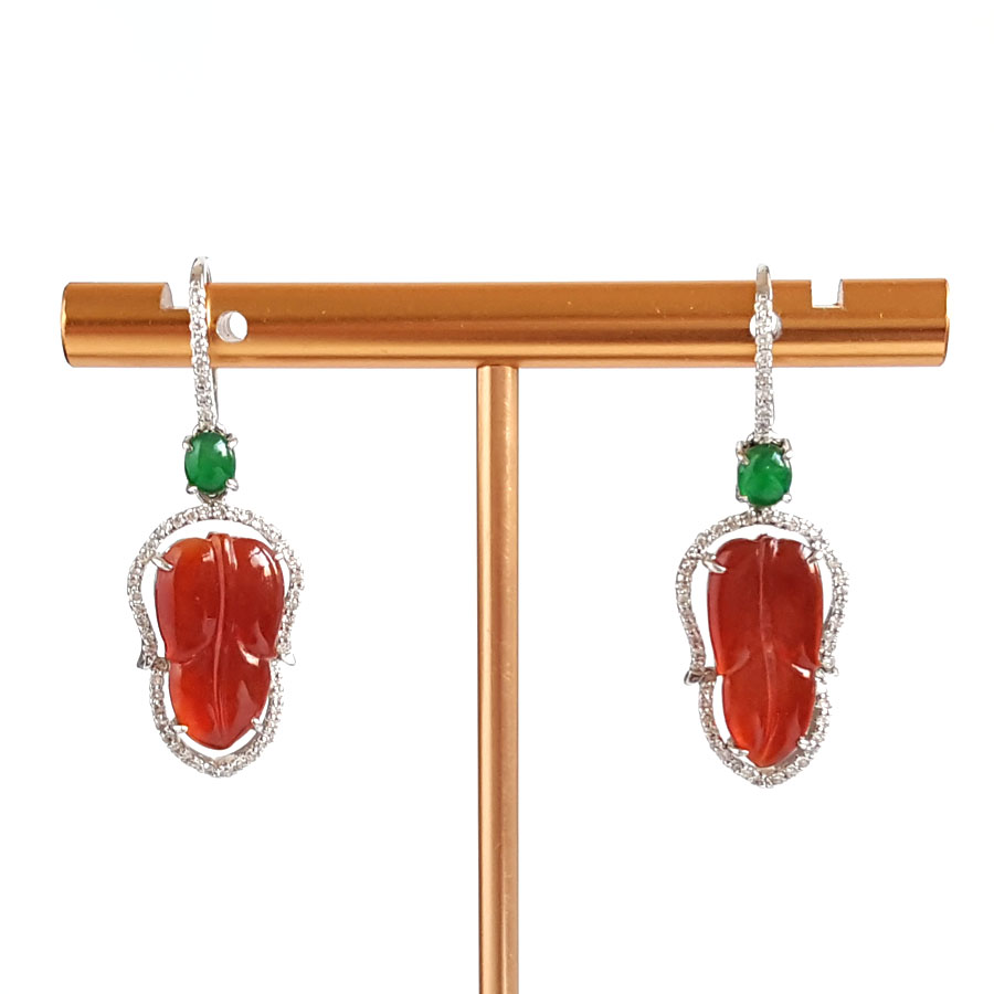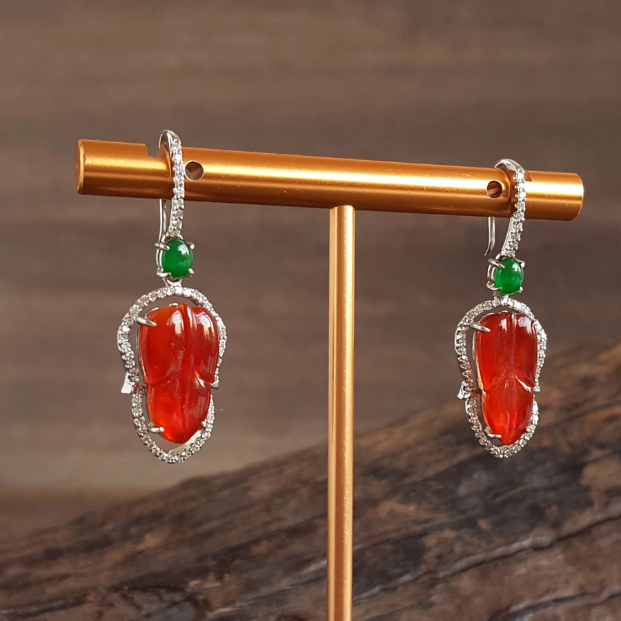 名称 | AU750白金豪镶钻镶天然细腻冰种叶子(金枝玉叶)红翡耳坠 |
