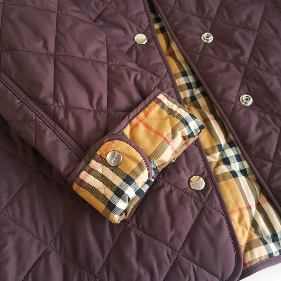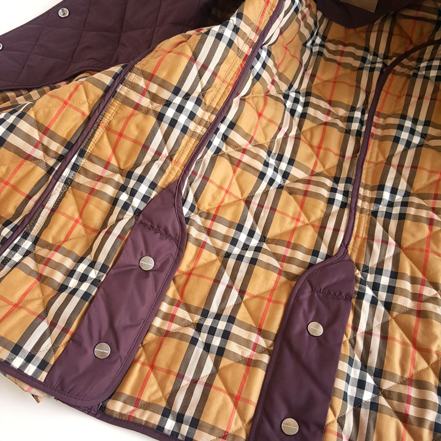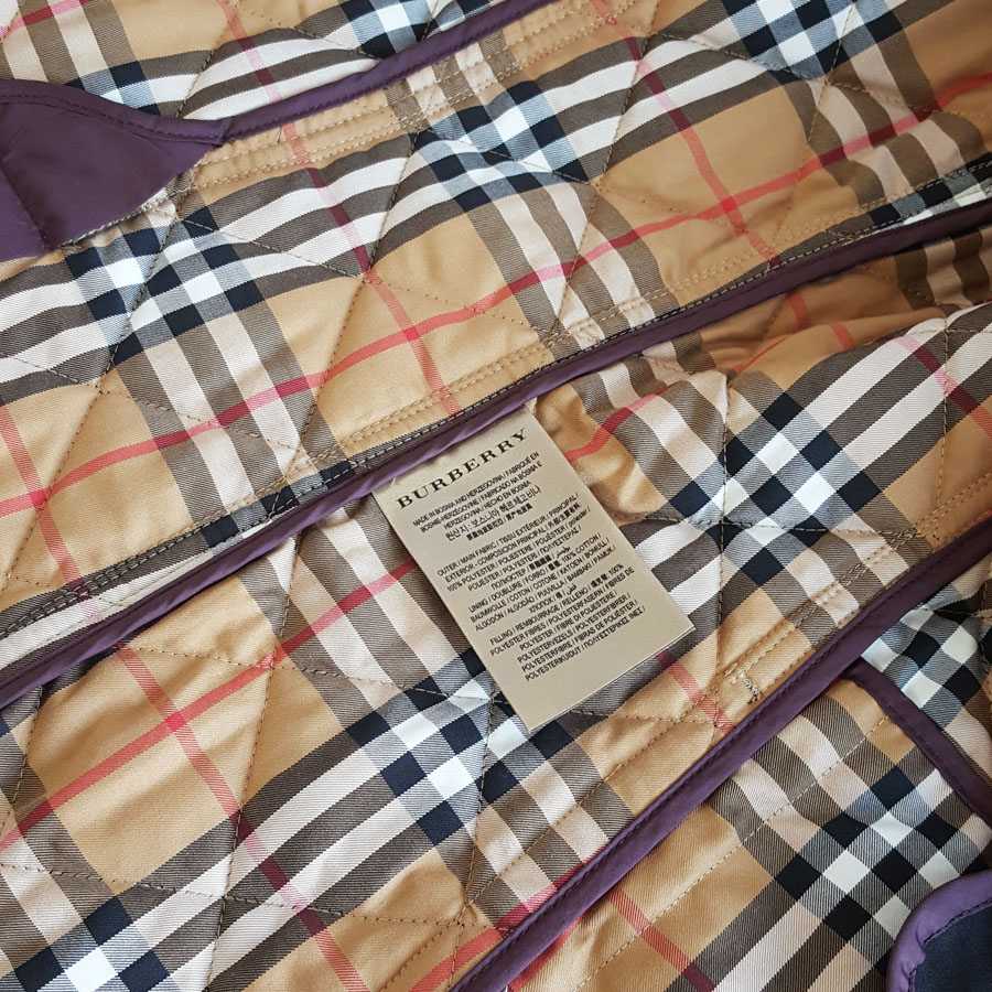 【95新】Burberry博柏利紫色战马徽标菱格棉服100%聚酯纤维M码(175/92A)女士现售价:3700!121124TJ10