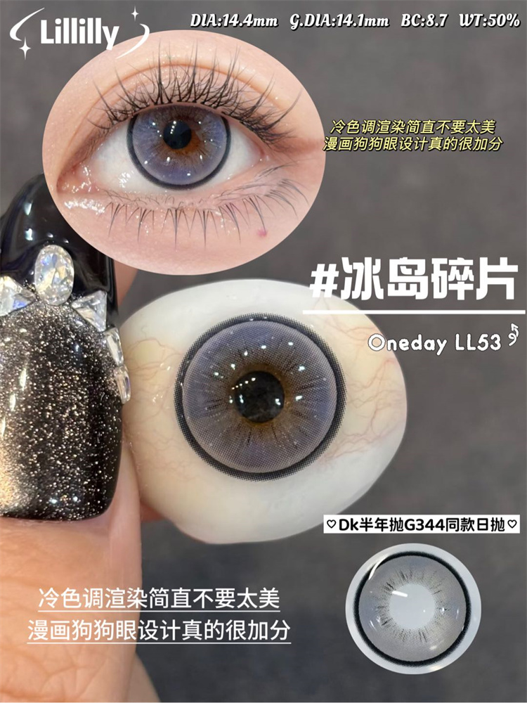 Lillilly LL-53蓝 冰岛碎片 日抛直径14.4mm日常美瞳 蓝色 10片/盒