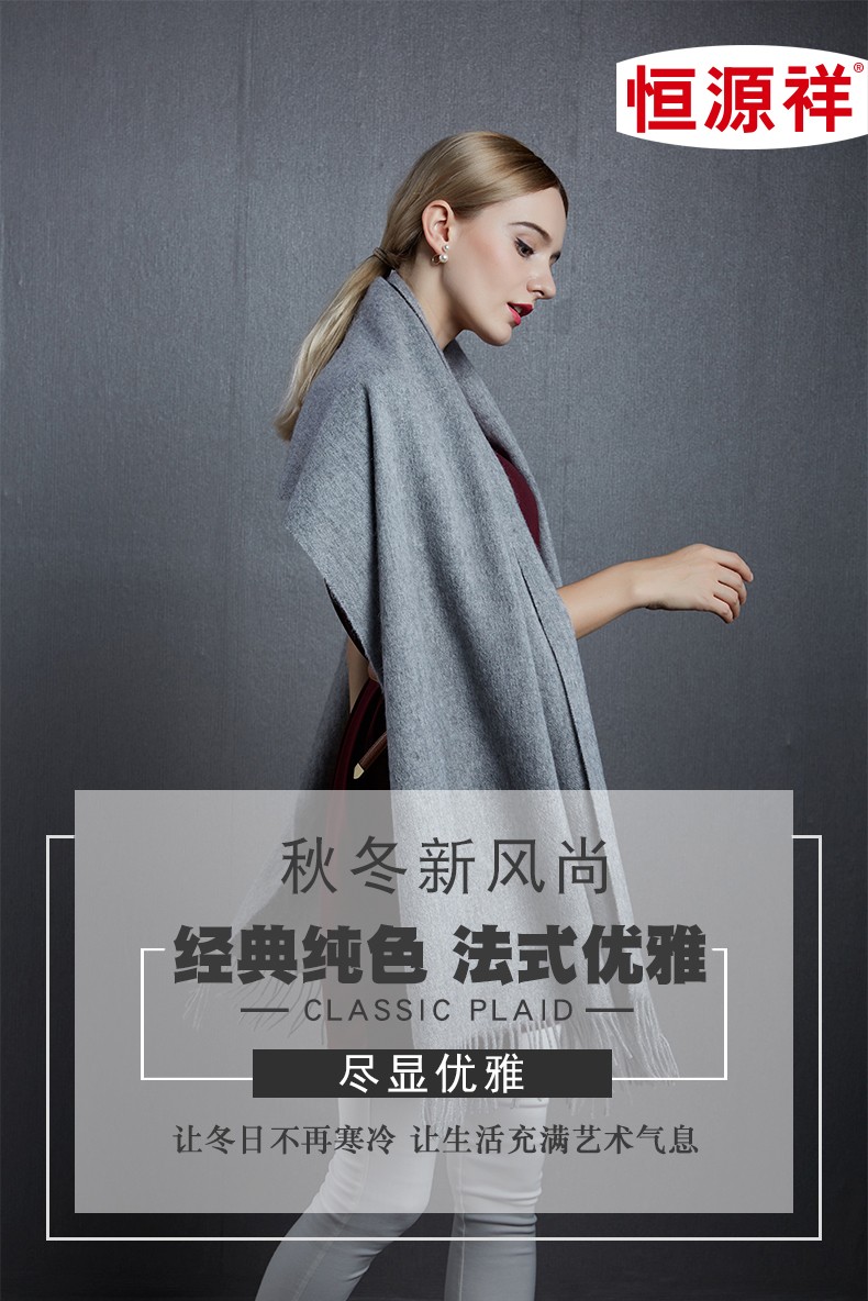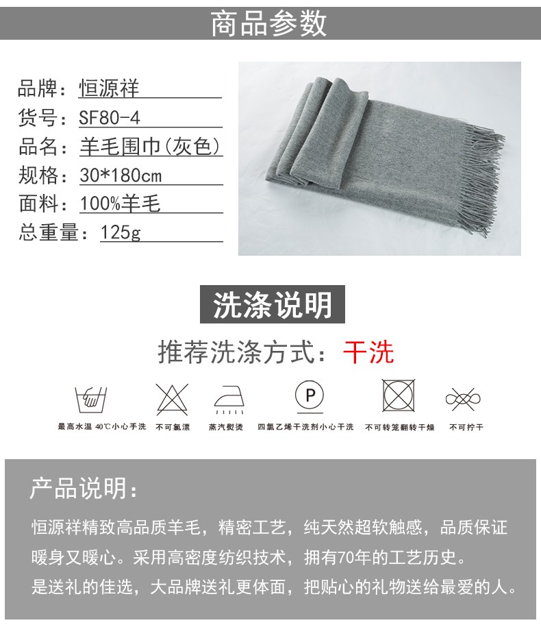 恒源祥礼业SF80-4羊毛围巾灰色 浅灰色 30*180