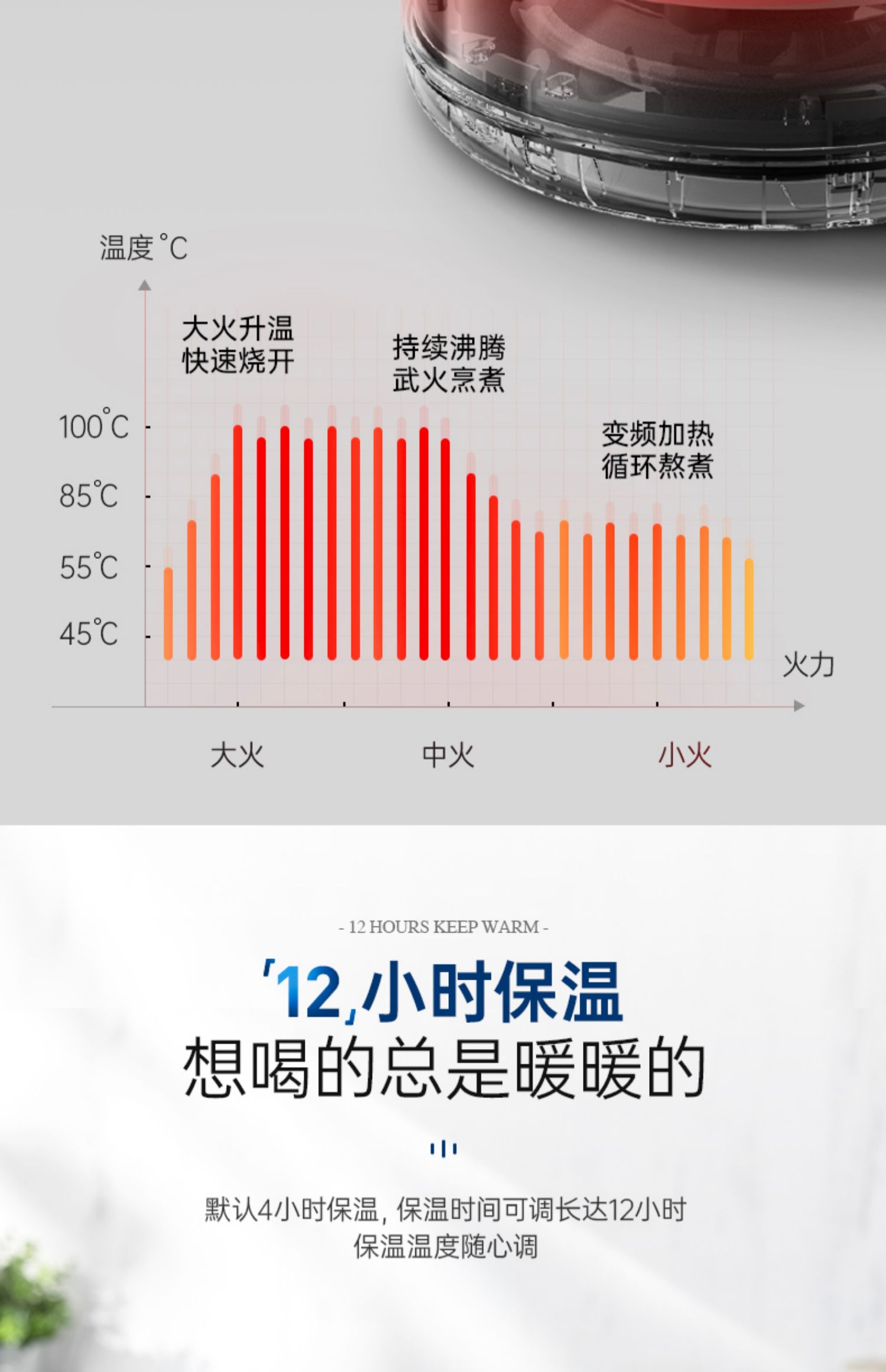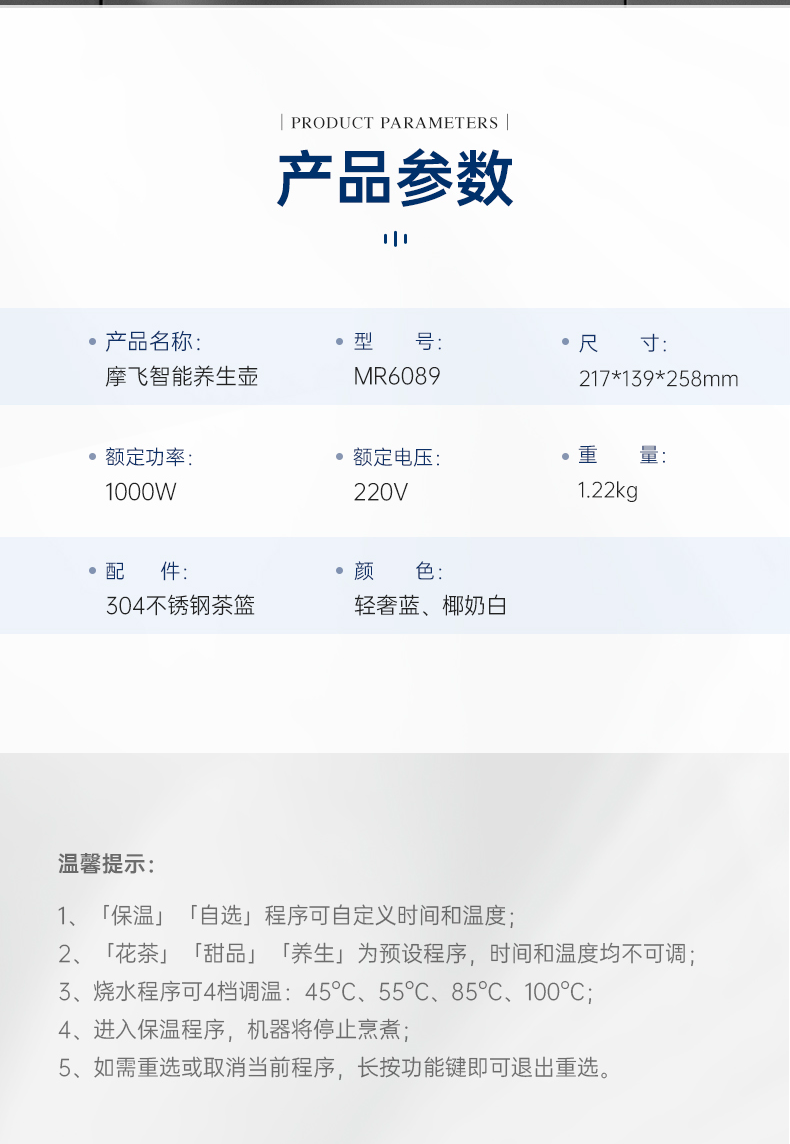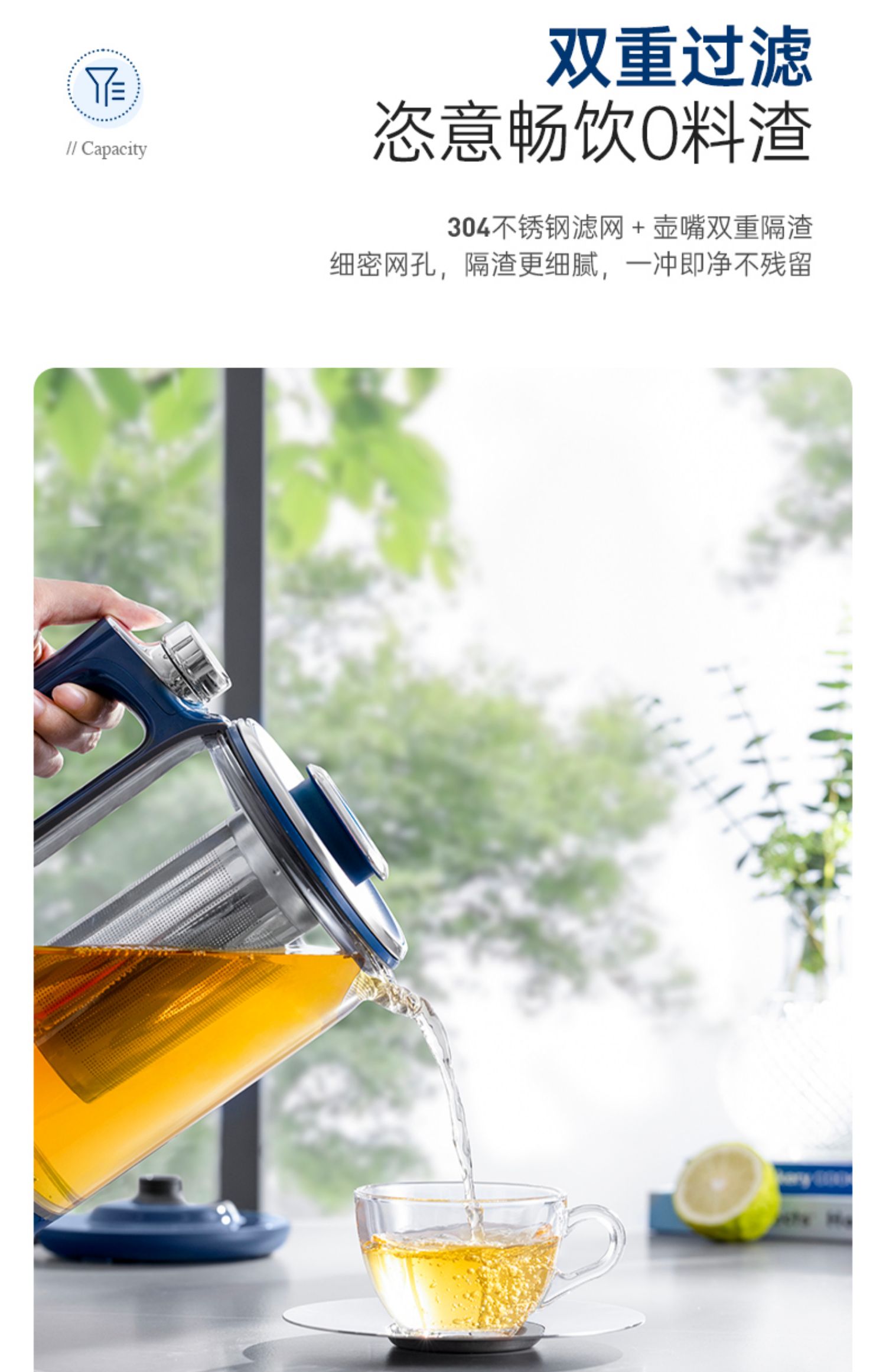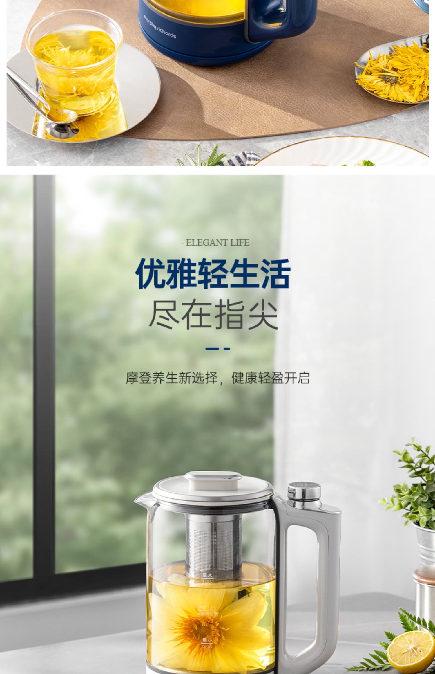 摩飞养生壶家用多功能办公室小型煮茶器玻璃花茶便携式保温烧水壶MR6089