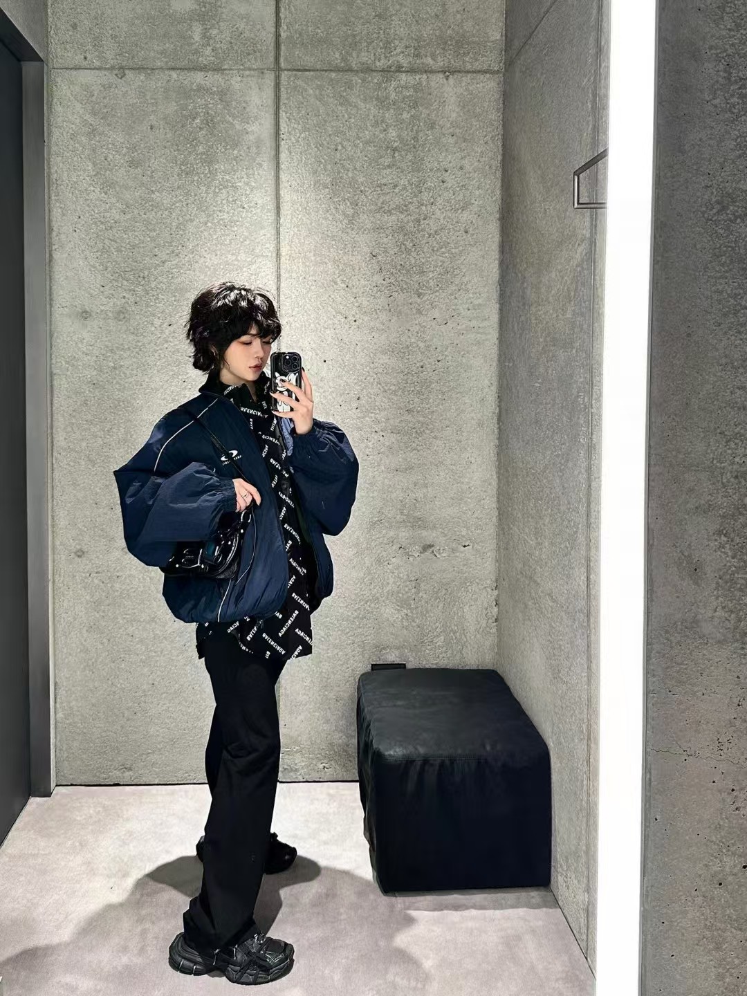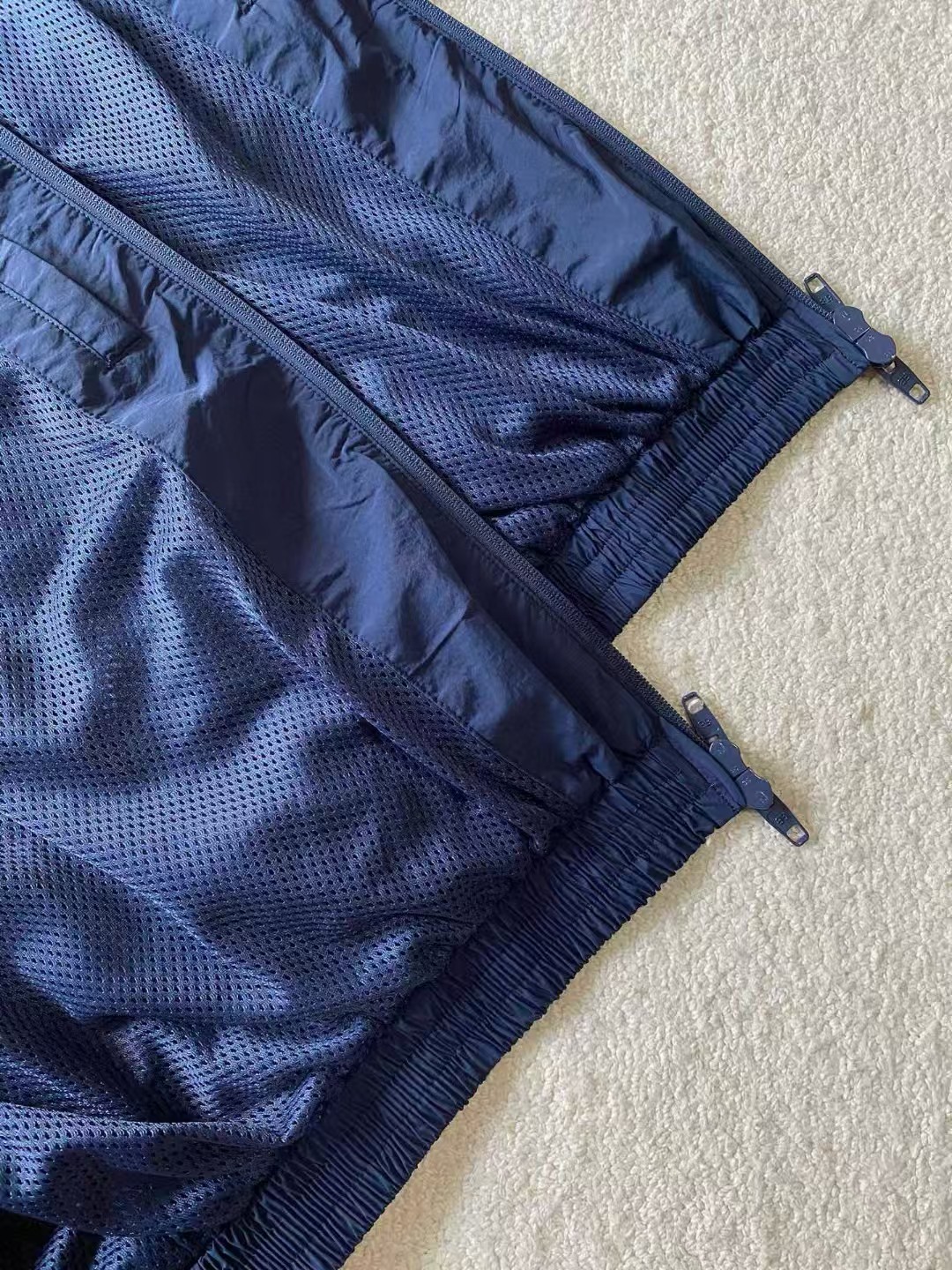 ⚠️原¥18,600购买、水洗尼龙面料、活性海军蓝染料、鸟眼网布、胸部饰以艺术作品刺绣、双头拉链开合、冲锋衣版型、两个拉链斜口袋、缩褶袖囗和腰围、撞色镶边设计、全套辅料配备