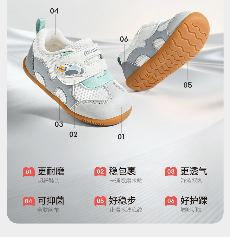 牧童2025秋季软底学步机能鞋宝宝透气网面机能鞋婴幼儿卡通稳护鞋
