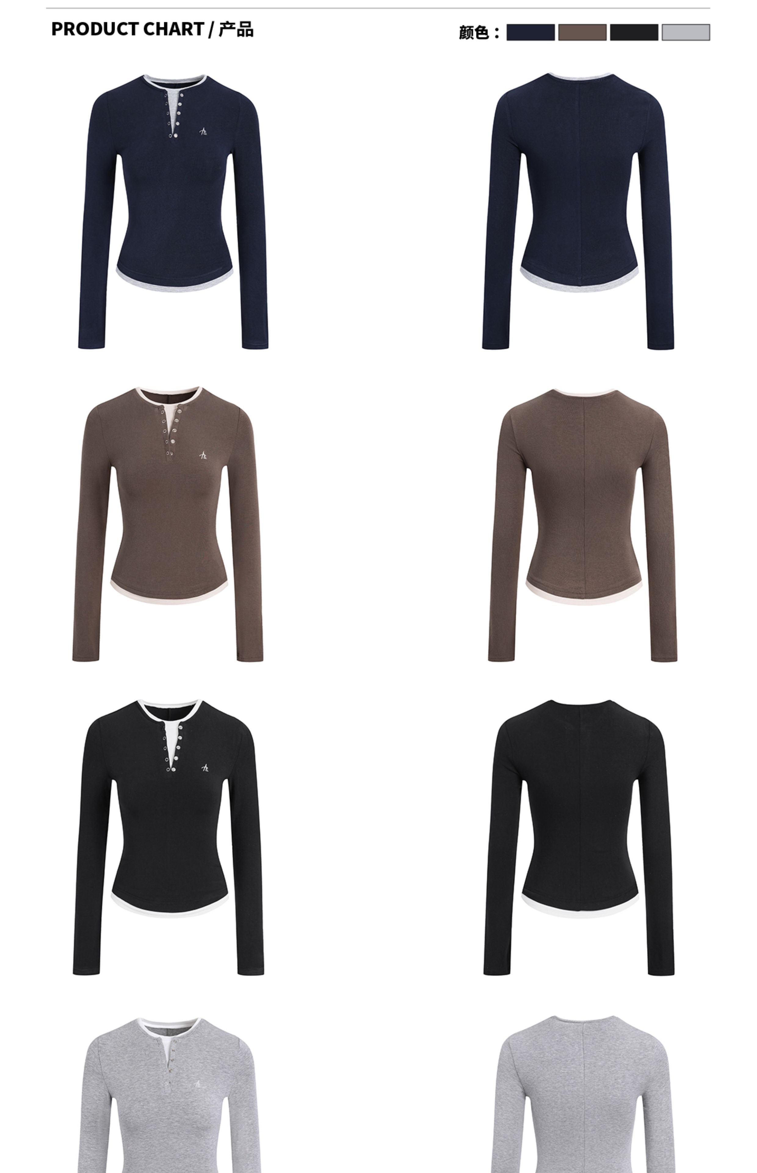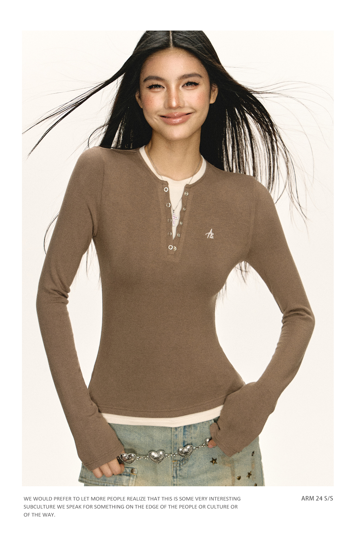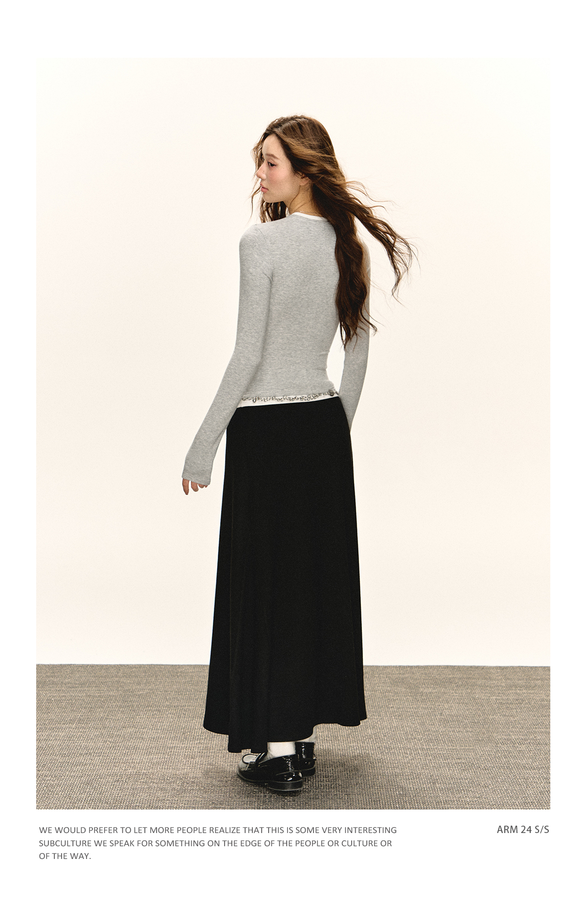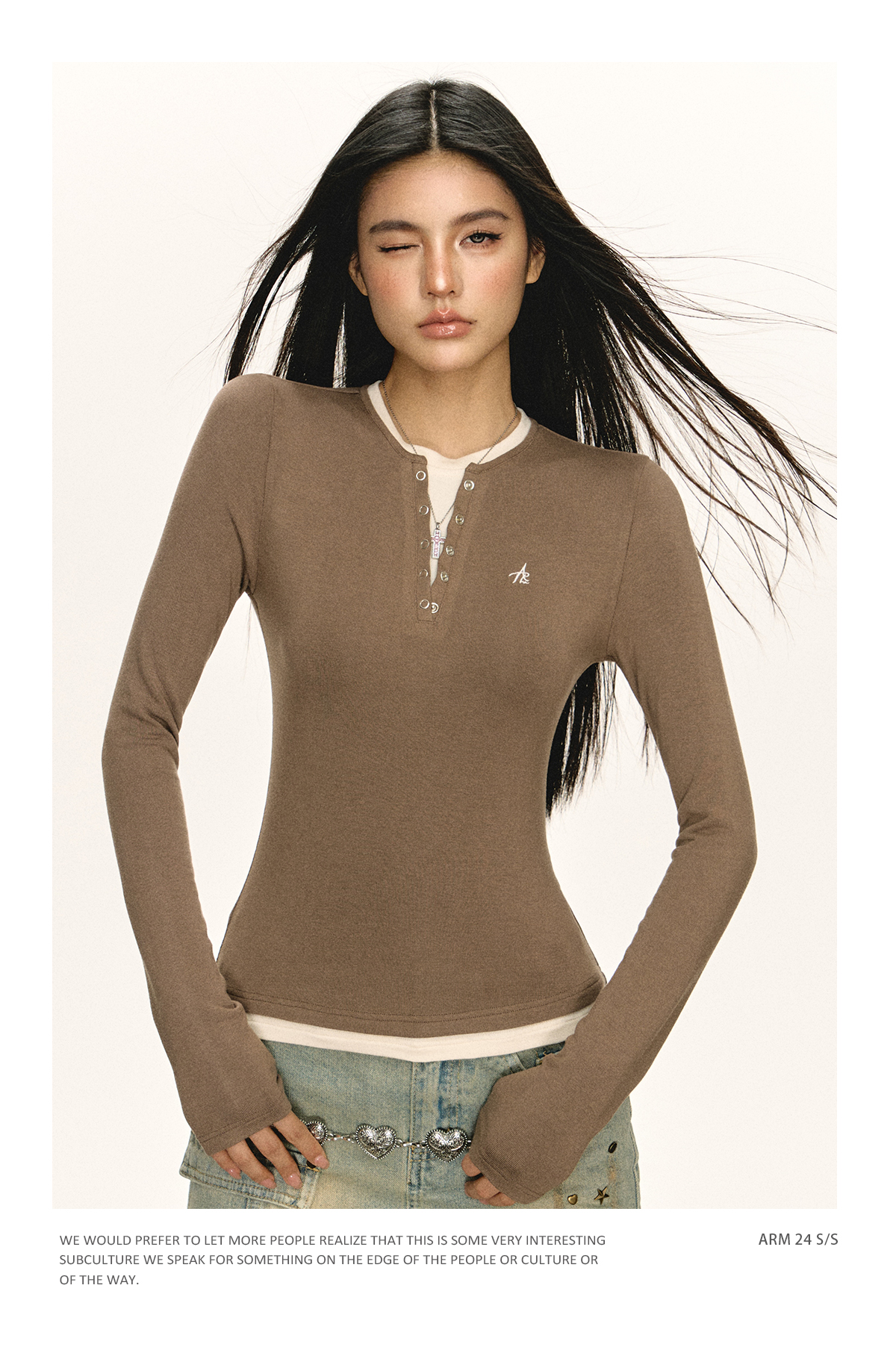 Ariseism 美式复古修身假两件长袖T恤女春季新款内搭打底上衣