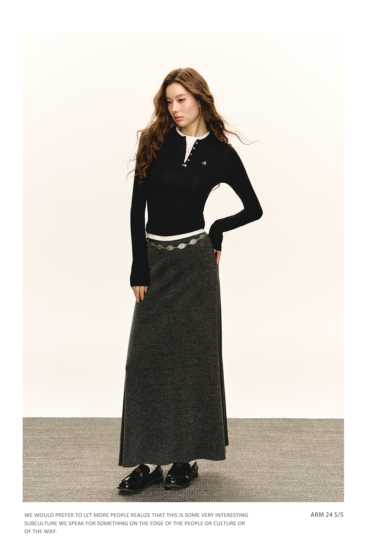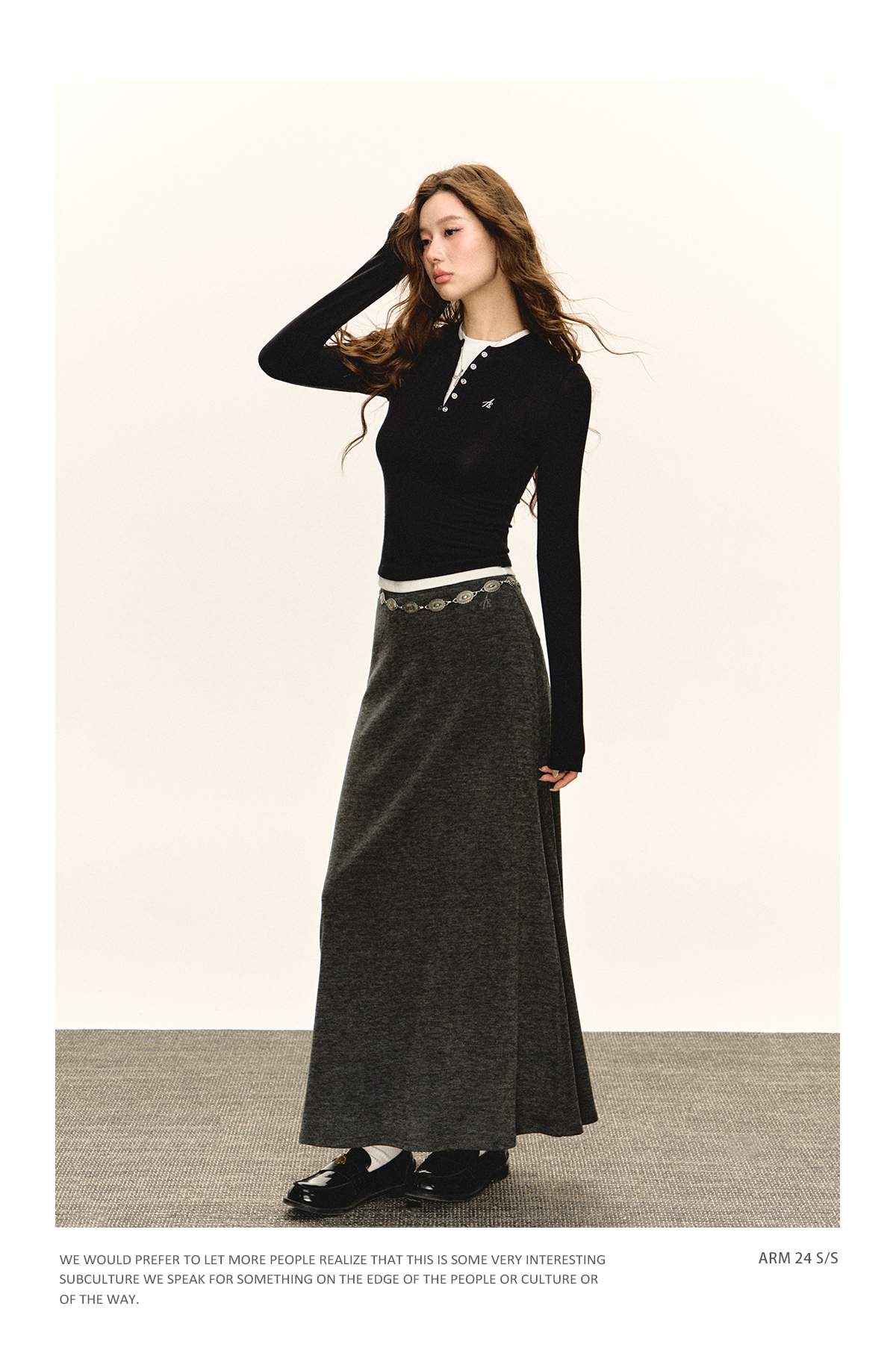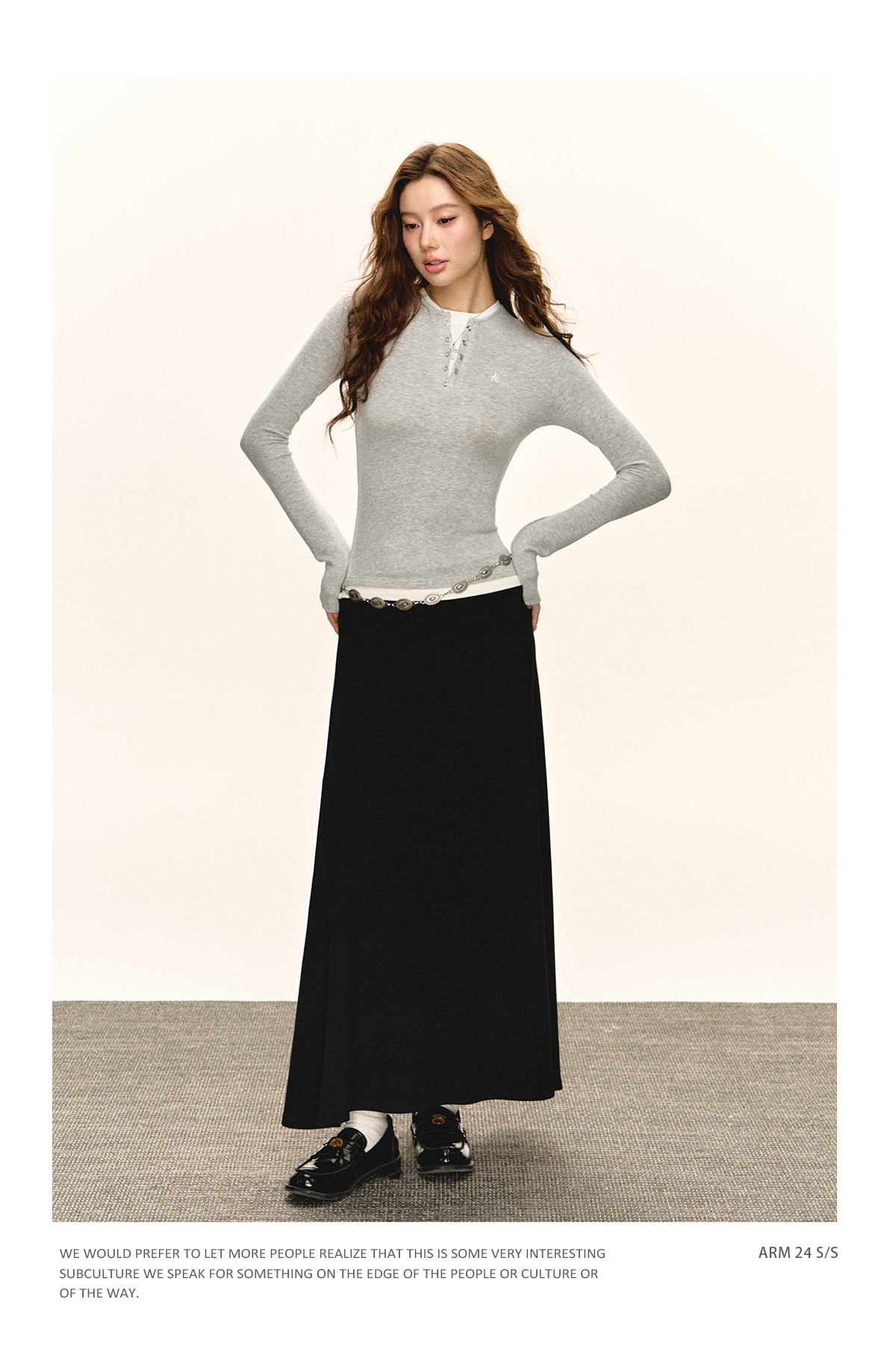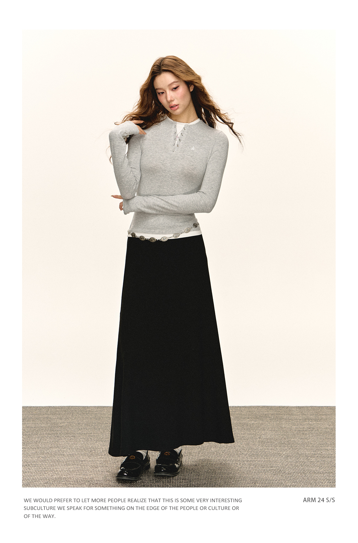 Ariseism 美式复古修身假两件长袖T恤女春季新款内搭打底上衣