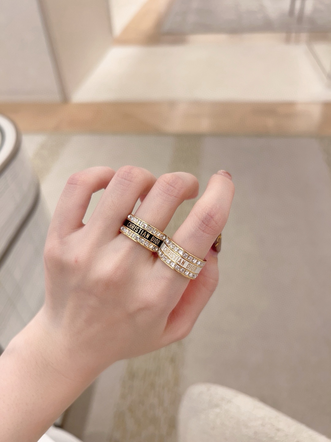 D 双排方钻珐琅字母戒指】大爆款系列 Z 3400!量大咨询客Fu黑,白!两色