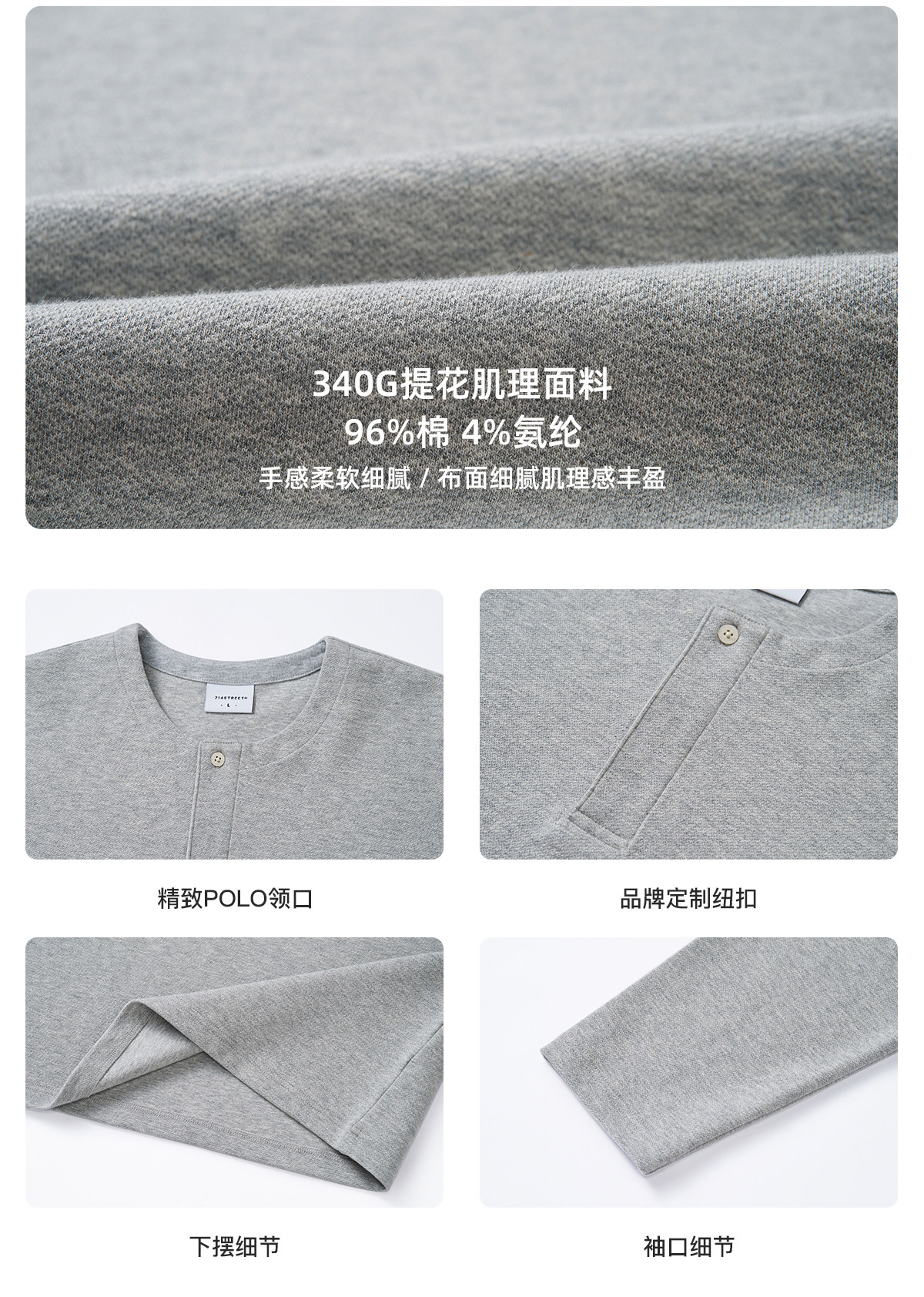 714street肌理感灰色亨利领卫衣男 2026春季潮牌重磅宽松长袖T恤