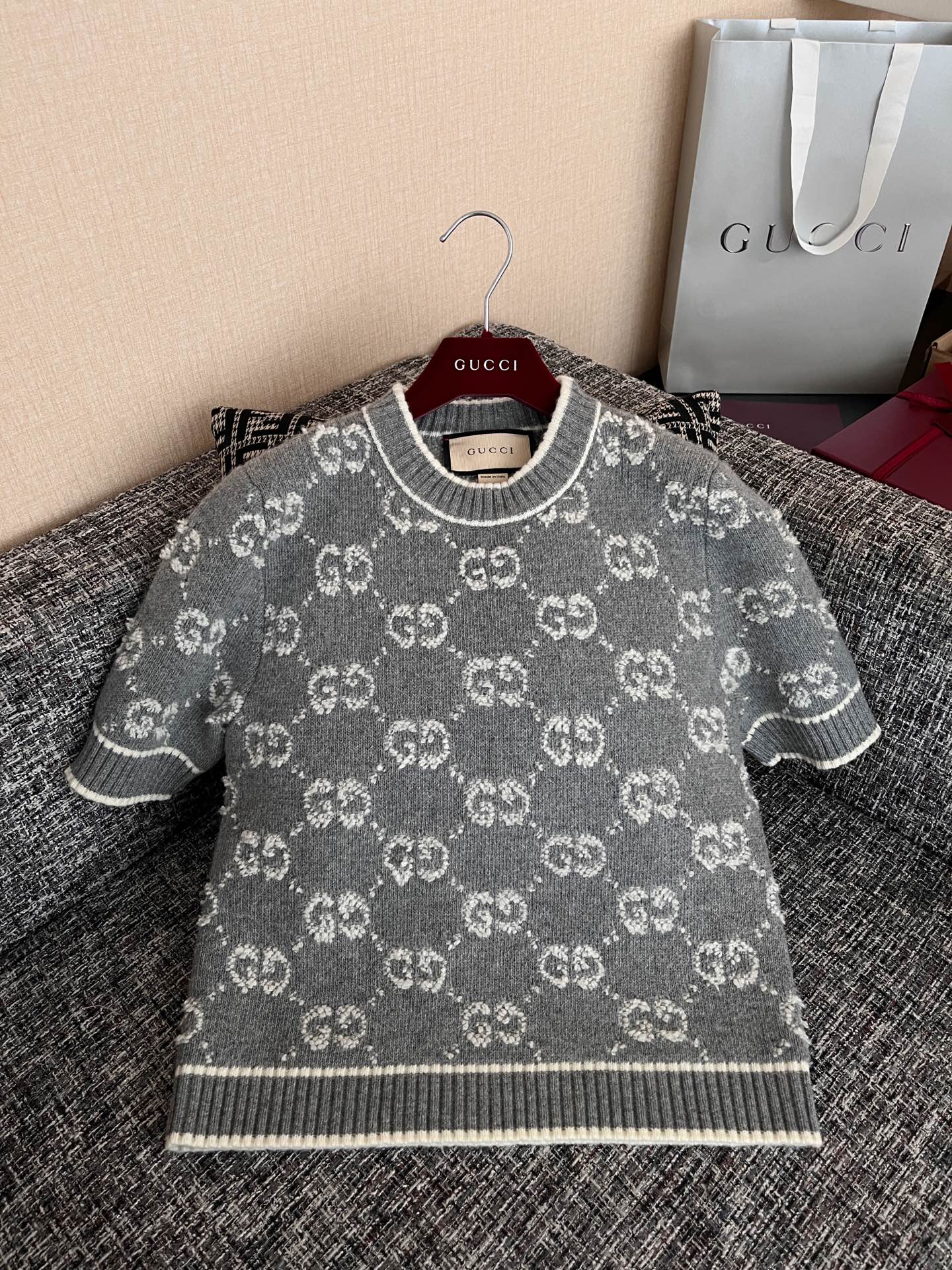 古驰25早春满提花短袖🐮9900购买Zp拆解打造,订织订染羊毛棉纱面料🐮真正用到原版订织纱线做到对版出货💪纹路放大看细节除还原度接近98以上 做工也无敌了🔥真正做到1:1还原 直接闭着眼购买👀码数:S M L