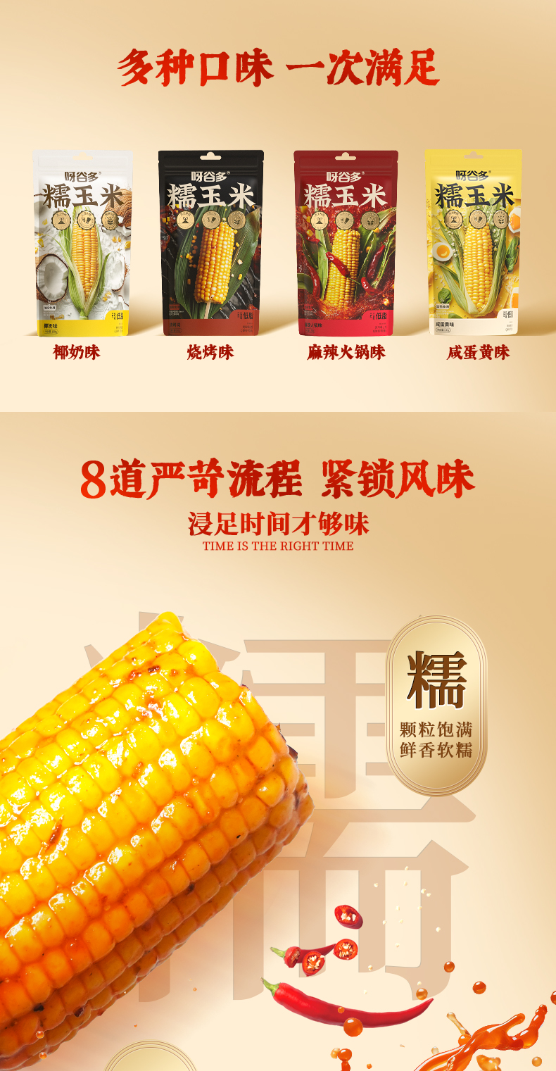 呀谷多东北多味糯玉米蛋黄味麻辣火锅味烧烤味椰奶味