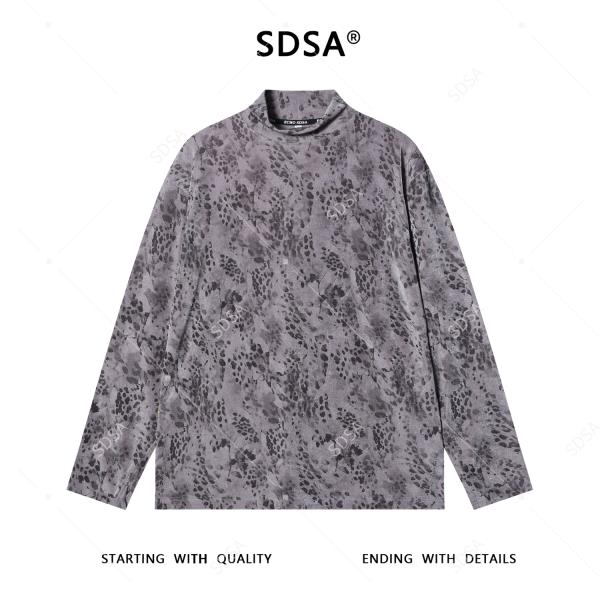 T4987SDSA男士秋冬新款痞帅男装泼墨手绘战马印花半高领长袖T恤百搭
